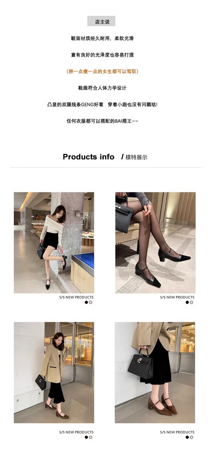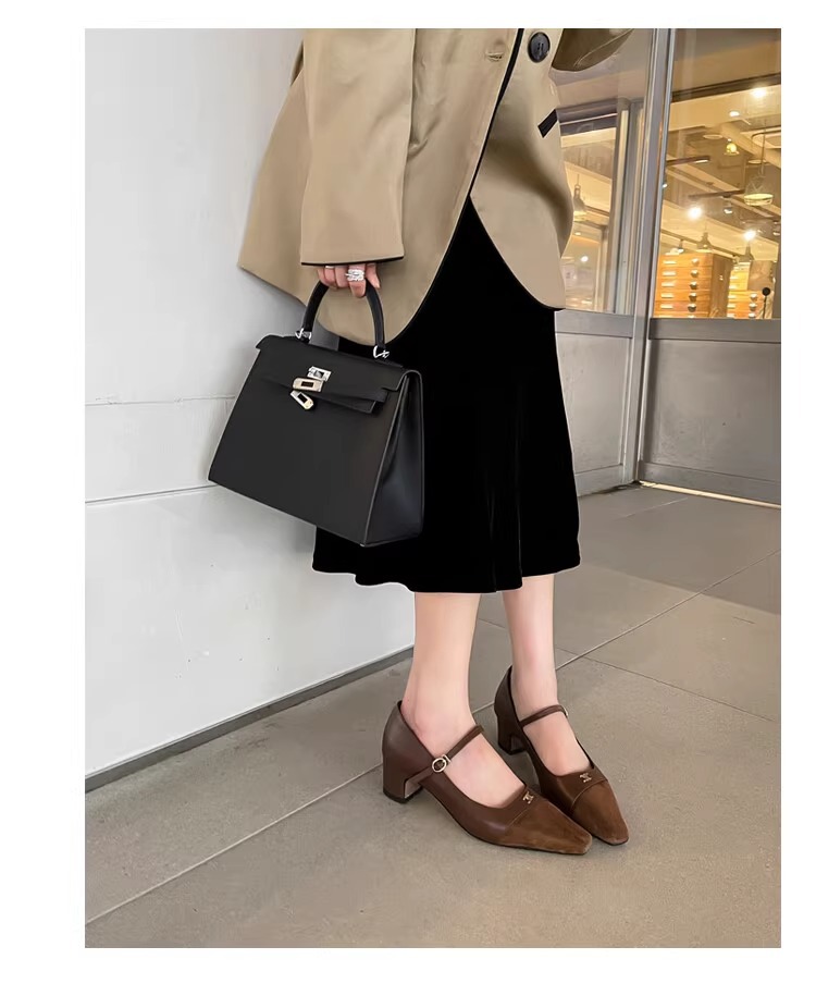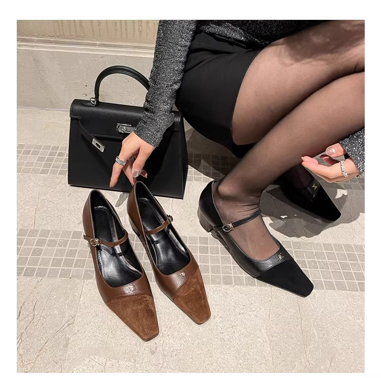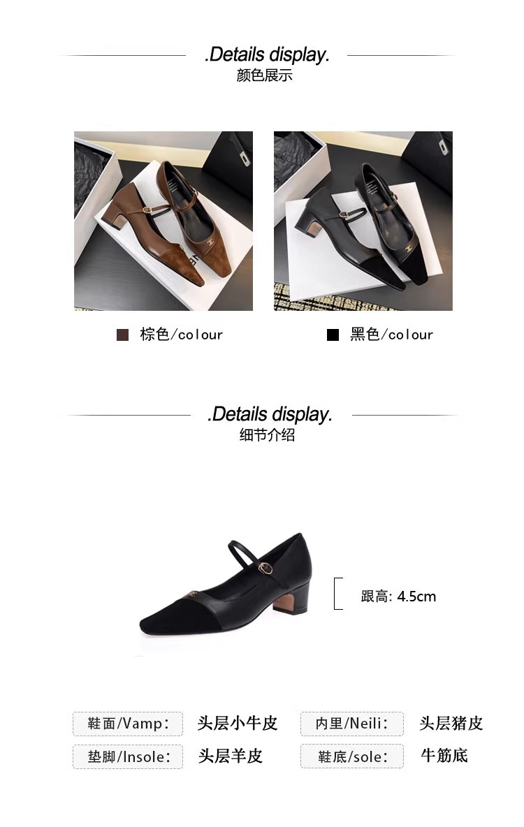작고 넓어진 가죽 레트로 스퀘어 헤드 트라이 엄프 도어 버클 두꺼운 메리 제인 신발 하이힐 프랑스 우아한 싱글 레이어 신발 플러스 사이즈스토어 가기