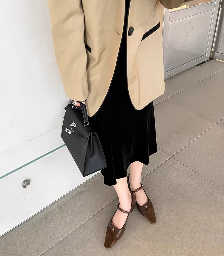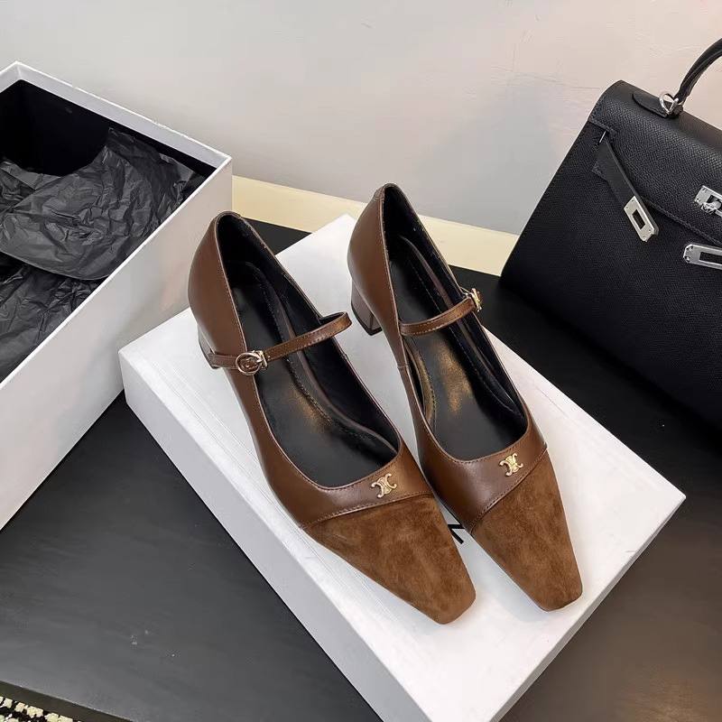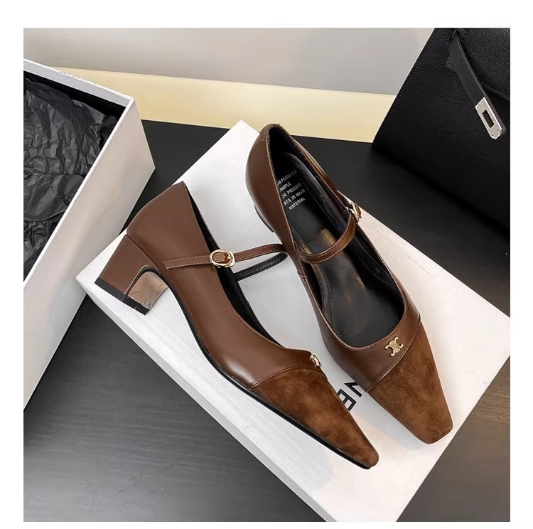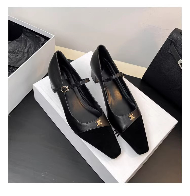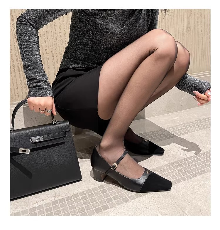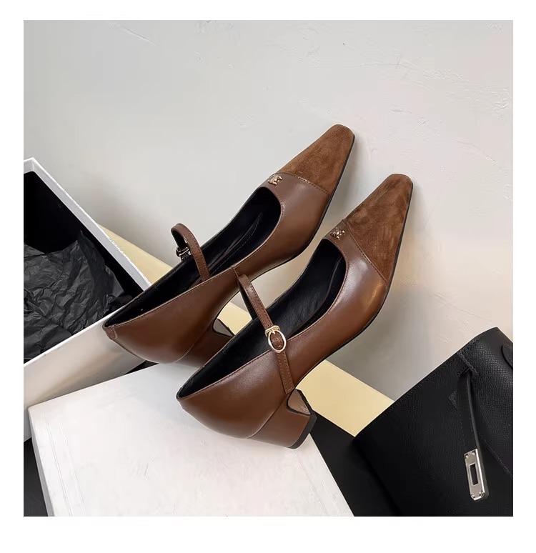 작고 넓어진 가죽 레트로 스퀘어 헤드 트라이 엄프 도어 버클 두꺼운 메리 제인 신발 하이힐 프랑스 우아한 싱글 레이어 신발 플러스 사이즈스토어 가기