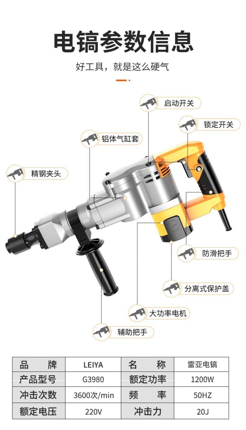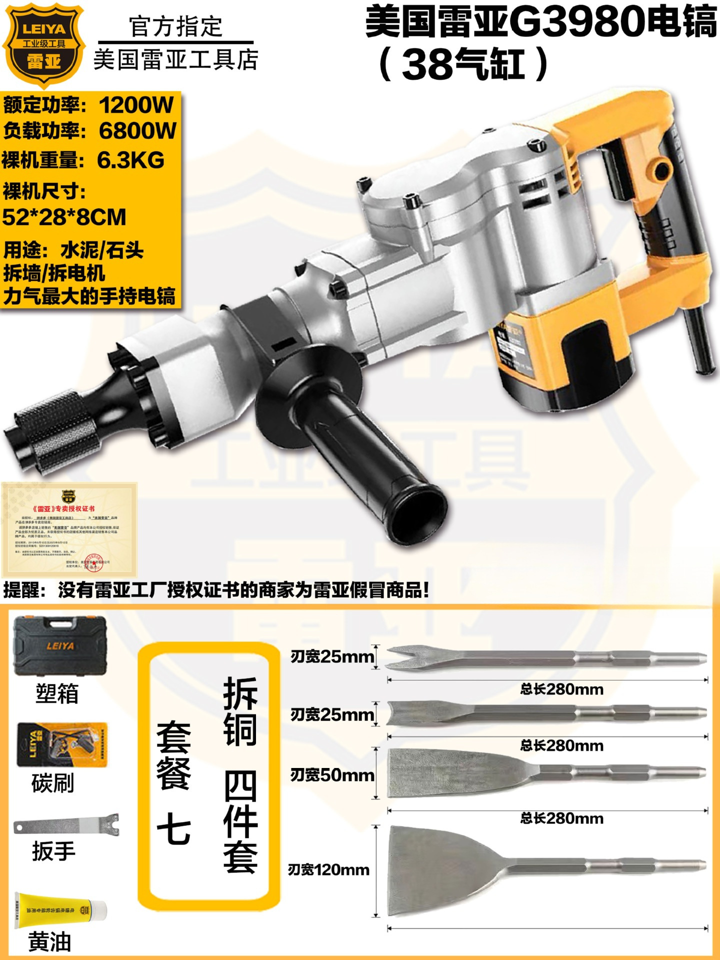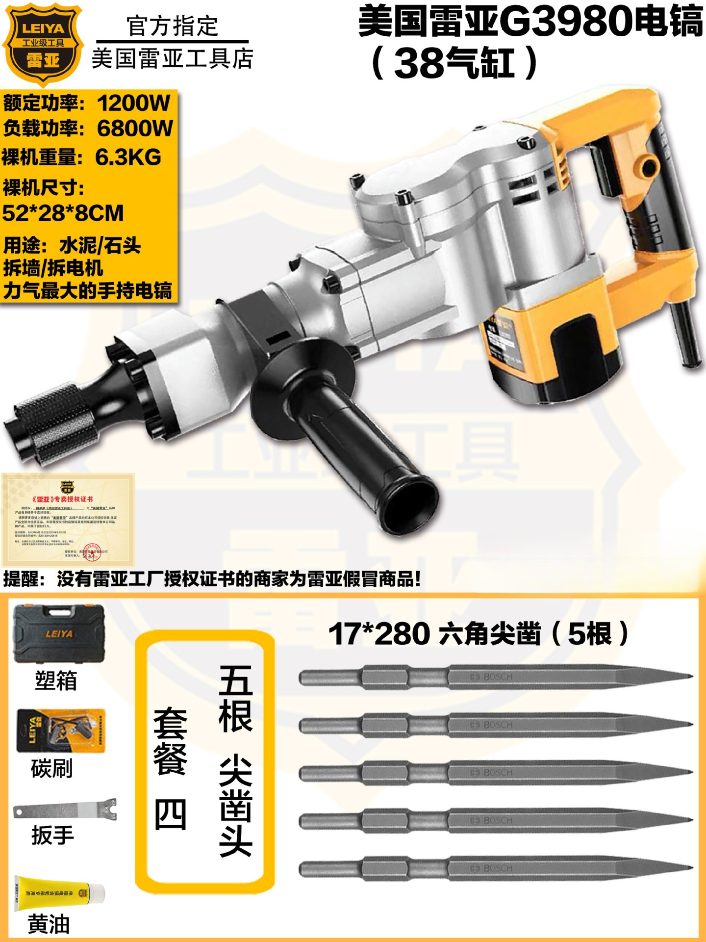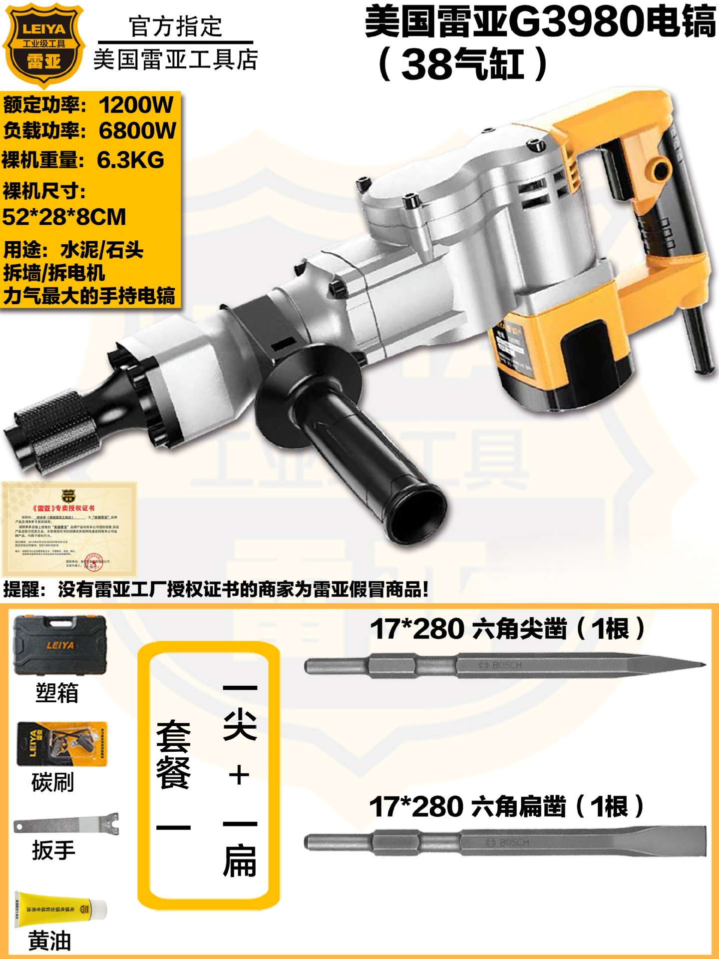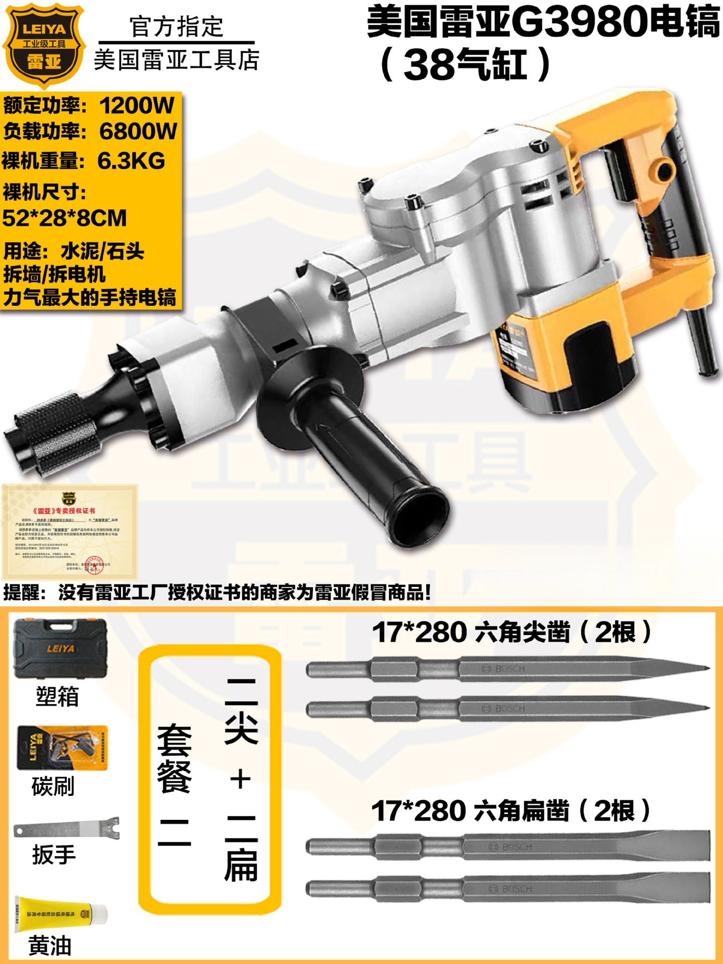 미국 Reia G3980 전기 곡괭이 산업 등급 높은 전원 단일 사용 콘크리트 분해 물 및 전기 슬롯 특수 38 실린더스토어 가기