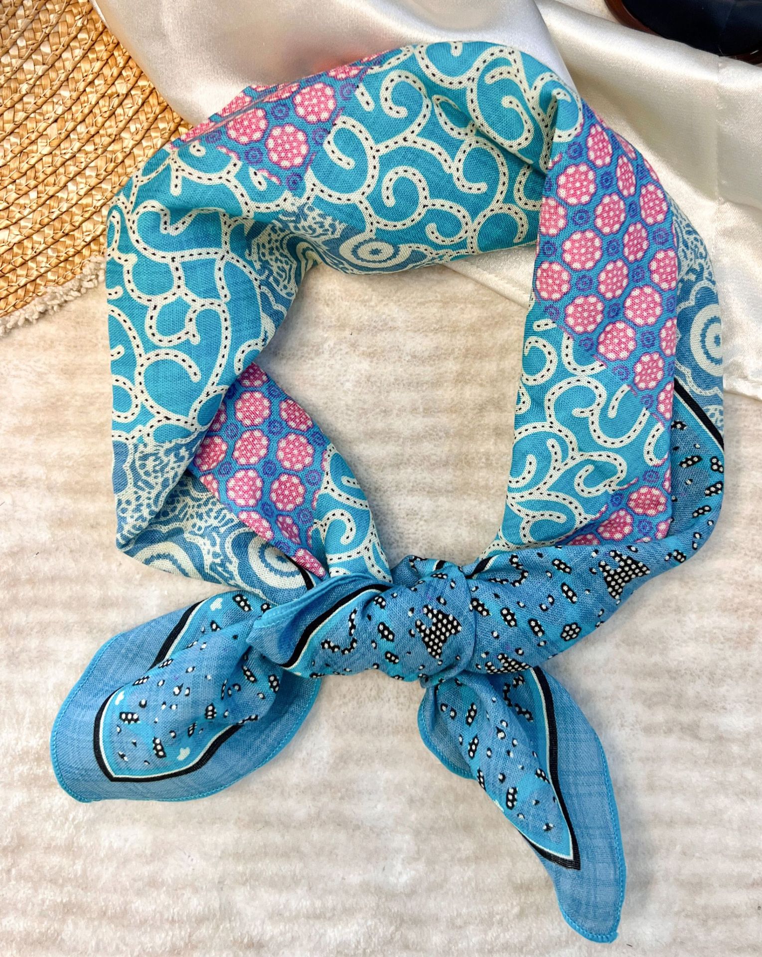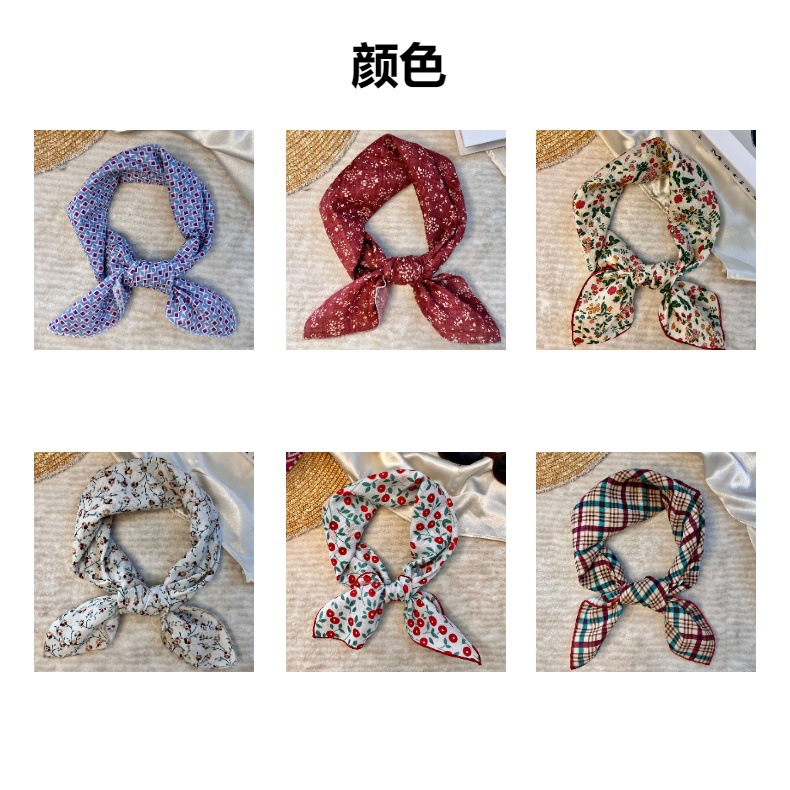 53 실크 스카프 순면 일본식 사각 스카프 머리 스카프 여성용 다용도 물방울 무늬 꽃무늬 작은 스카프 상큼한 장식 가벼운 스카프