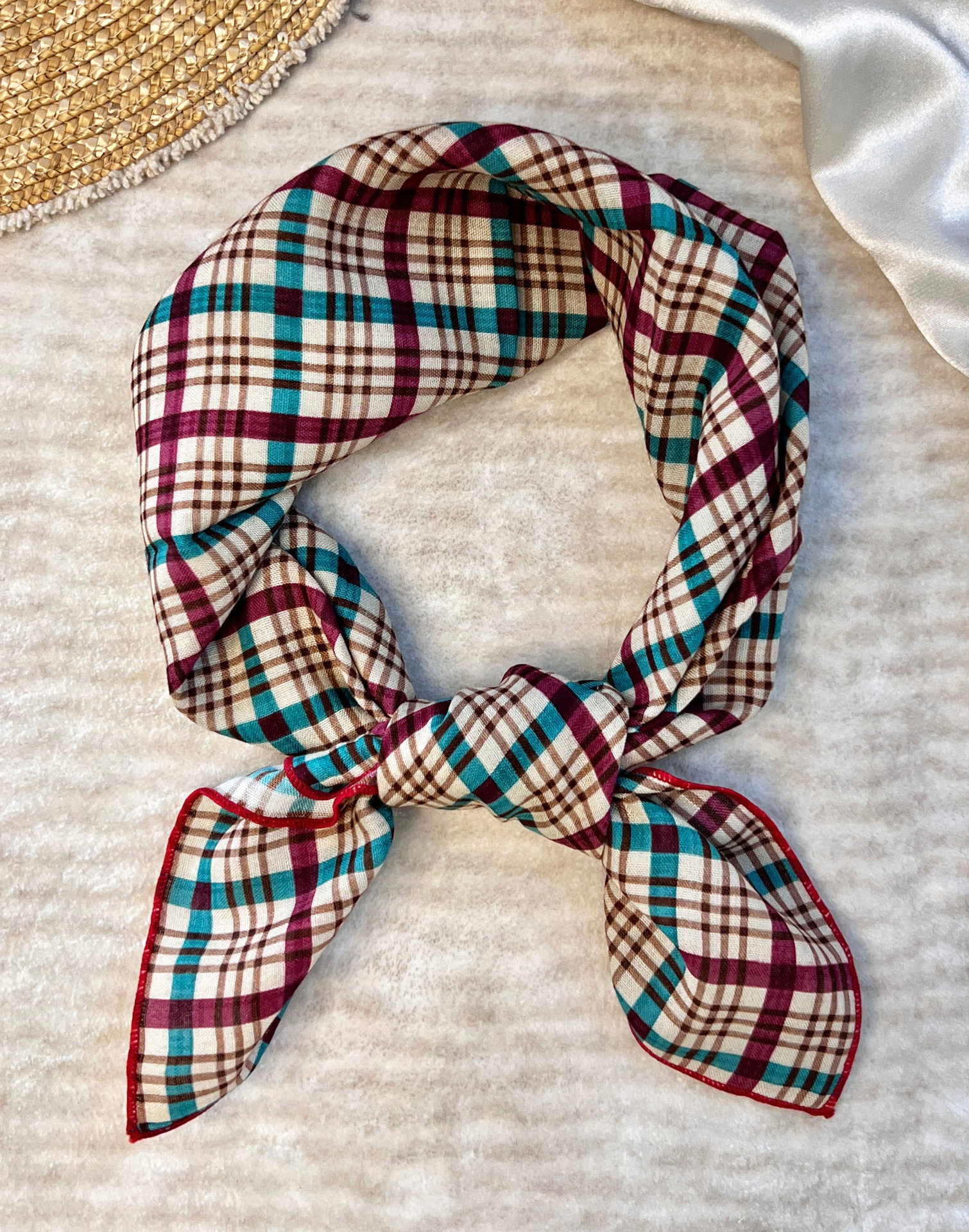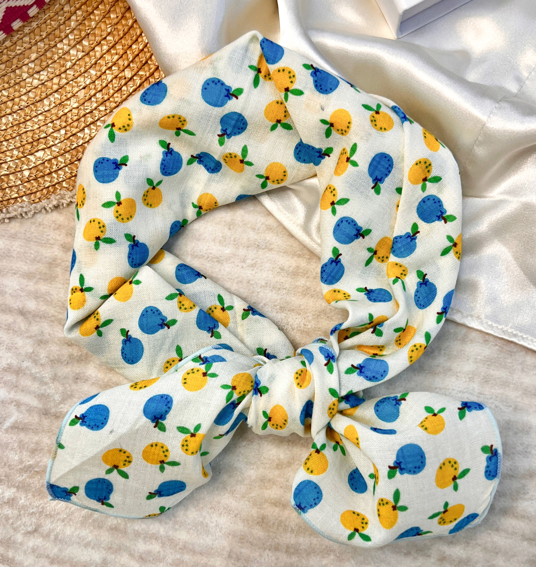 • 노란색 파란색 주황색 작은 사각형 스카프