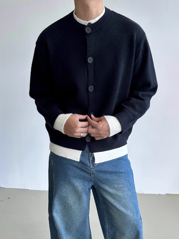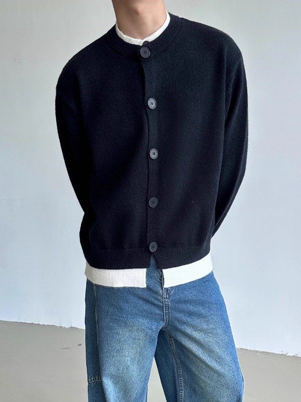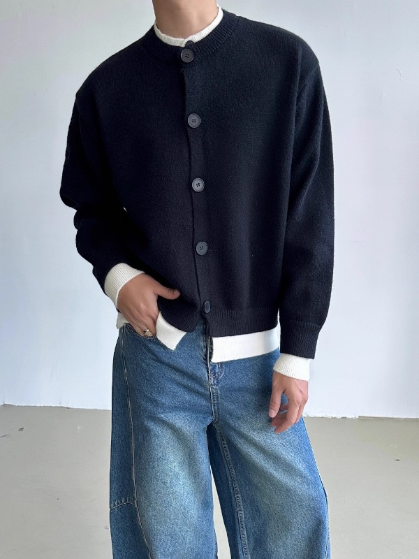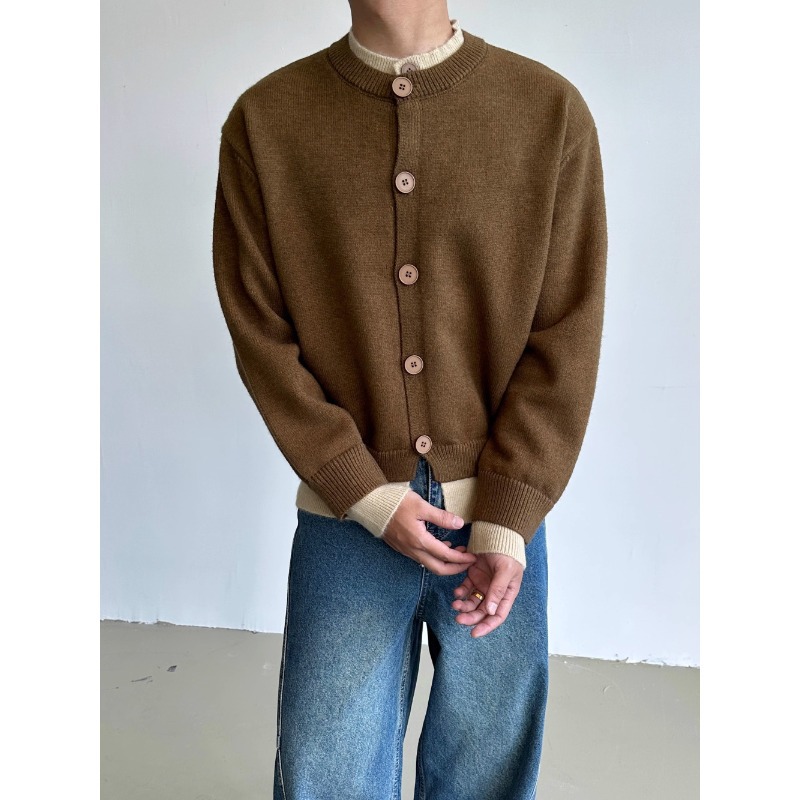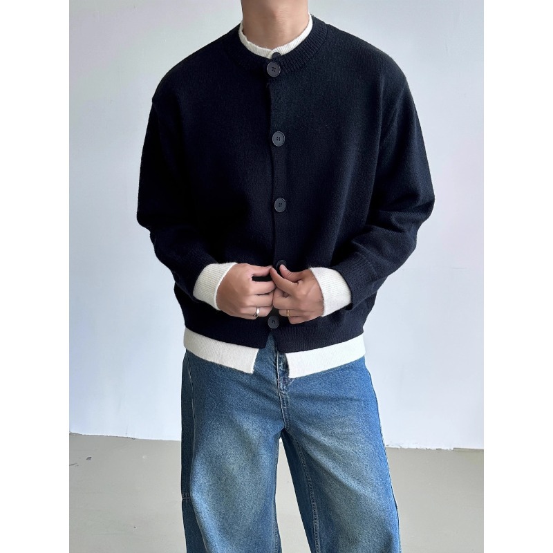 일본 스타일 게으른 스타일 컬러 매칭 크루 넥 스웨터 코트 남성 가을 및 겨울 니트 가짜 투피스 카디건 캐주얼 올 매치베이스 트렌디스토어 가기