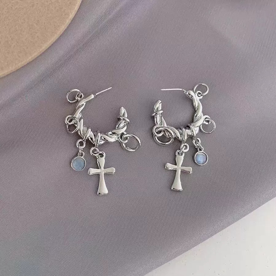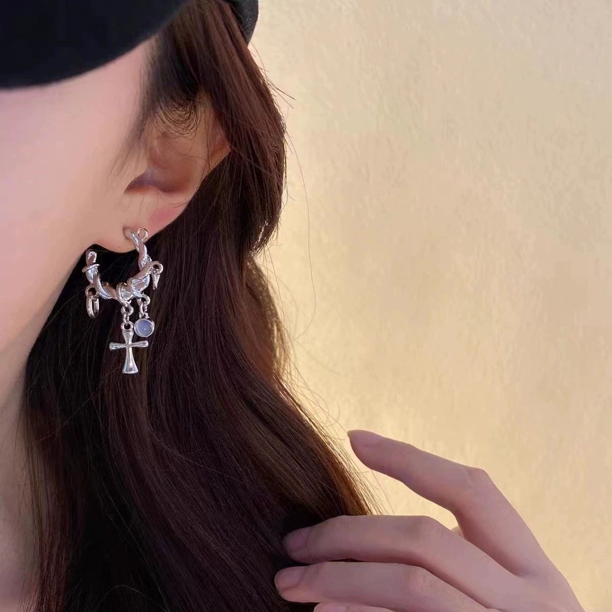 달콤한 시원한 바람 포장 트위스트 크로스 술 귀걸이 여성 틈새 창조적 인 성격 패션 귀걸이 고급 감각 귀걸이스토어 가기