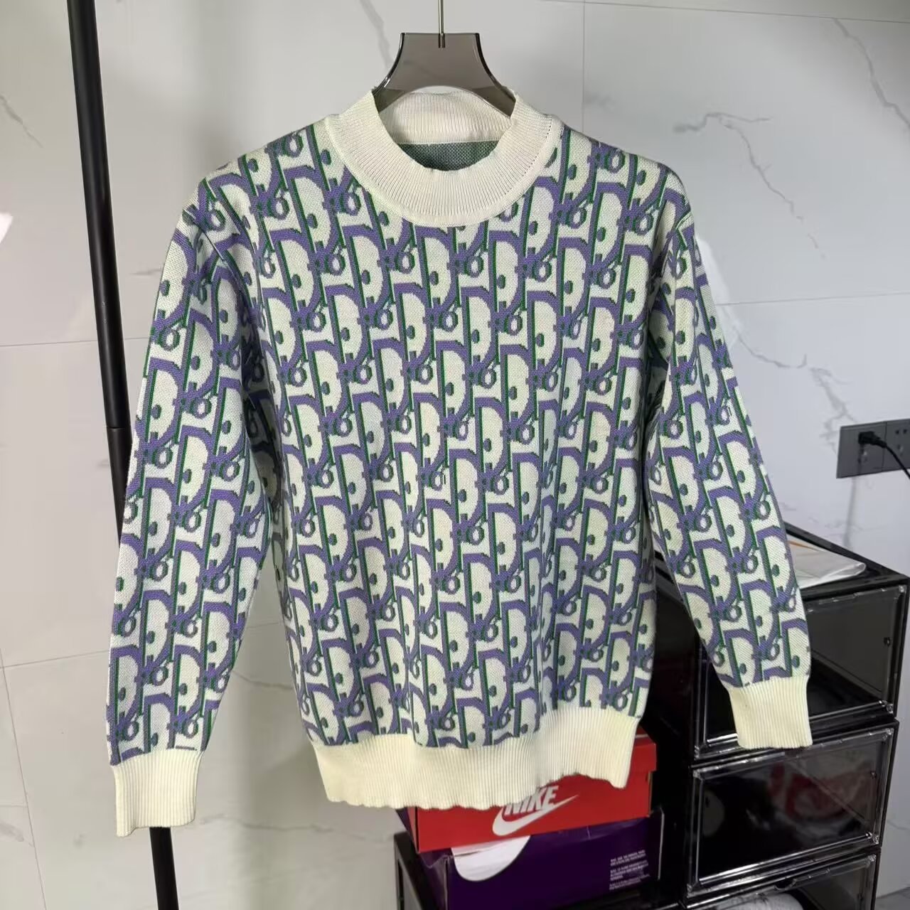 가을과 겨울 커플 빈티지 장로교 인쇄 자카드 편지 크루 넥 지퍼 긴팔 스웨터 여성용 캐주얼 루즈 니트 스웨터스토어 가기