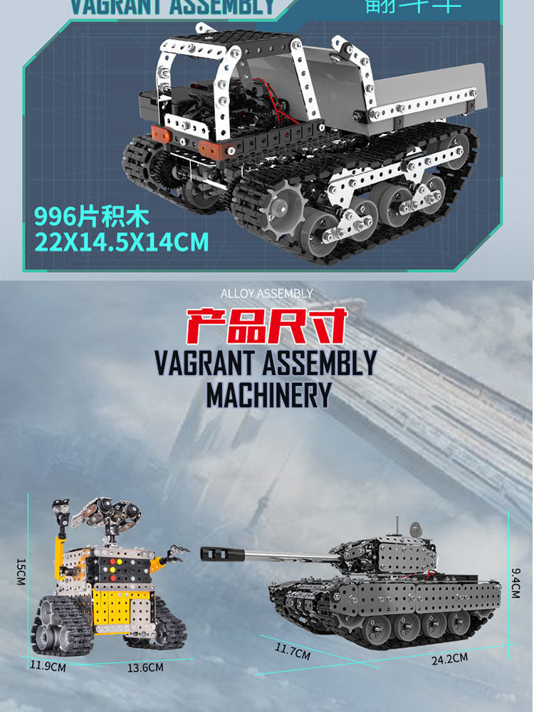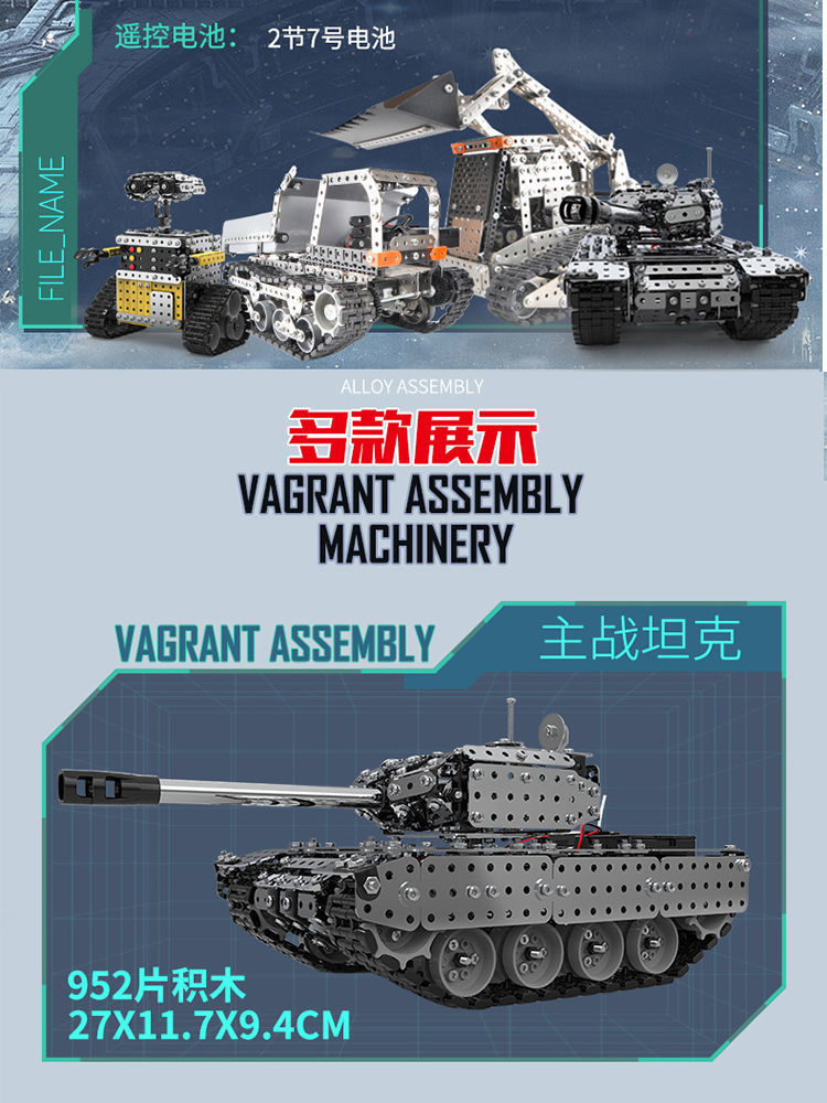 건물 블록 조립 장난감 소년 조립 원격 제어 탱크 성인 수제 난이도 3 3 차원 금속 모델