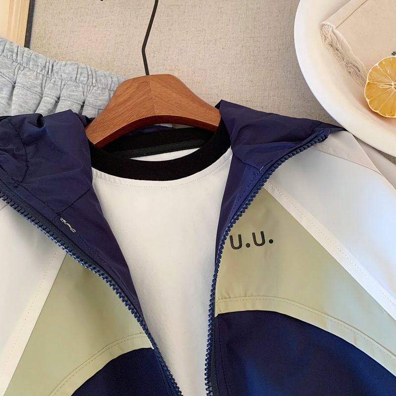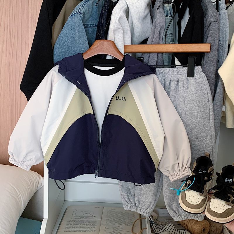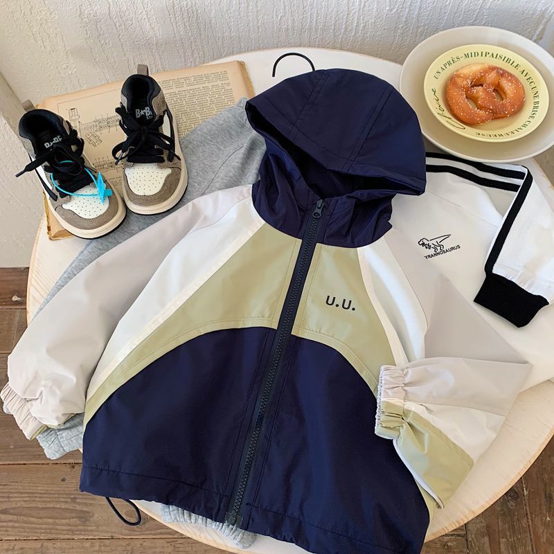 소년 재킷 2025 봄 새로운 스티칭 대조 컬러 패션 방풍 방수 쿨 핸섬 캐주얼 올 매치 윈드 브레이커 재킷스토어 가기