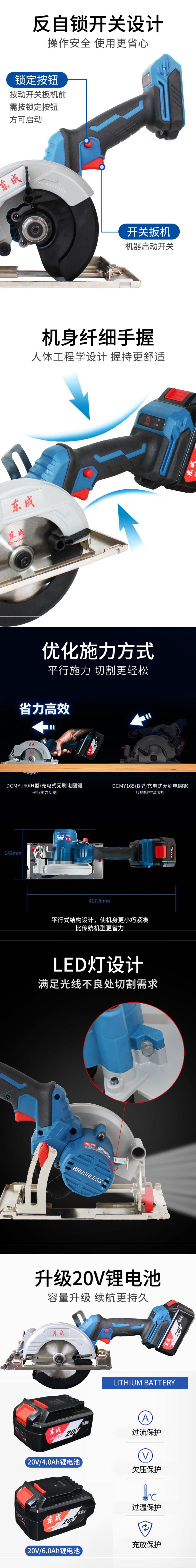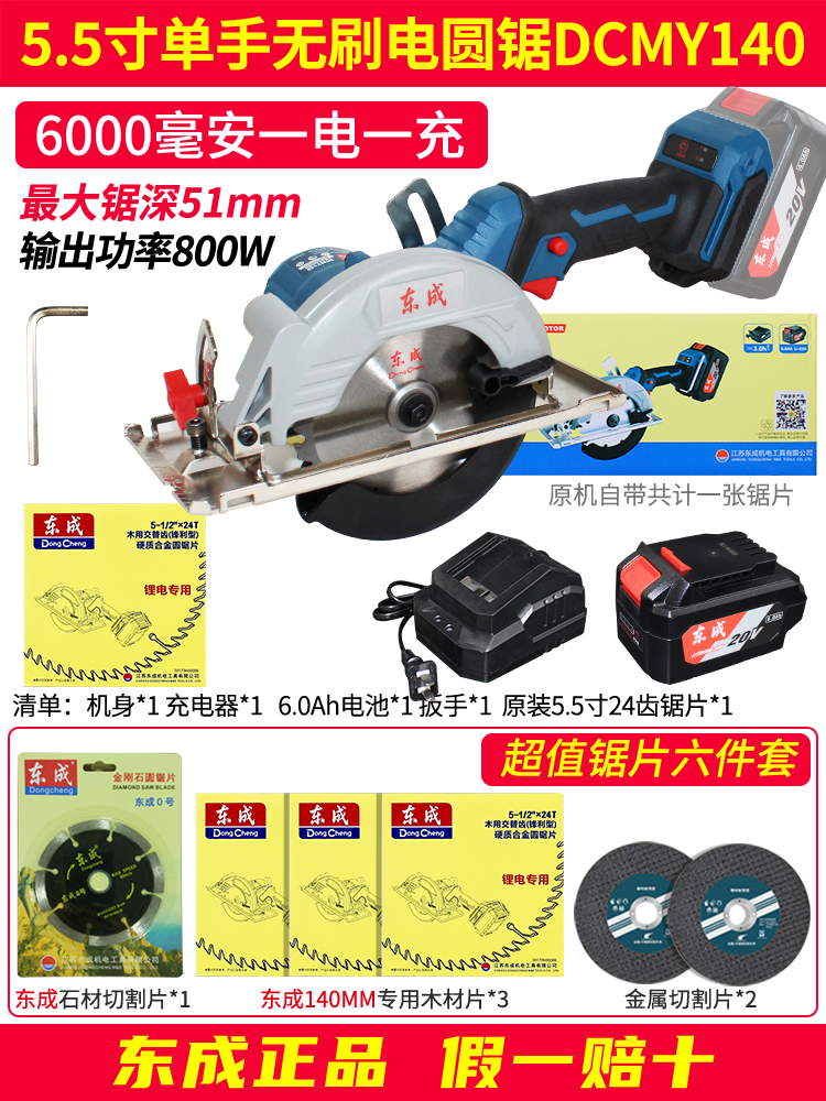 Dongcheng 리튬 전기 원형 톱 충전식 브러시리스 휴대용 절단 기계 5.5 인치 작은 Dongcheng 20V 목공 원형 톱스토어 가기