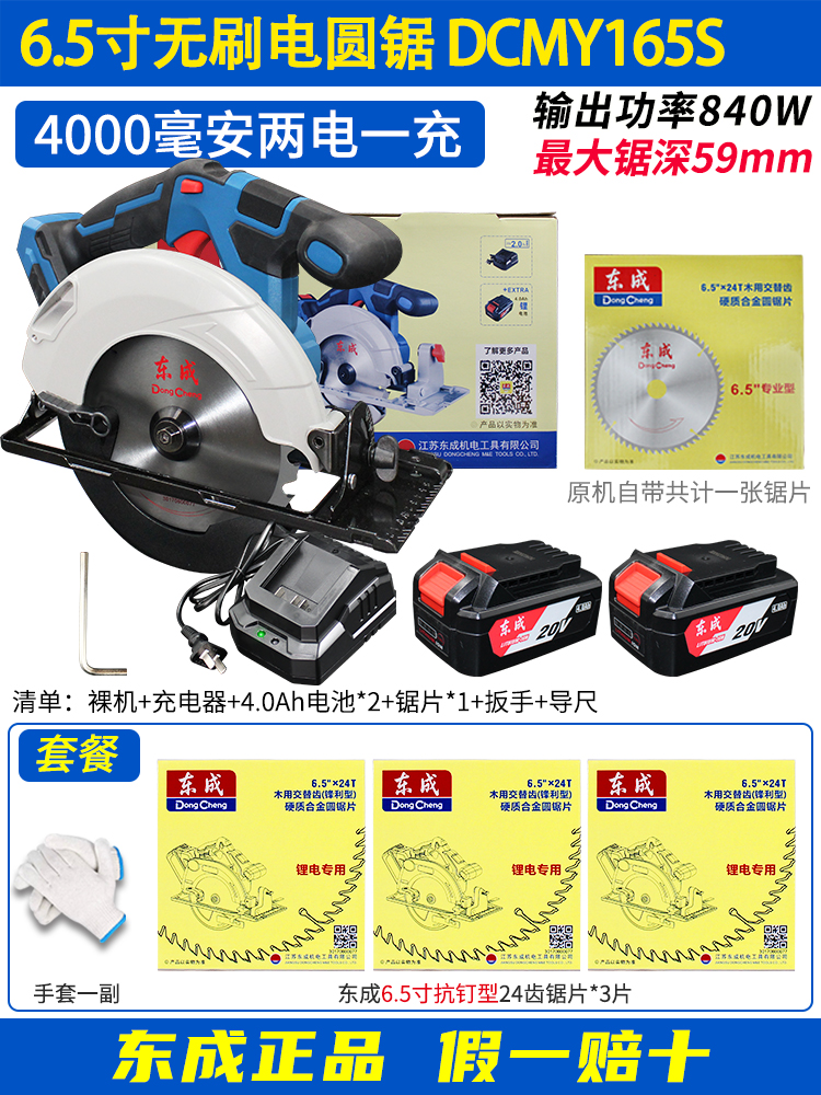 • 6.5inch 톱 165 [4.0Ah 배터리 2개 및 충전기 1개] + 톱날 패키지