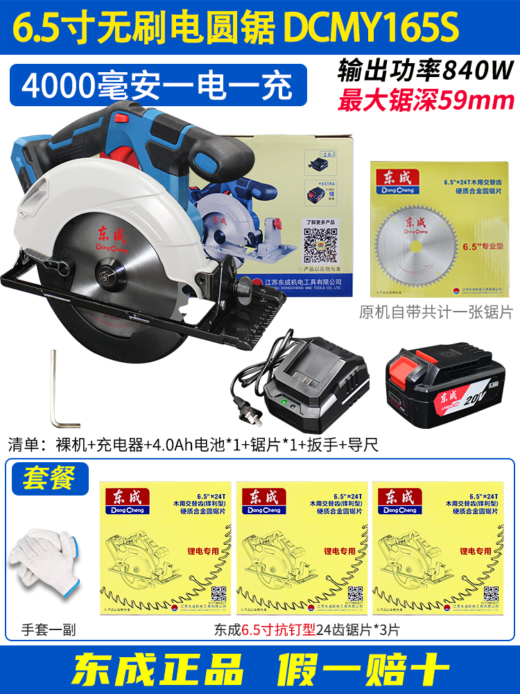 • 6.5inch 톱 165 [4.0Ah 배터리 1개, 충전 1개] + 톱날 패키지