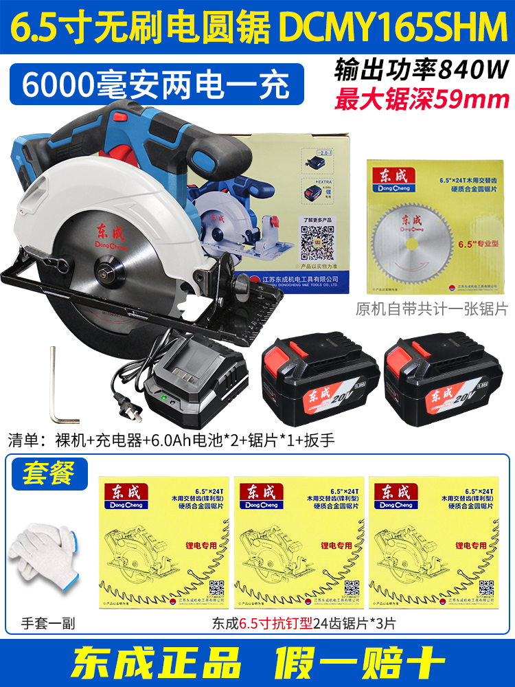 • 6.5inch 톱 165 [6.0Ah 배터리 1개, 충전 1개] + 톱날 패키지