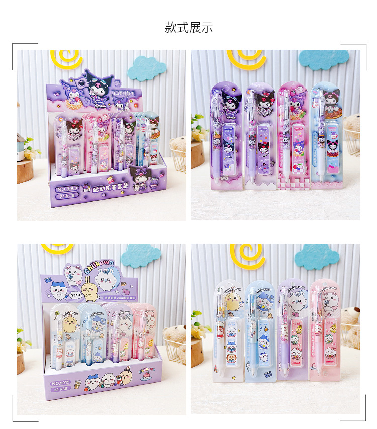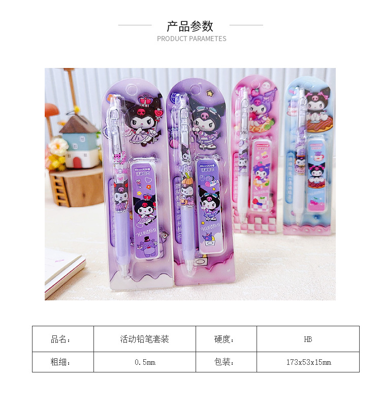 만화 산리오 새로운 자동 연필 리드 세트 0.5mm 초등학교 활동 연필 조합 문구스토어 가기