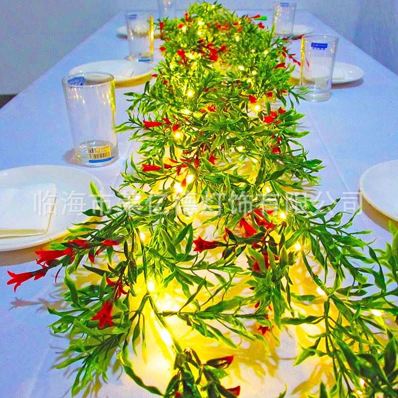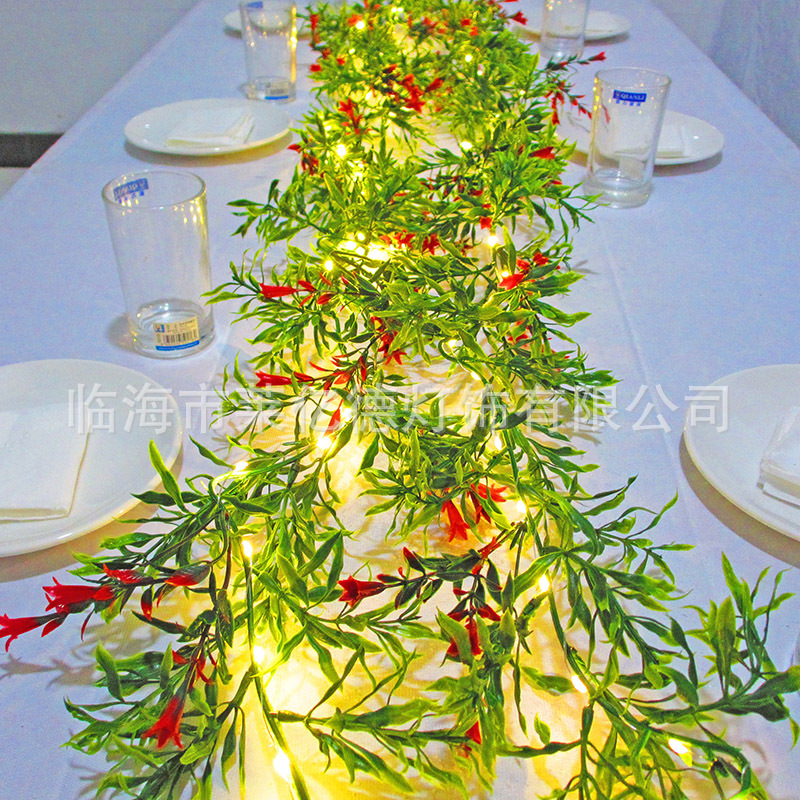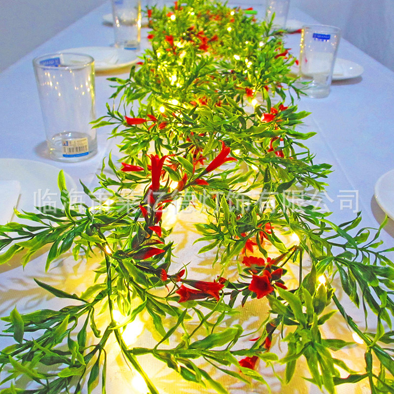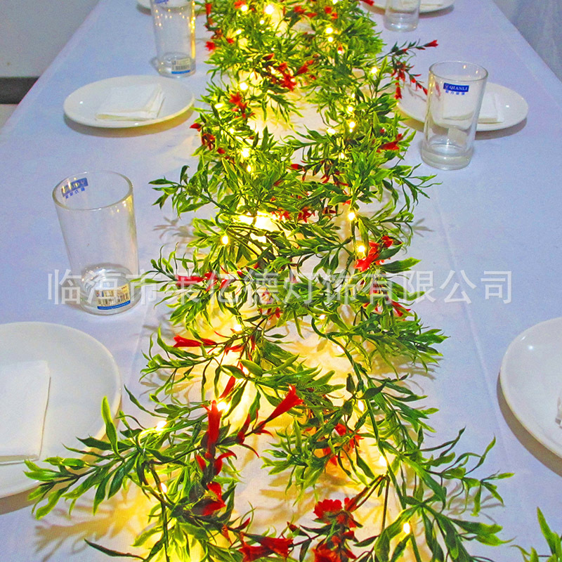 새로운 아마존 크리스마스 등나무 붉은 열매 솔잎 솔방울 LED 조명 스트링, 나팔꽃 모양 인공 꽃 장식 조명