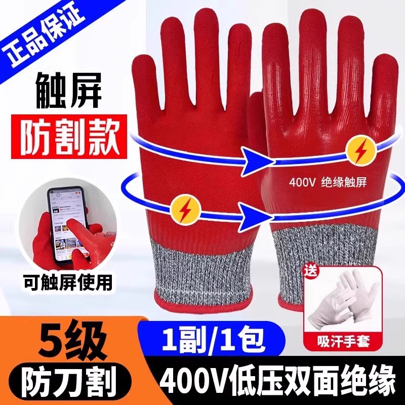 • 400V 저전압 빨간색 양면 절연 장갑 [터치스크린 베임 방지]