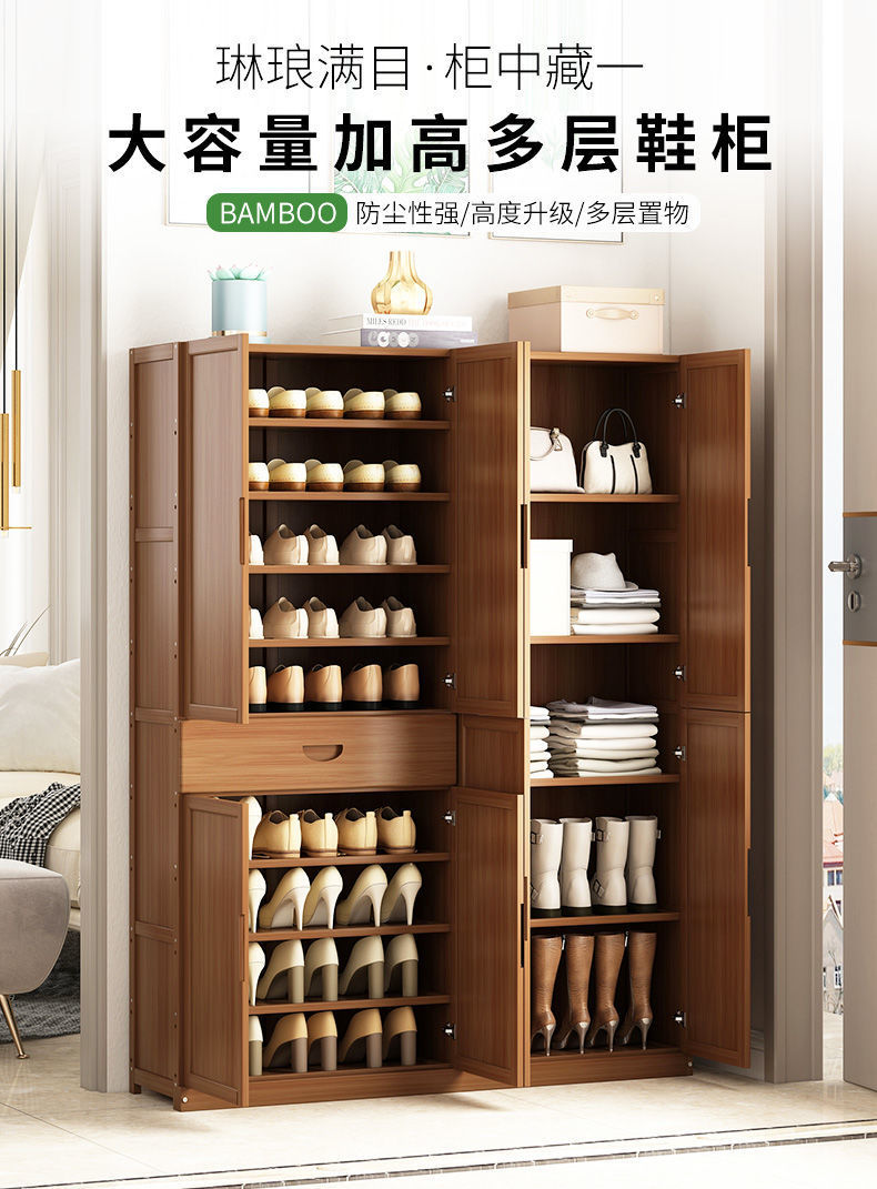 신발 랙 다층 단단한 나무 신발 캐비닛 가정용 현관 실내 방진 저장 다기능 대용량 입구 캐비닛 국경스토어 가기
