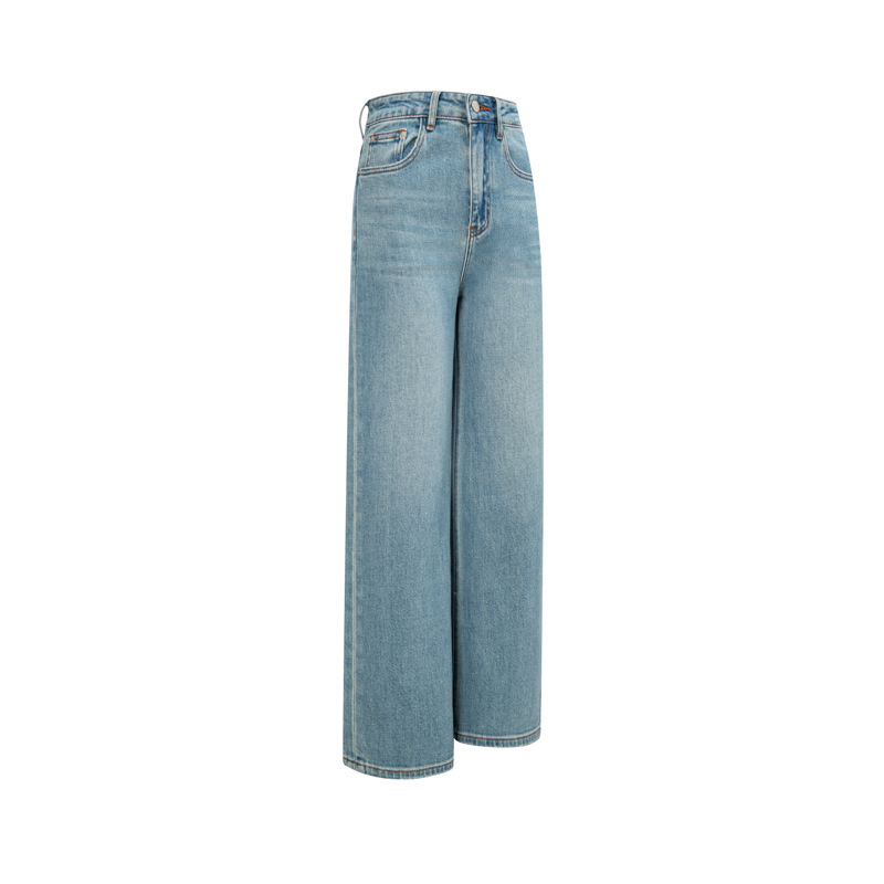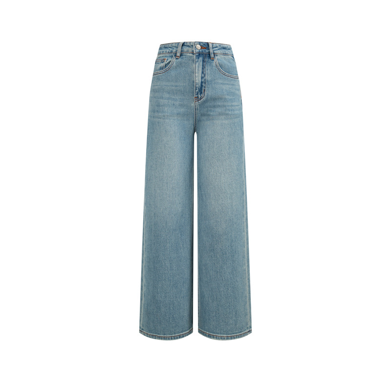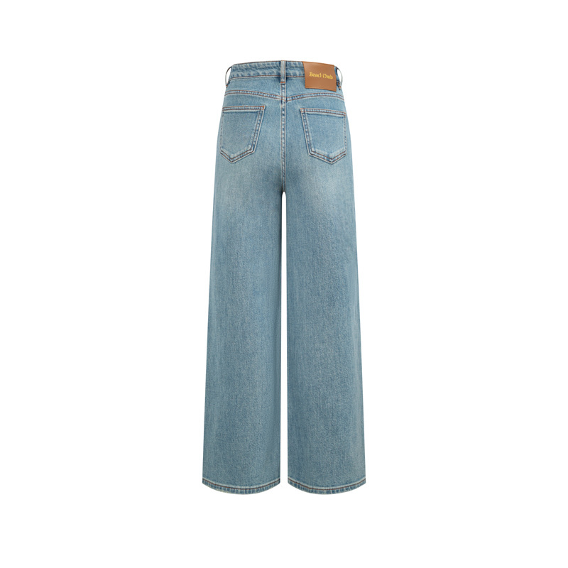 2026 봄 신축성 있는 원단 스트레이트 데님 팬츠 여성용 프렌치 레트로 하이웨이스트 사계절 데님 마이크로 엘라스틱 데님스토어 가기