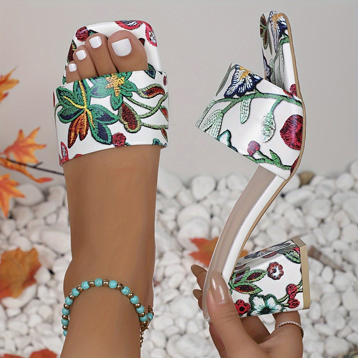 유럽과 미국의 대외 무역 자수 열린 발가락 하이힐 스퀘어 헤드 슬리퍼 여성 국경 간 플러스 사이즈 거친 뒤꿈치 패션 슬리퍼 이베이스토어 가기