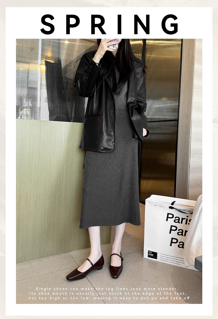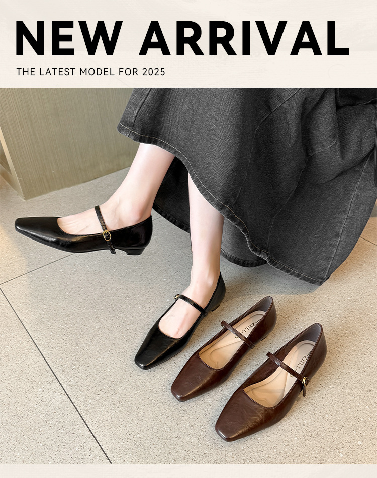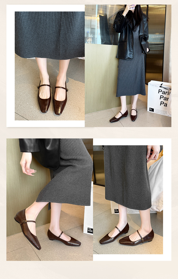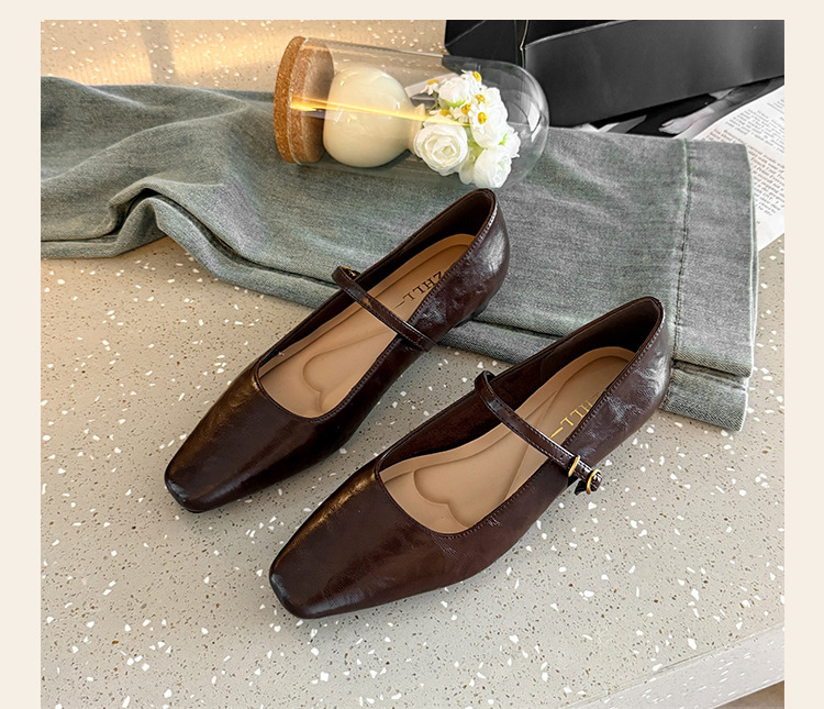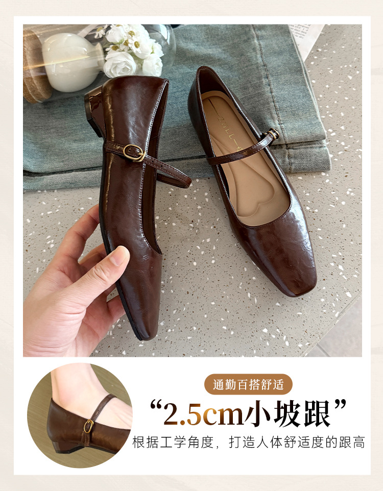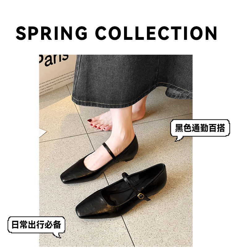 520-1 스퀘어토 스프링 메리제인 여성화 통근용 두꺼운 굽 단화 넓고 통통한 발용 낮은 굽 큰 사이즈 여성화 41-43