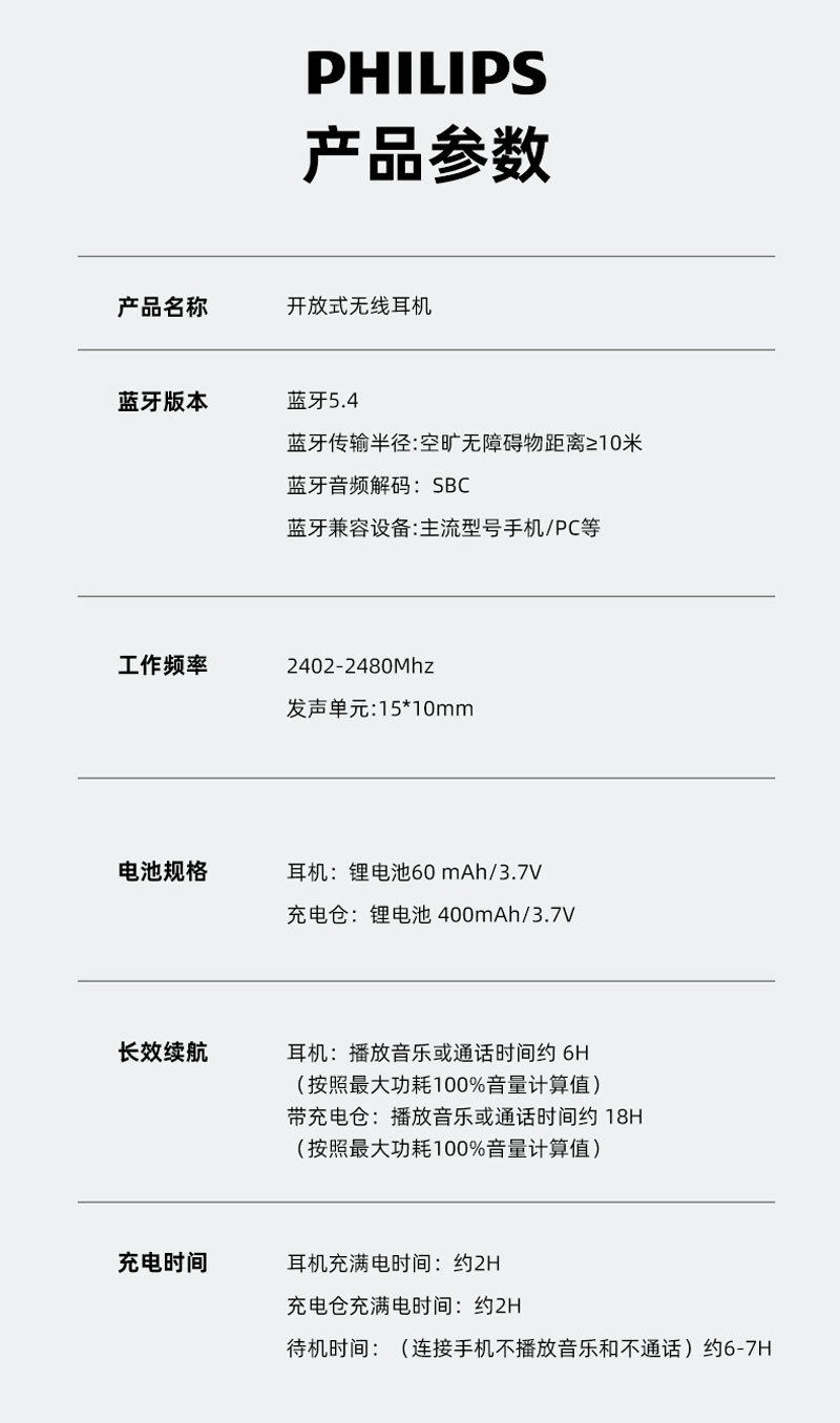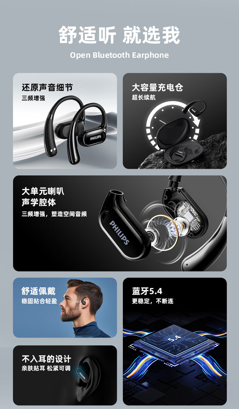 필립스 TAT3739 귀걸이형 오픈형 스포츠 블루투스 이어폰