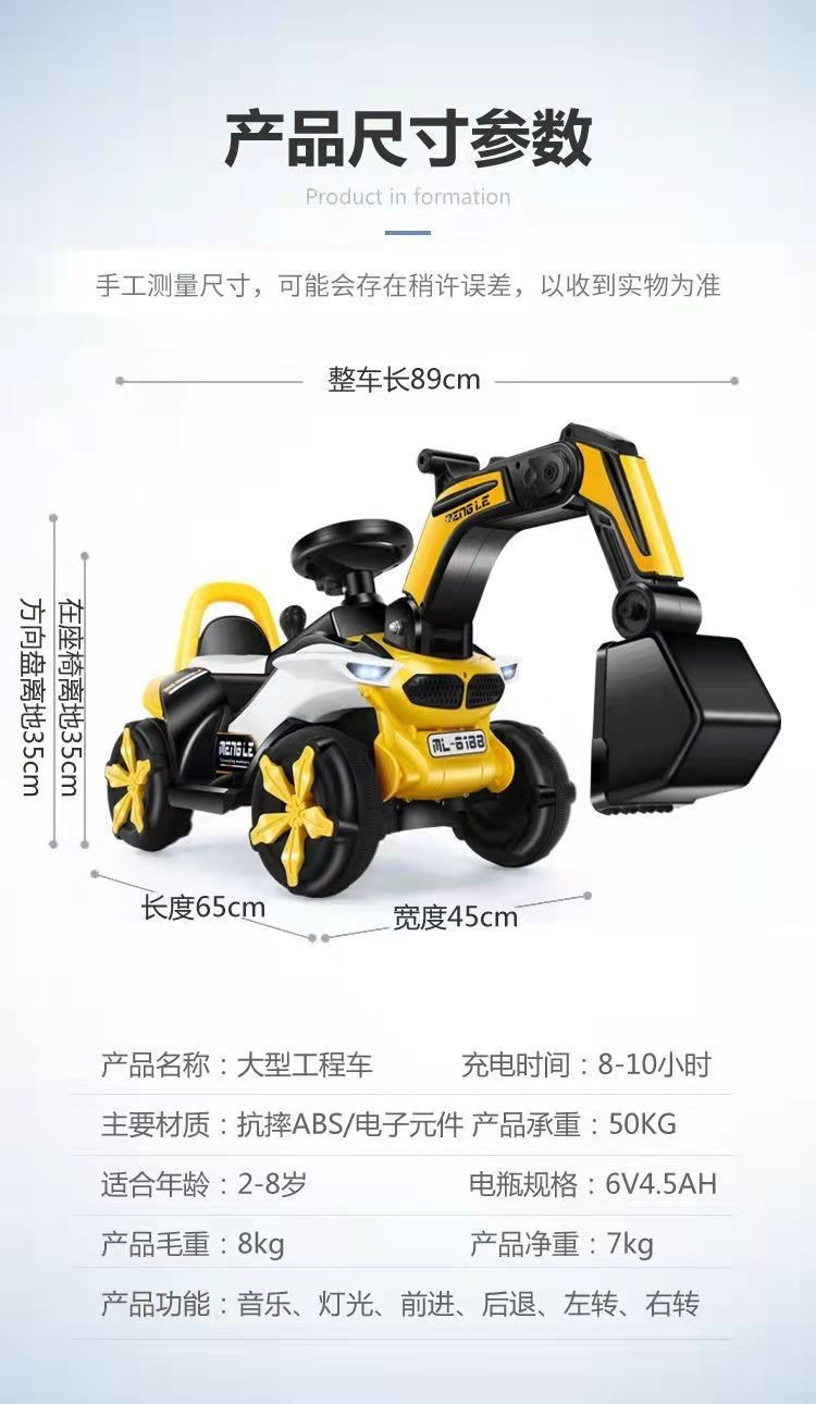 어린이 굴삭기 Sidable 굴삭기 엔지니어링 차량 소년과 소녀 장난감 자동차 Sidable 어린이 충전식 슬라이딩 전기 자동차