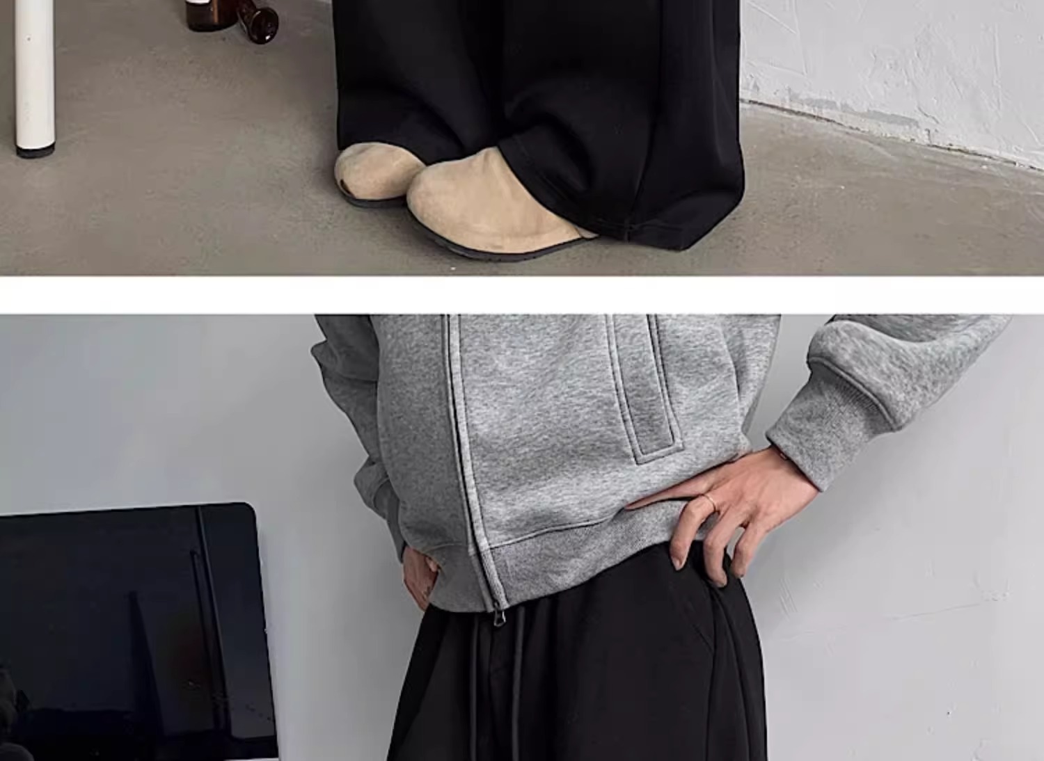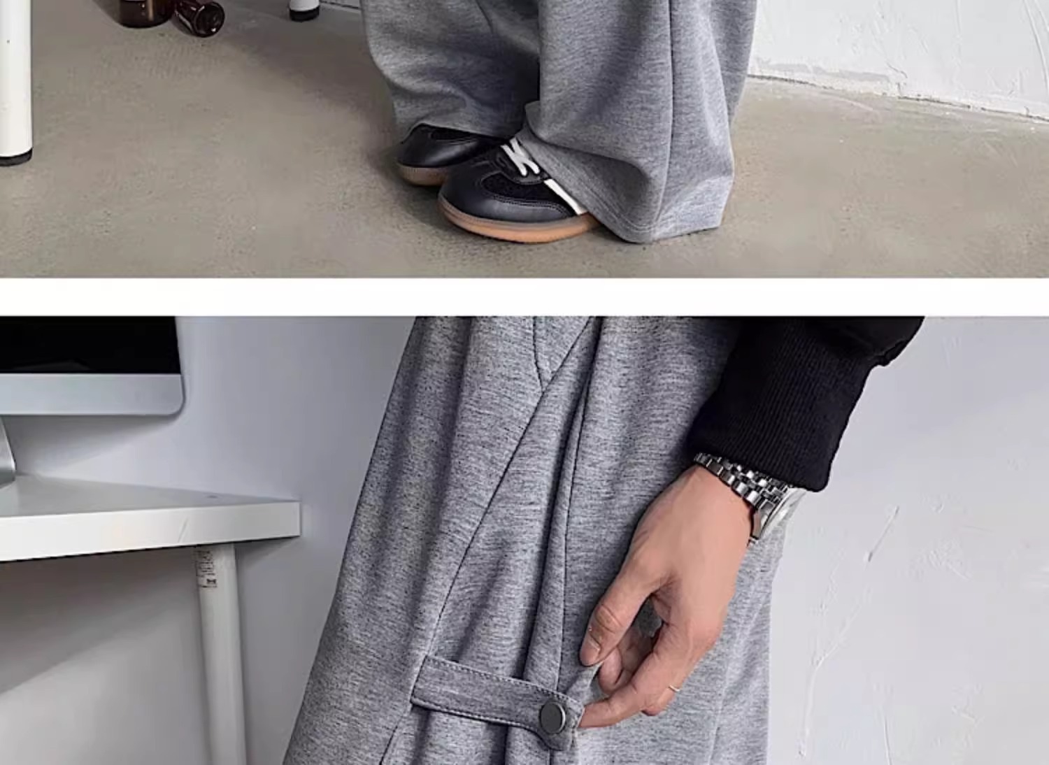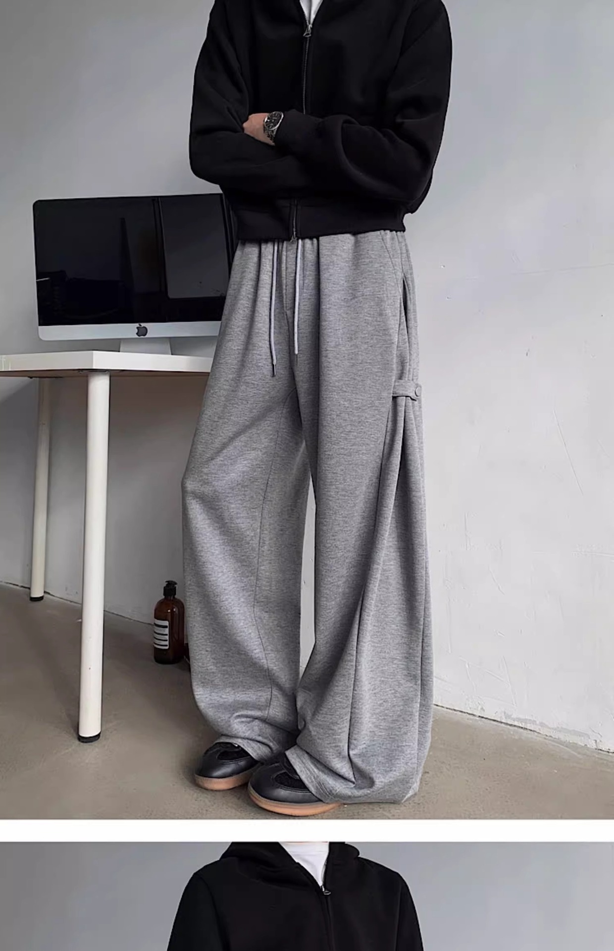 하이 엔드 센스 그레이 헤비 웨이트 와이드 레그 스포츠 바지 남성용 스트랩 디자인 센스 캐주얼 팬츠 루즈 딥 팬츠스토어 가기