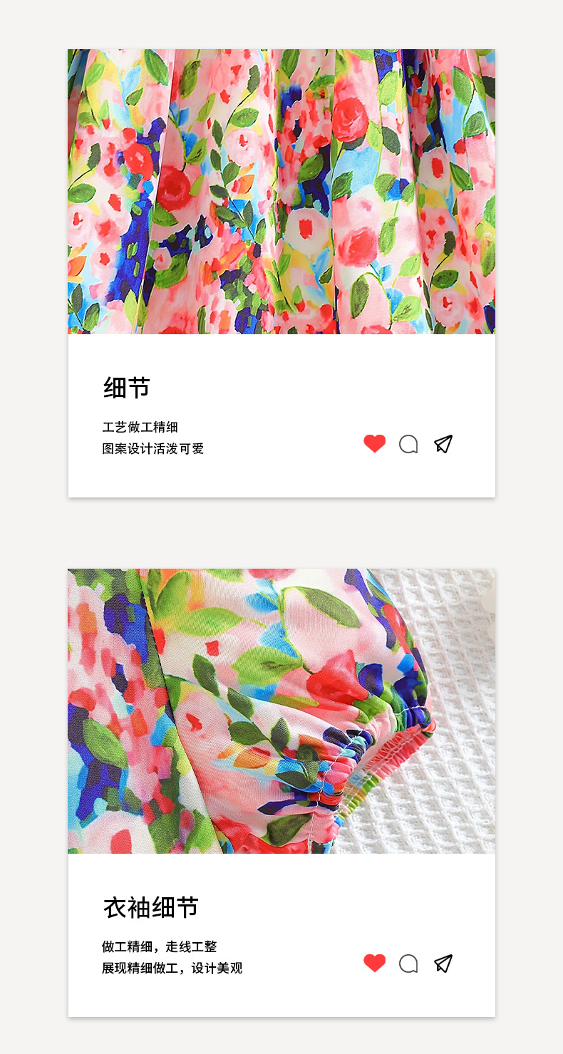 국경 간 소녀의 꽃 원피스 여름 모네 유화 스타일 버블 슬리브 캐주얼 웨스턴 스타일 어린이 엘 롱 스커트