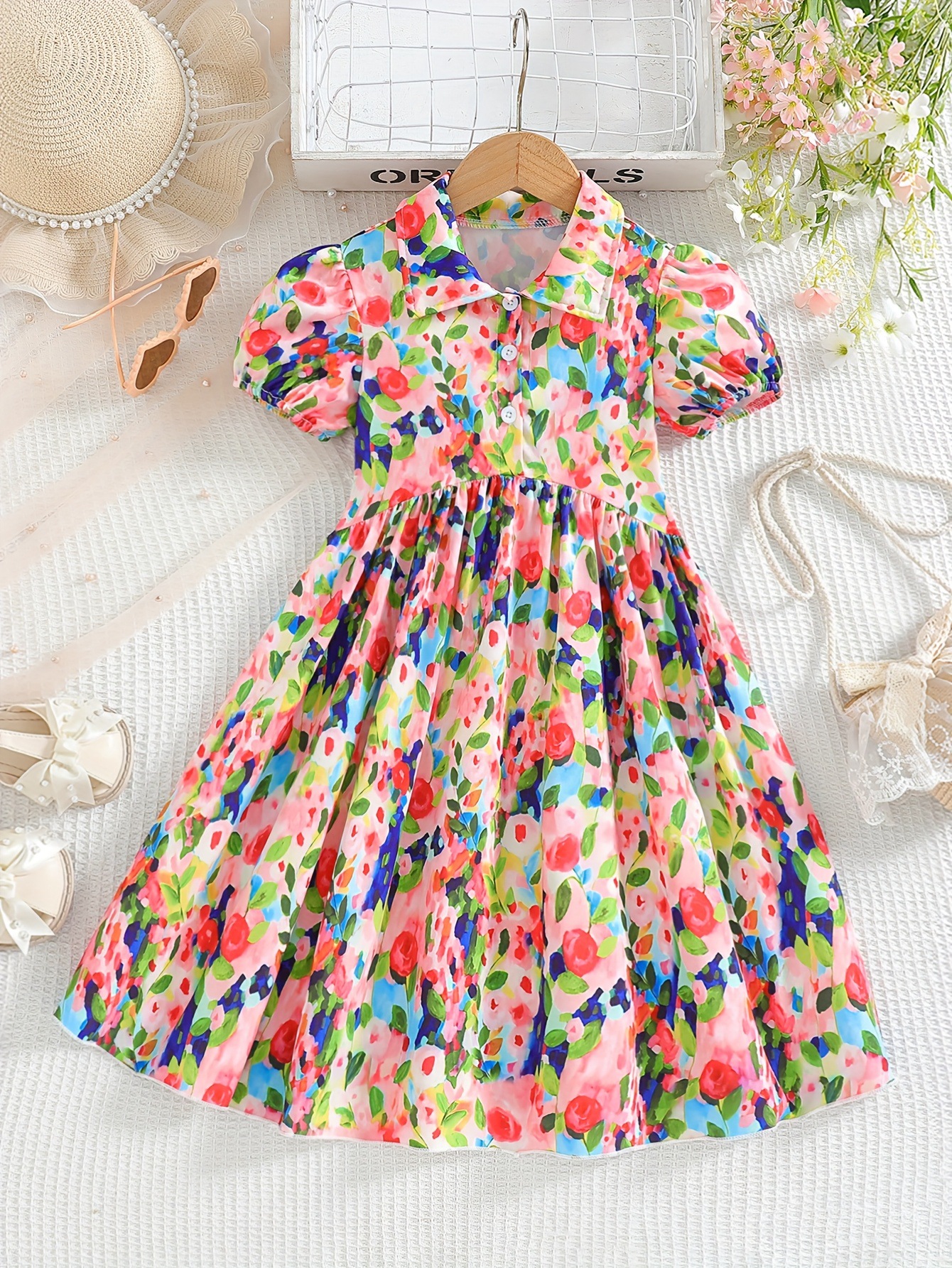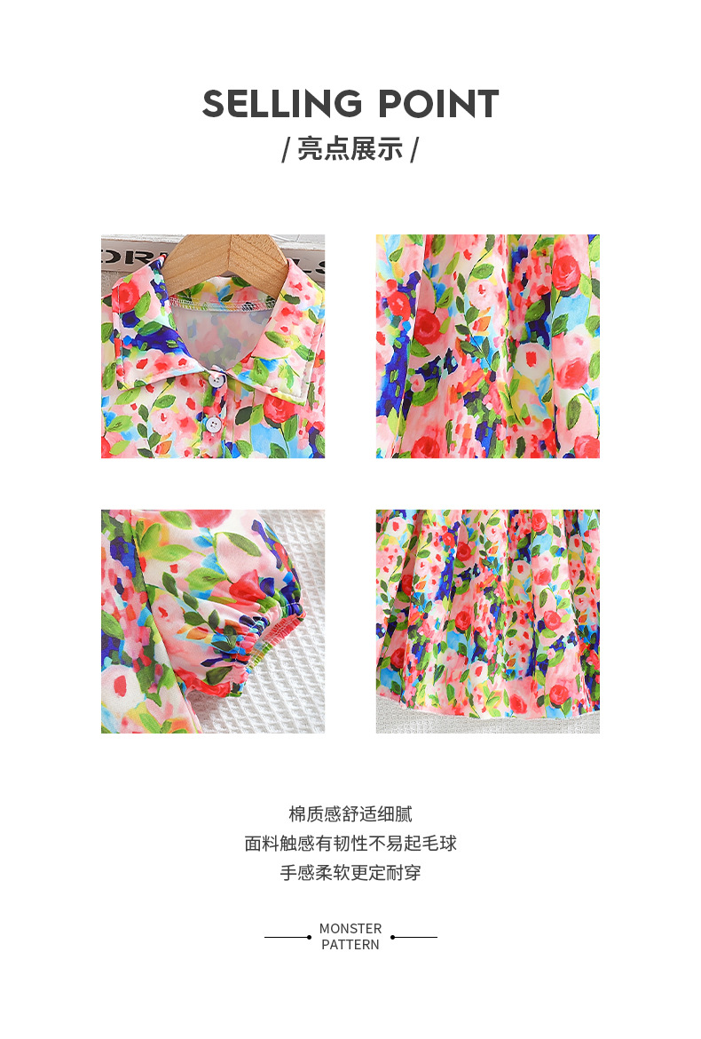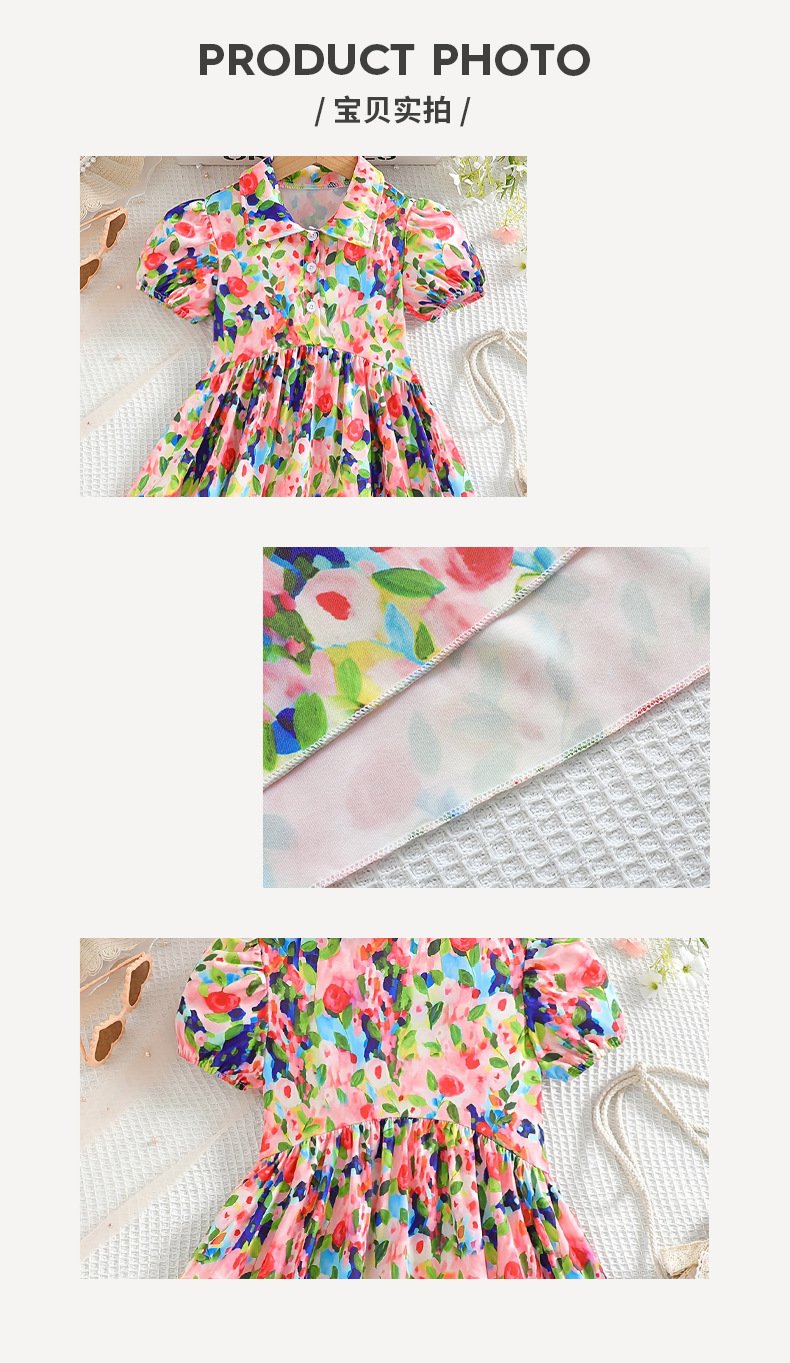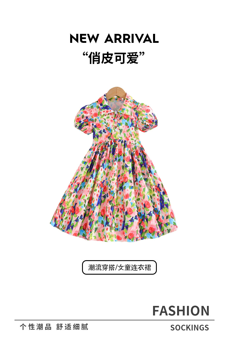 국경 간 소녀의 꽃 원피스 여름 모네 유화 스타일 버블 슬리브 캐주얼 웨스턴 스타일 어린이 엘 롱 스커트스토어 가기