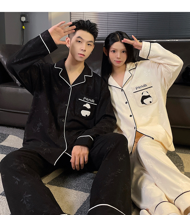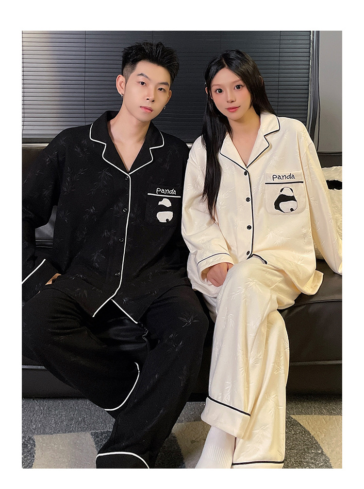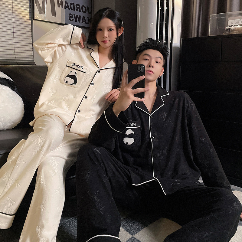 커플 잠옷 여성의 가을과 겨울 벨벳 긴 소매 만화 팬더 남자 따뜻한 집 옷 세트 겨울 2024