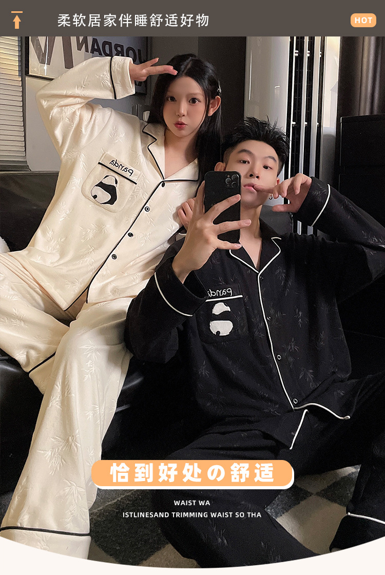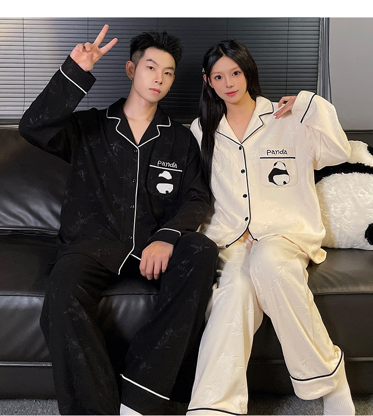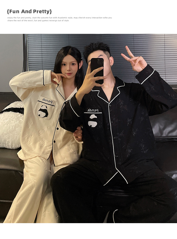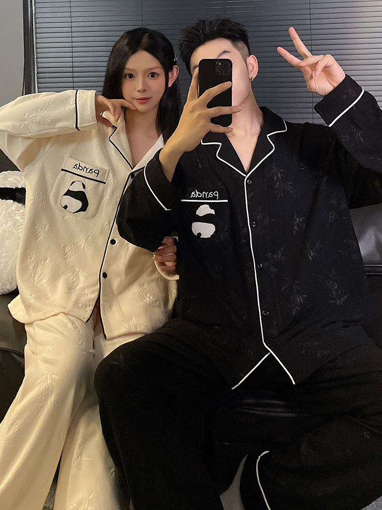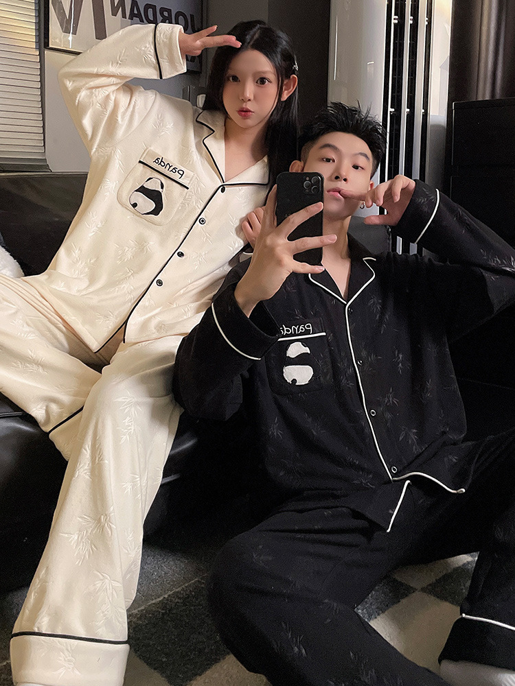 커플 잠옷 여성의 가을과 겨울 벨벳 긴 소매 만화 팬더 남자 따뜻한 집 옷 세트 겨울 2024스토어 가기