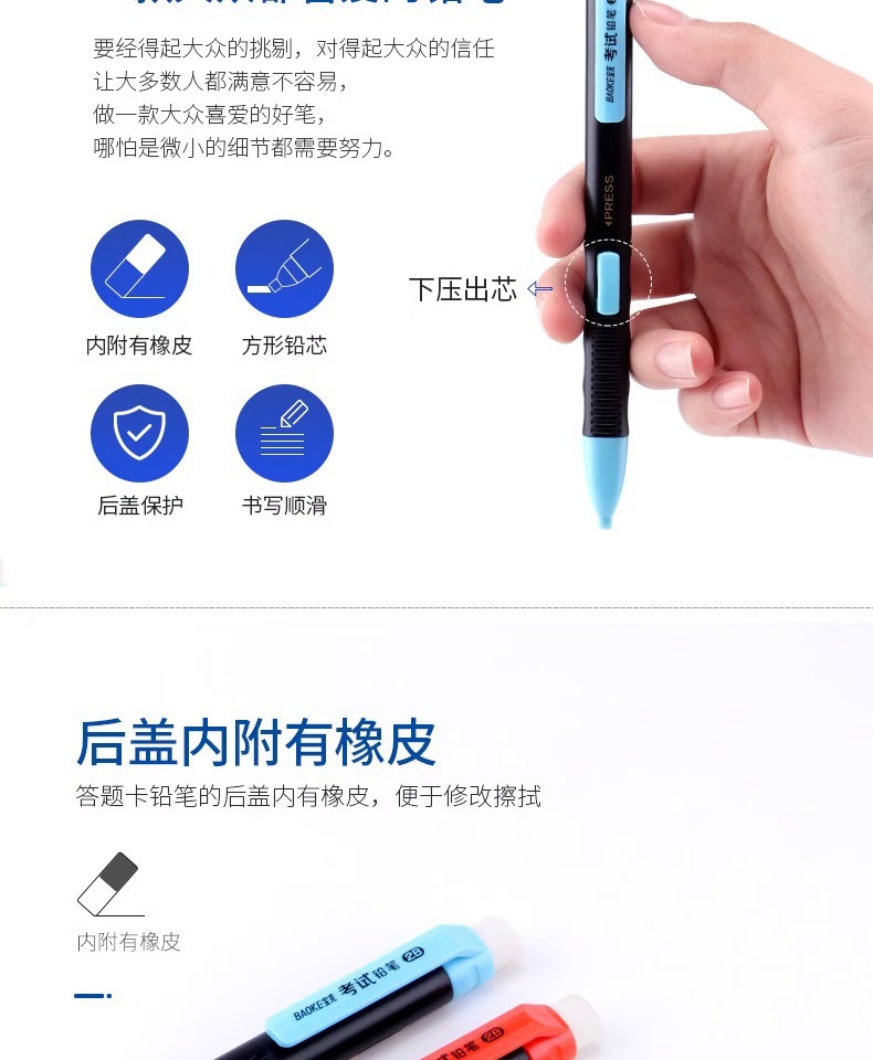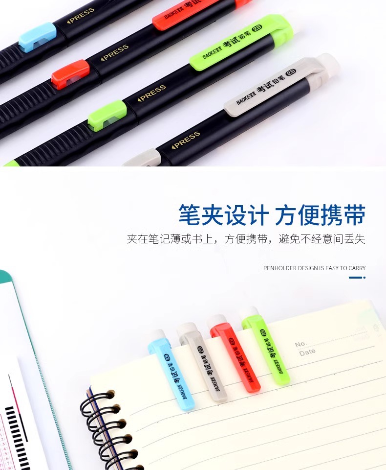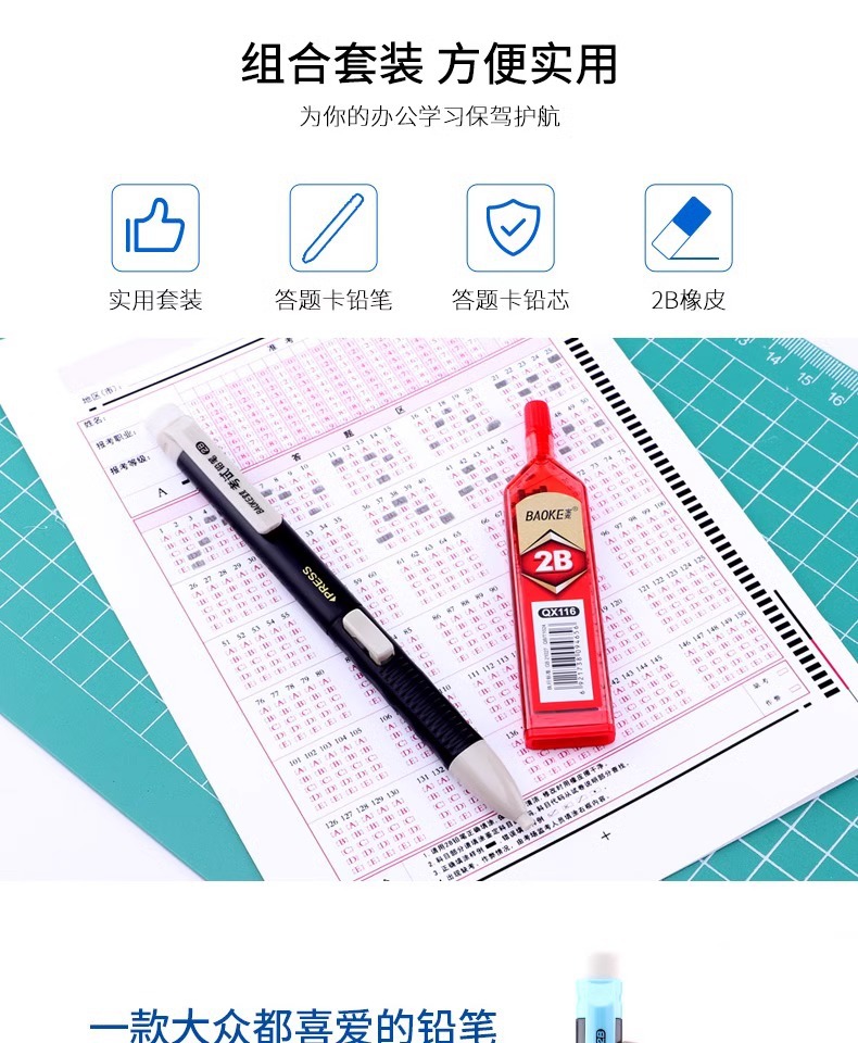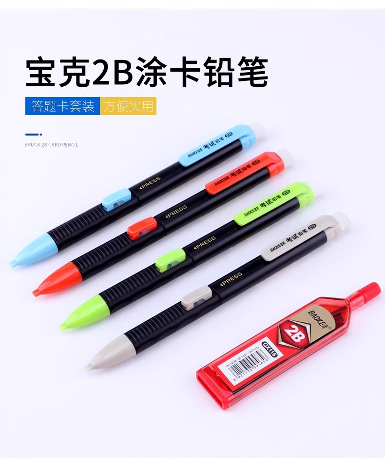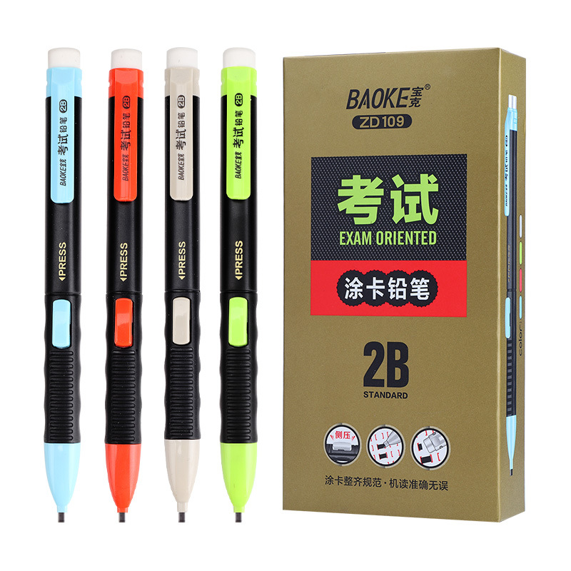 바오커 ZD109 시험용 카드채우기 펜 2B 시험용 연필 지우개 포함 고급스러운 자동 연필심