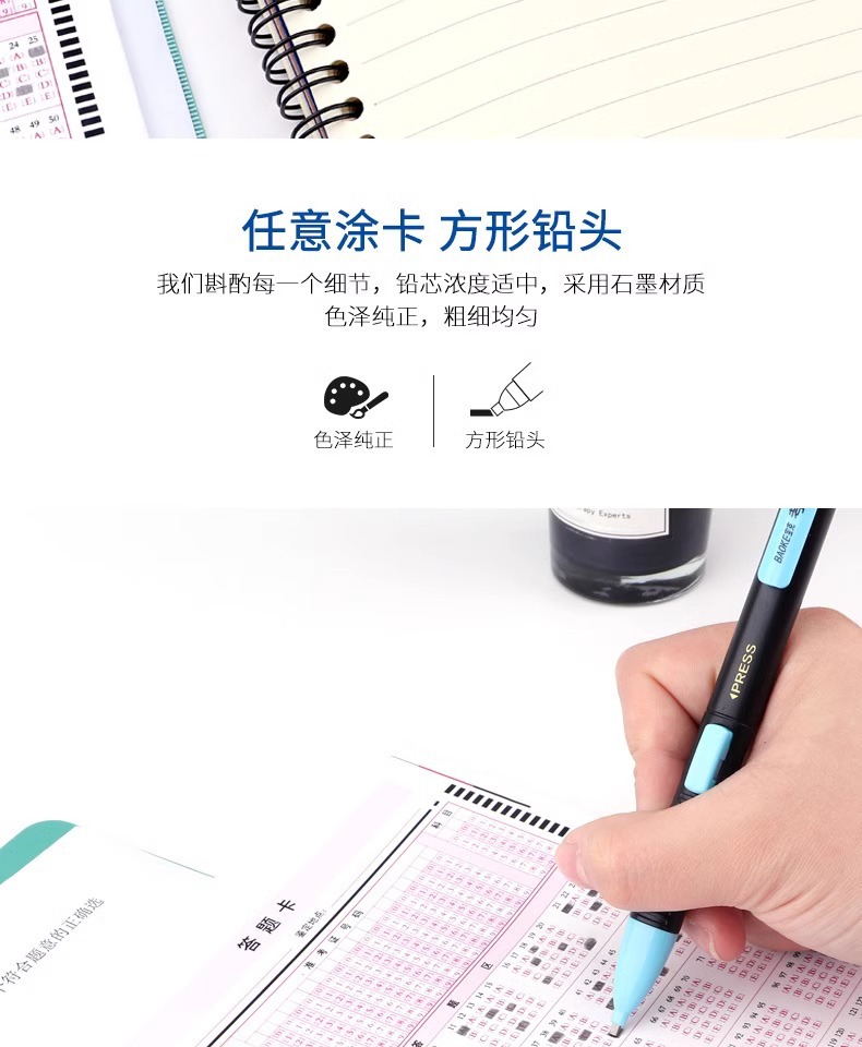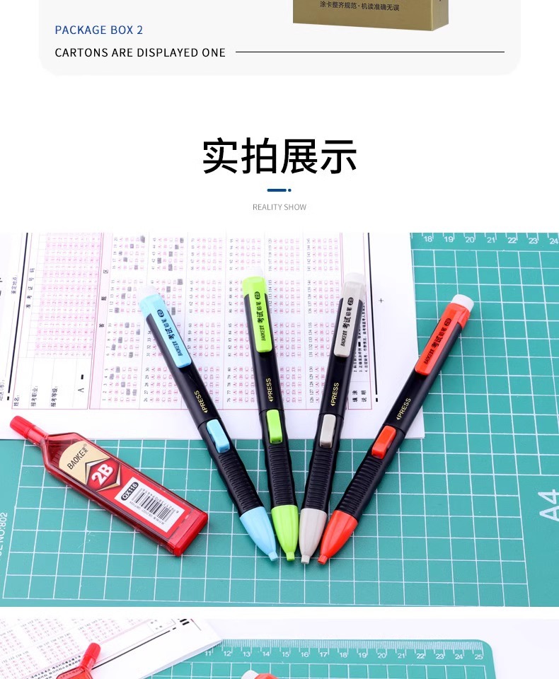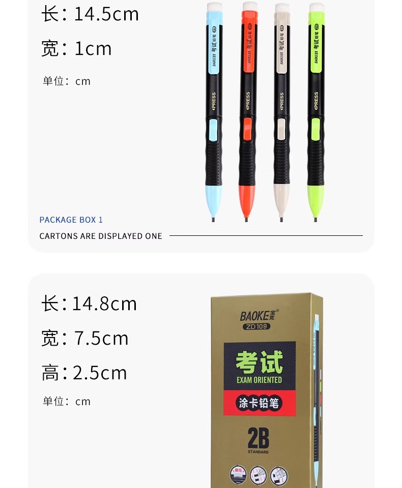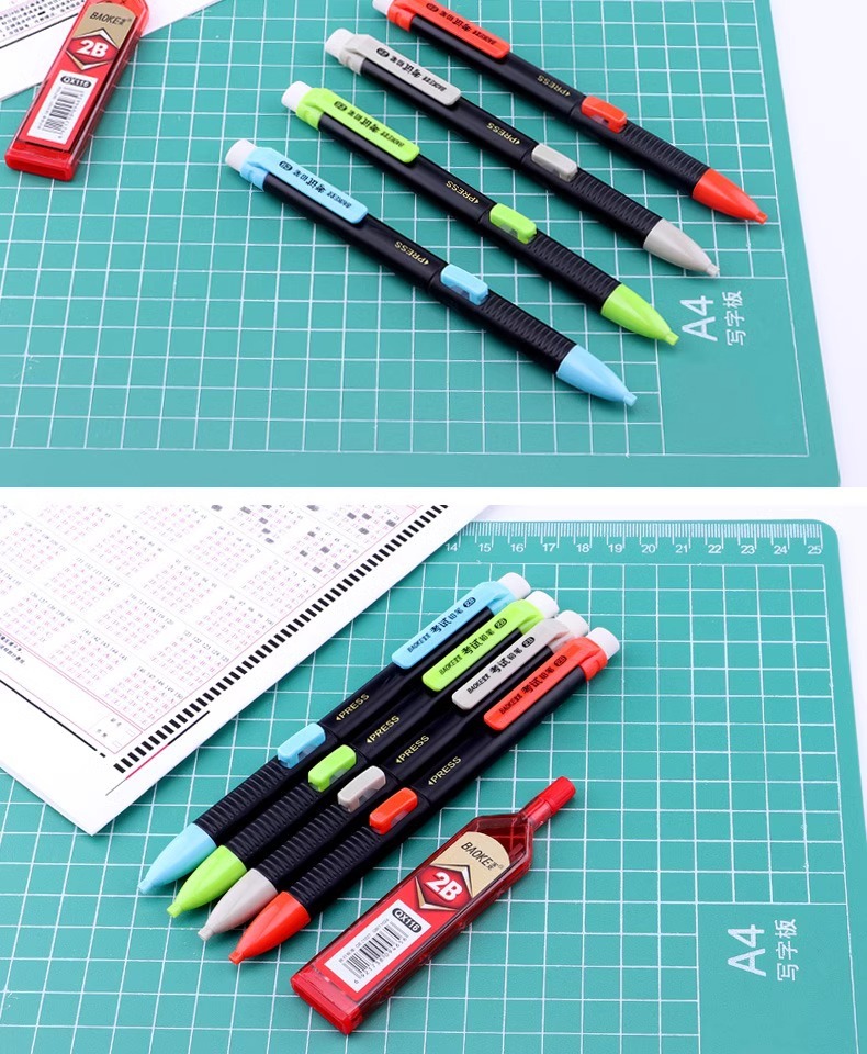 바오커 ZD109 시험용 카드채우기 펜 2B 시험용 연필 지우개 포함 고급스러운 자동 연필심스토어 가기