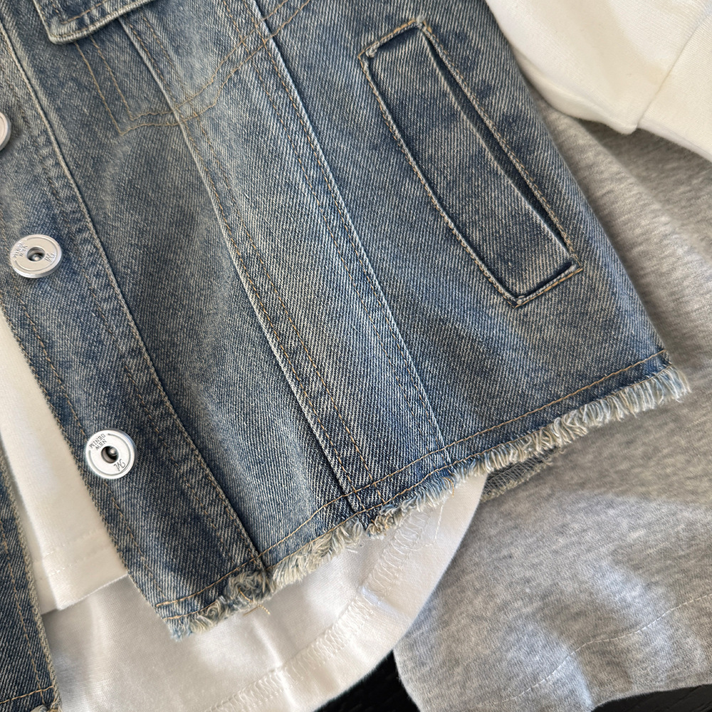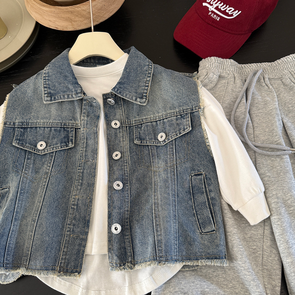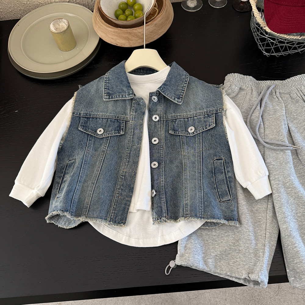 남학생 데님 조끼 2025 년 봄 · 가을 신형 한국식 어린이 패셔너블 웨이스트코트 잘 생긴 조끼 트렌디스토어 가기