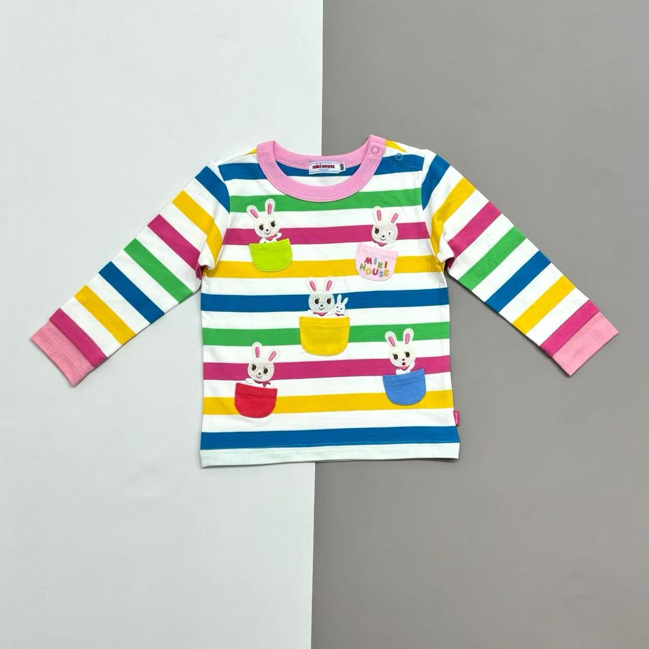 [재고] 오뜨 꾸뛰르 MIKI 아동복 25 여름 패션 브랜드 줄무늬 곰과 토끼 무늬 순면 아동 T 긴팔