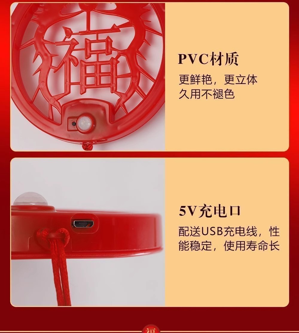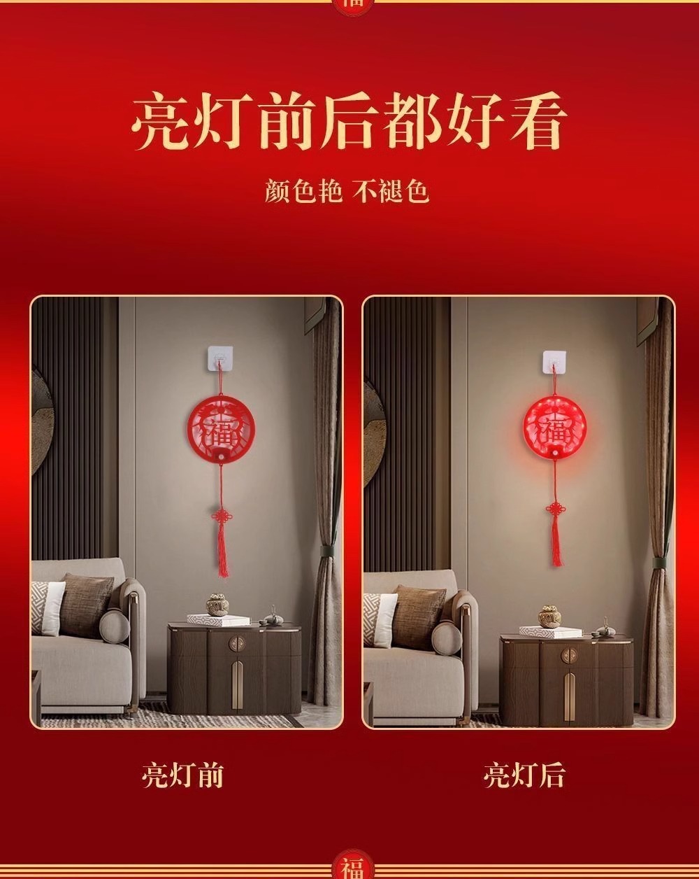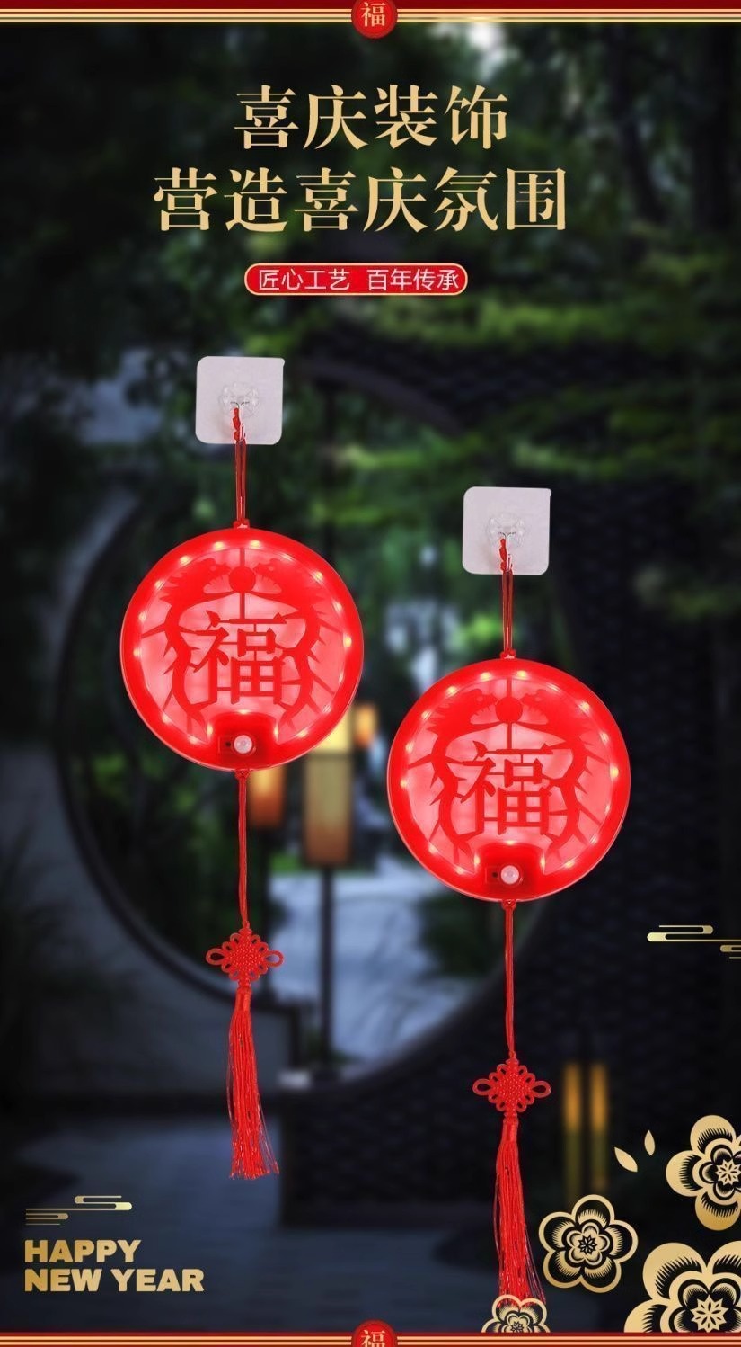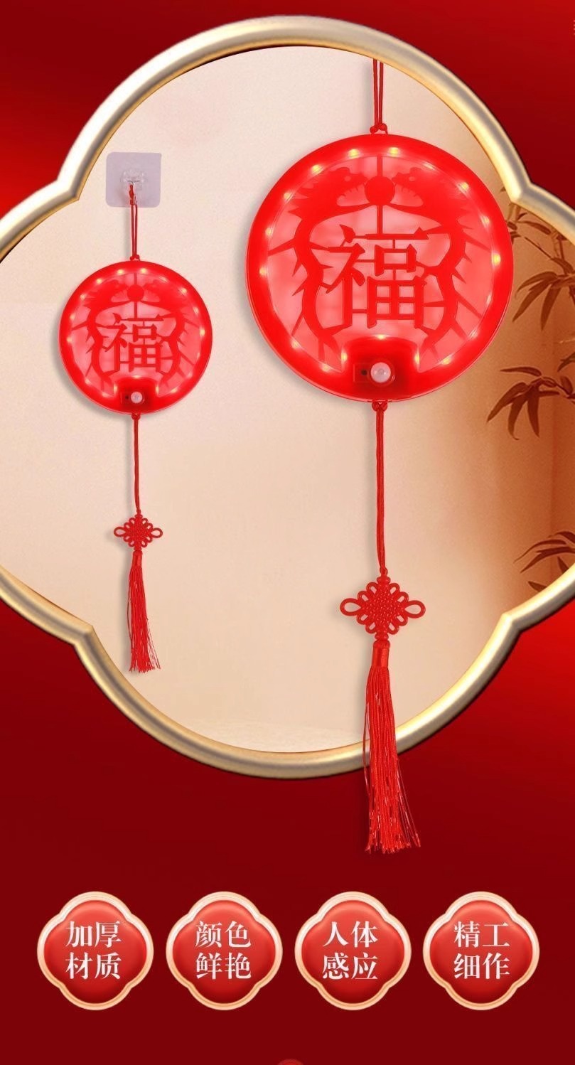 새로운 후쿠시 빛 지능형 유도 새해 장식 밝은 밤 분위기 빛 창 빛나는 펜던트 휴일 장식