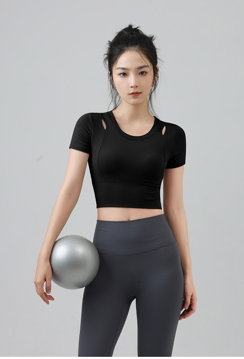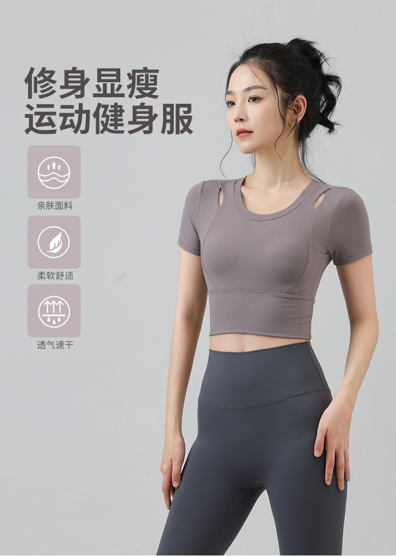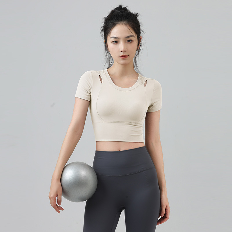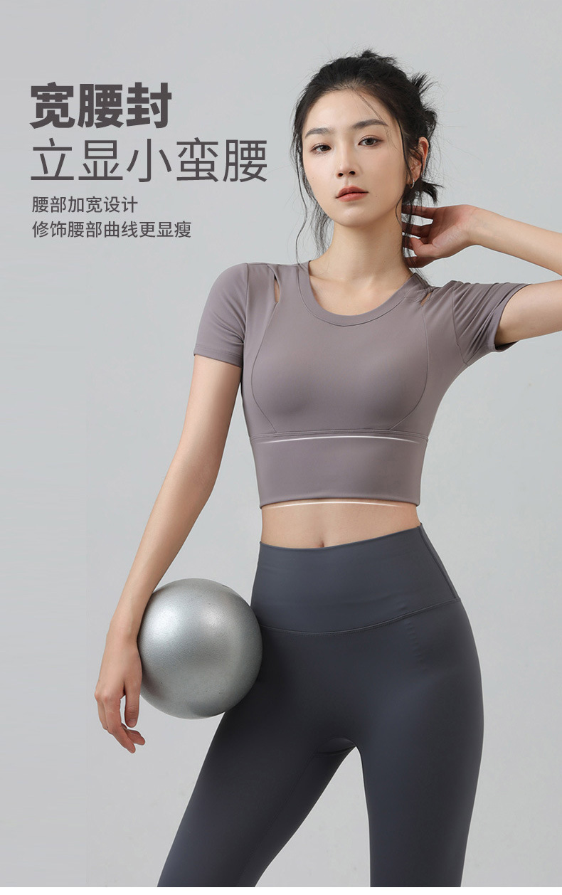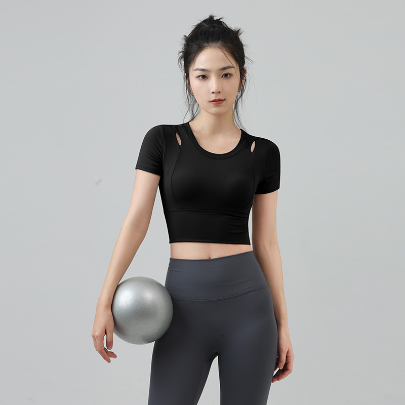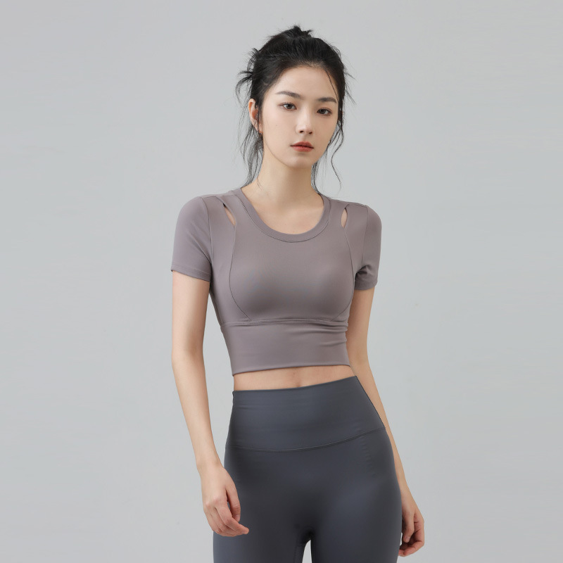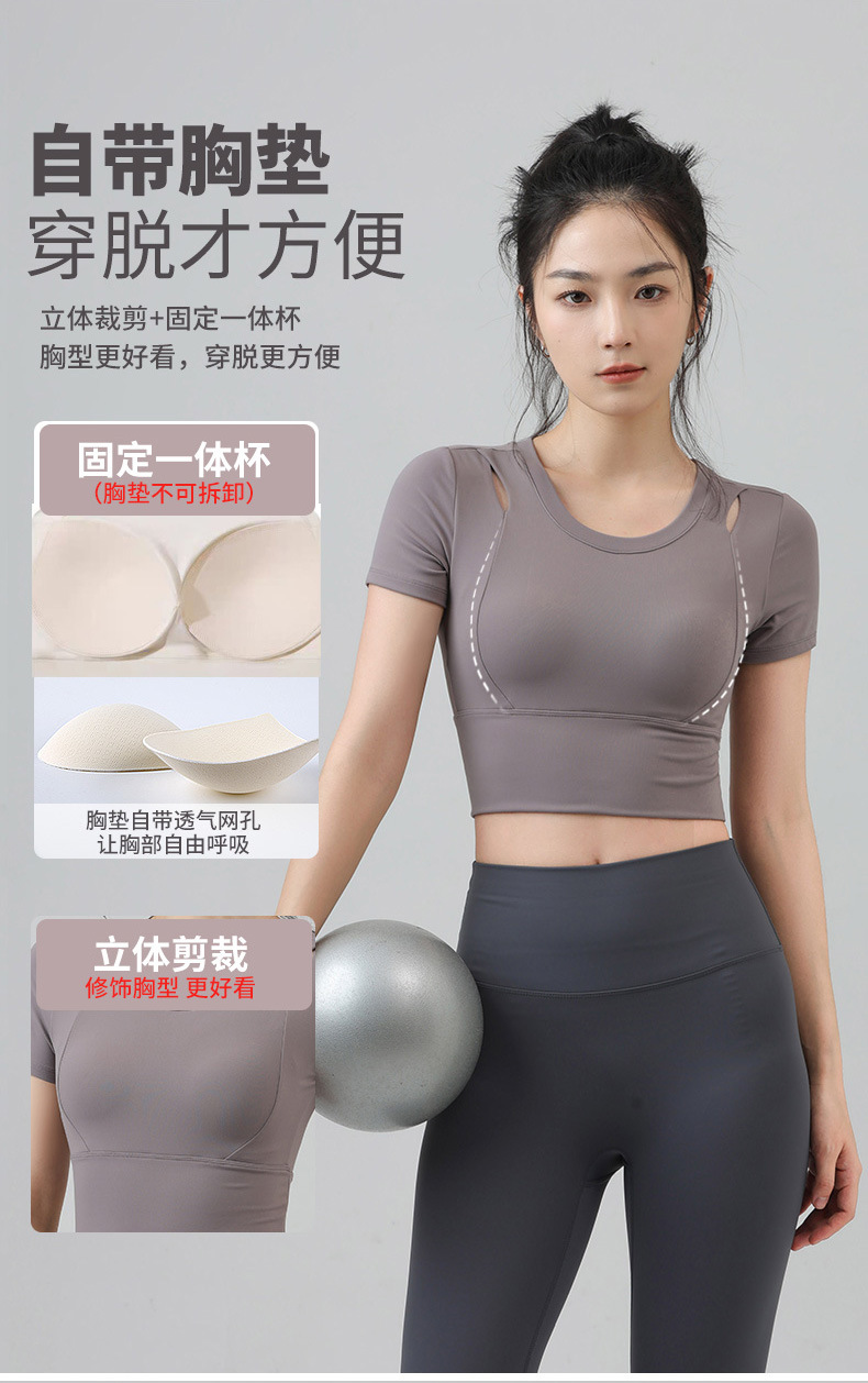 새로운 요가 의류 반팔 티셔츠 여성용 가슴 패드 슬림핏 슬리밍 스포츠 여름을위한 반소매 야외 달리기 피트니스 탑