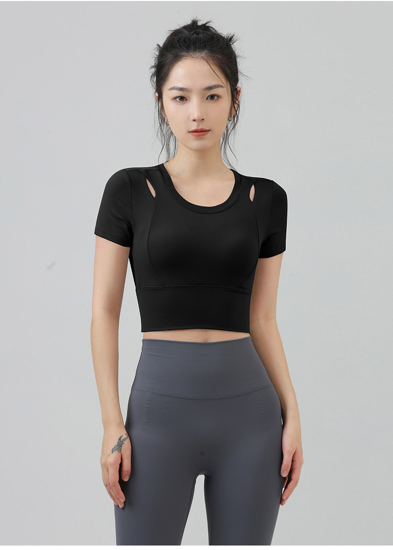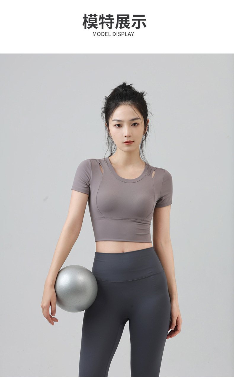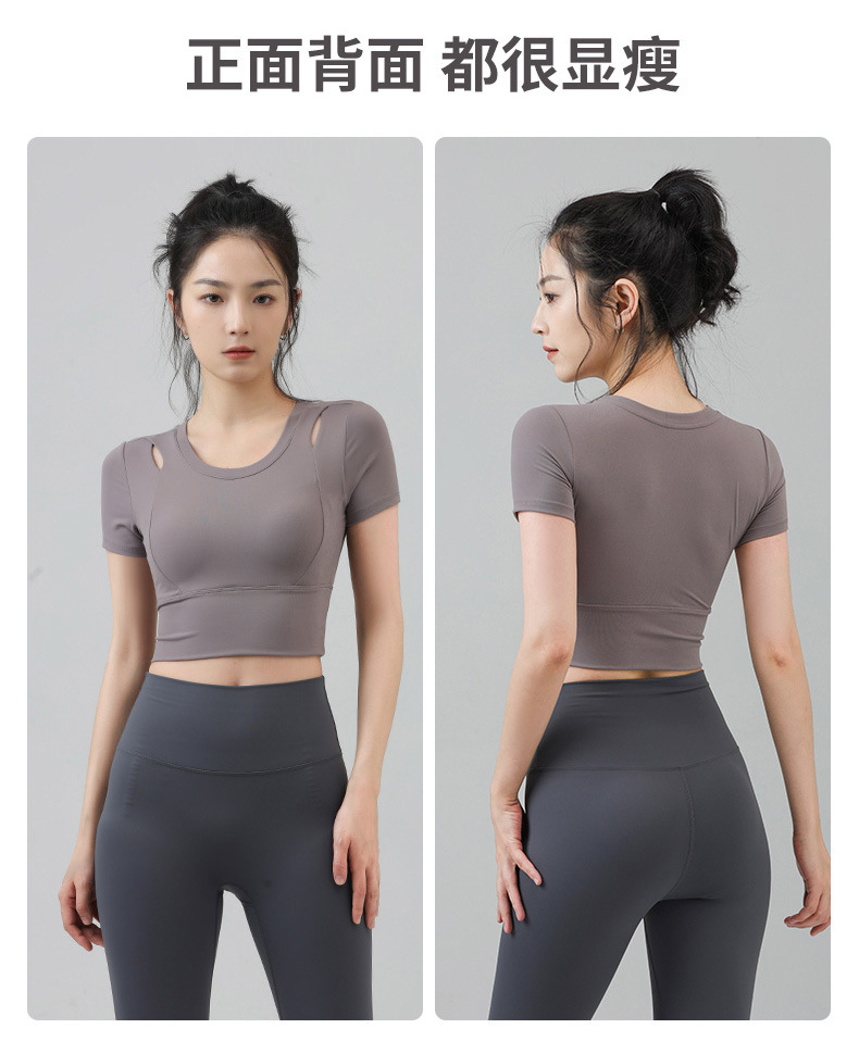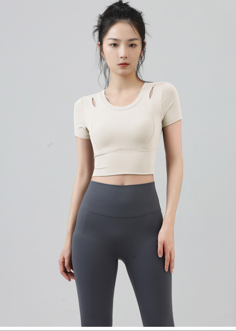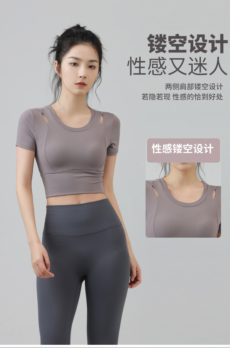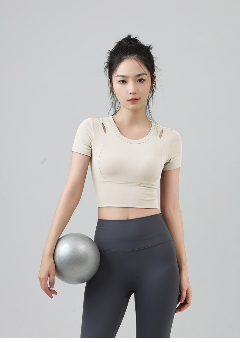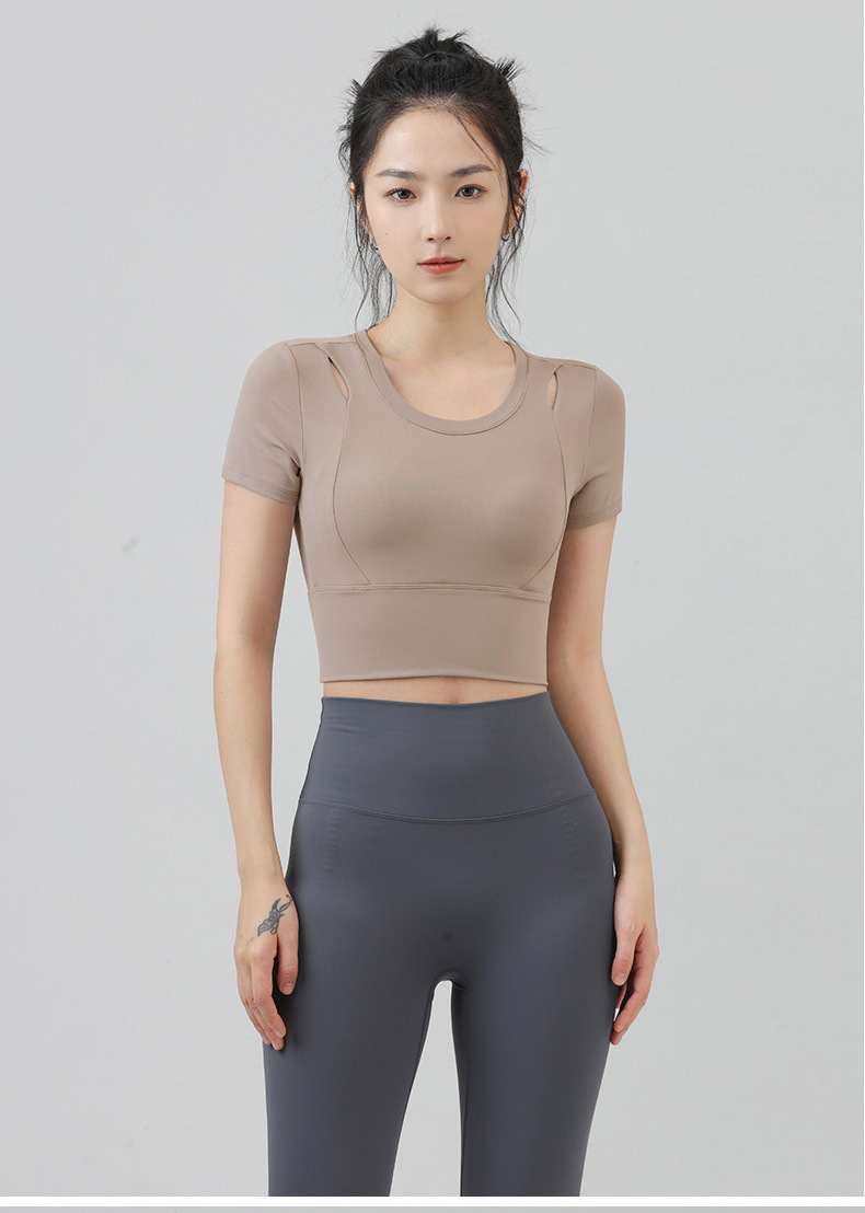 새로운 요가 의류 반팔 티셔츠 여성용 가슴 패드 슬림핏 슬리밍 스포츠 여름을위한 반소매 야외 달리기 피트니스 탑