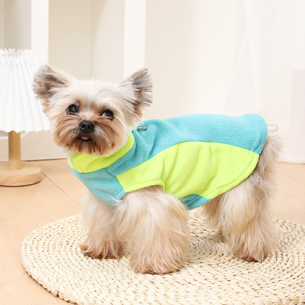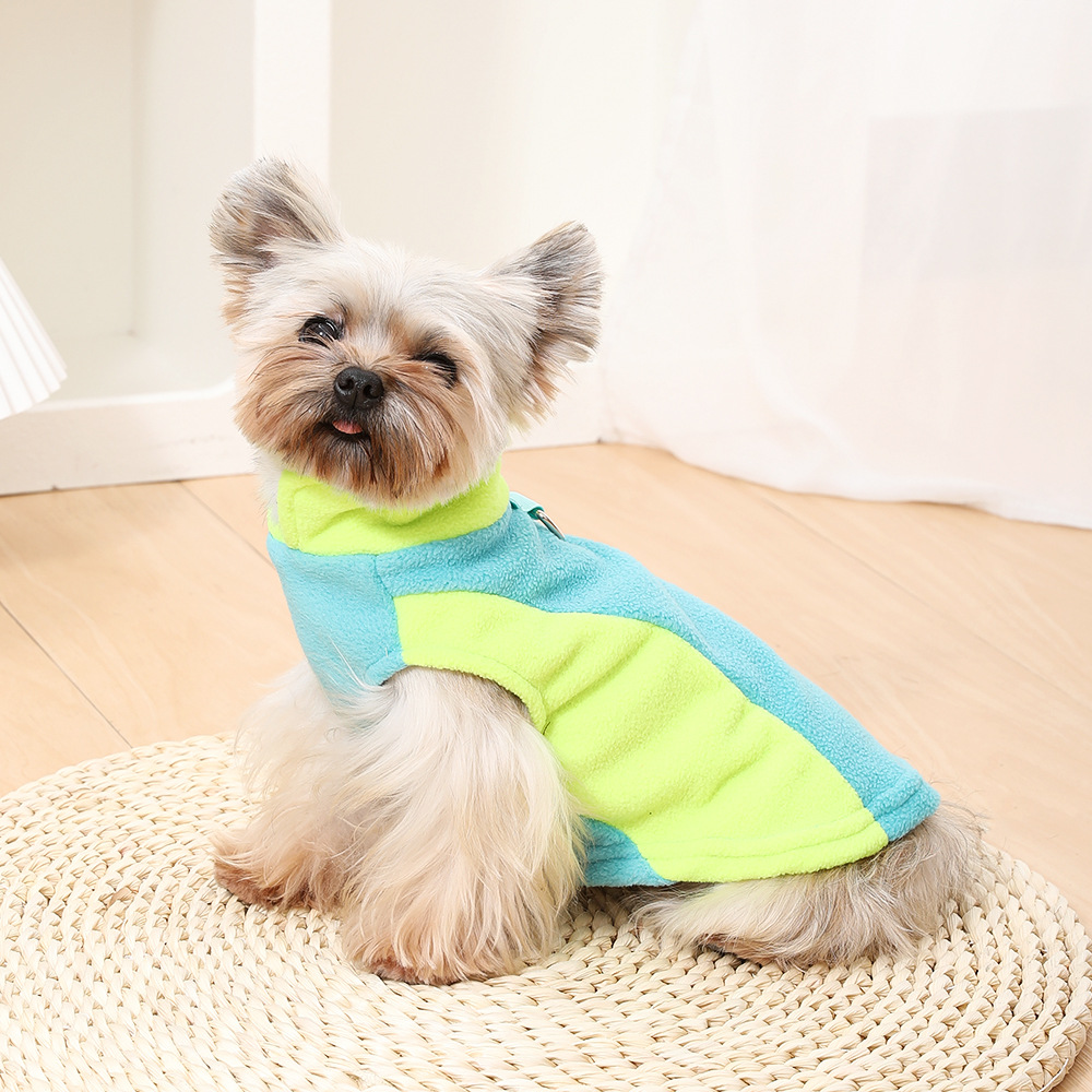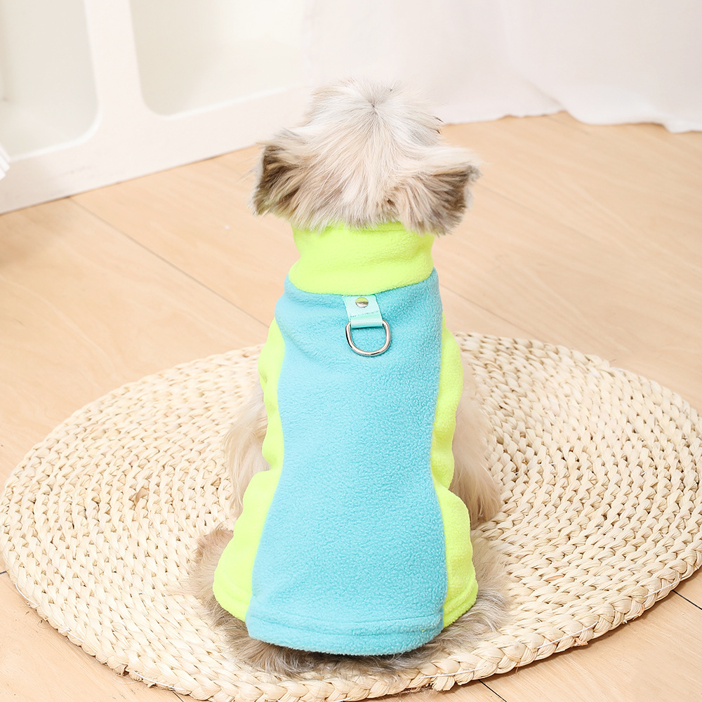 아마존 새로운 애완 동물 옷 봄과 여름 개 옷 양면 양털 고양이 의류 견인 따뜻한 조끼스토어 가기