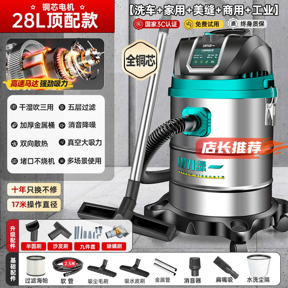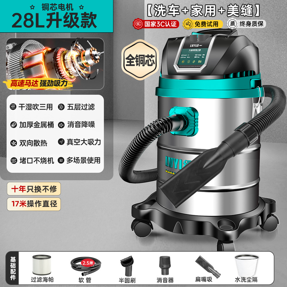 • 2200W-28L [고전력-99000Pa] 두꺼운 스테인레스 스틸 버킷 + 가정용 + 세차 + 산업용