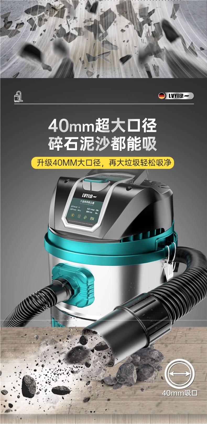 • 2990W-40L [공냉식 모터-99600Pa Pa] 두꺼운 강철 드럼 + 3개의 필터 요소 + 금속 막대 + 걱정 없는 장식 모델