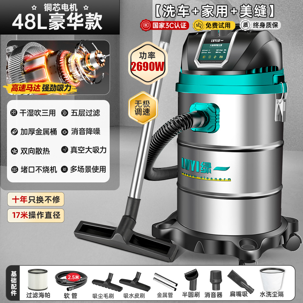 • 3290W-50L [공냉식 모터-99900Pa Pa Pa] 두꺼운 강철 드럼 + 3개의 필터 요소 + 가정용 + 세차 + 산업용