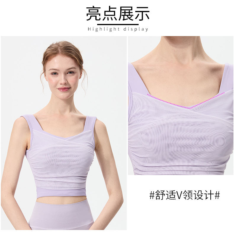 봄과 여름 새로운 요가 조끼 여성의 고강도 충격 방지 스포츠 브라 메쉬 피트니스 조끼 러닝 원 컵스토어 가기