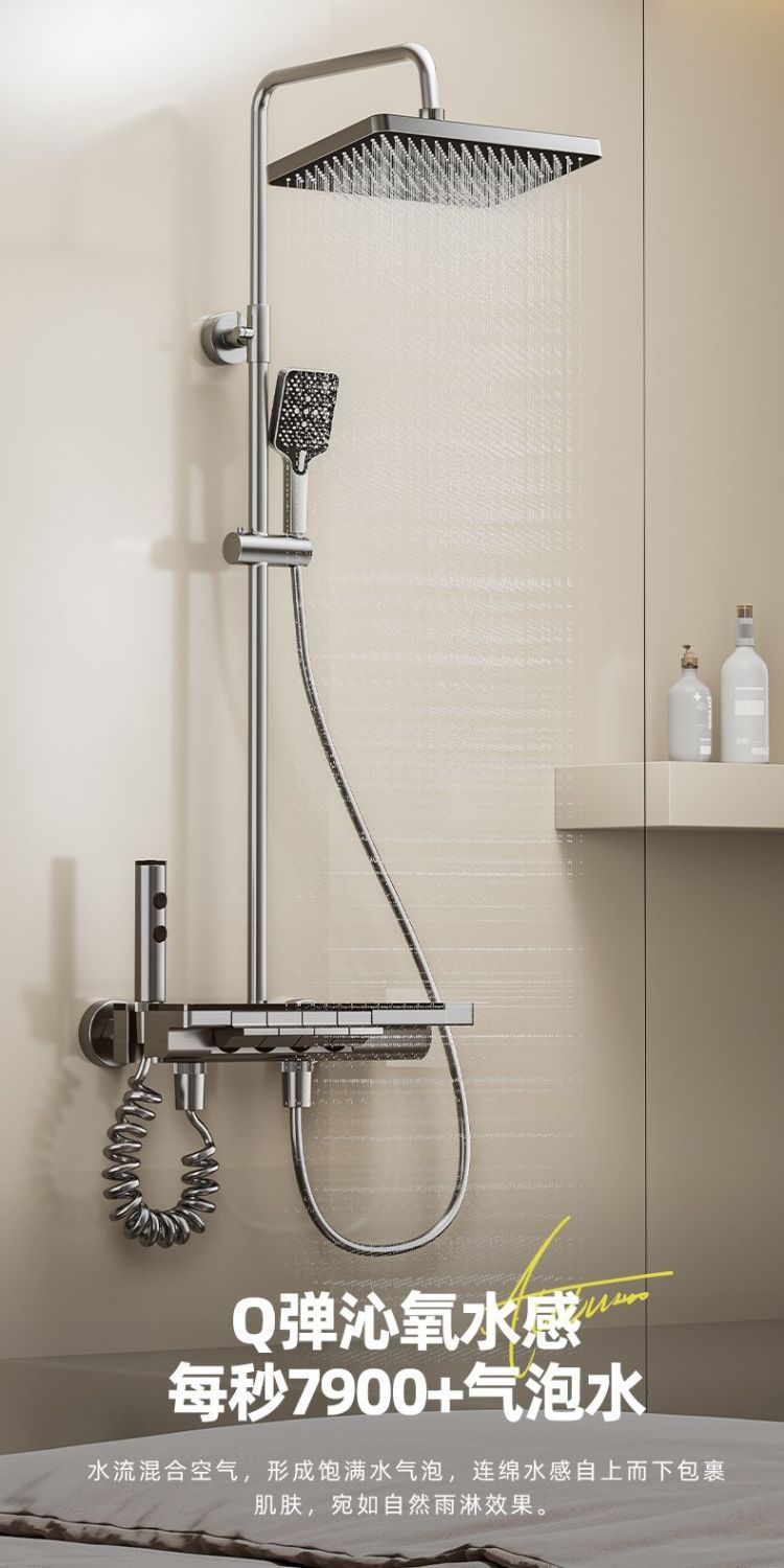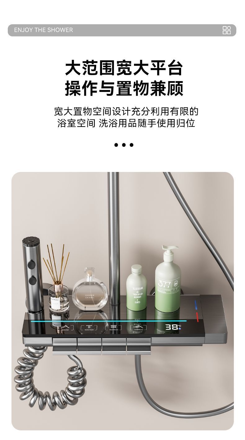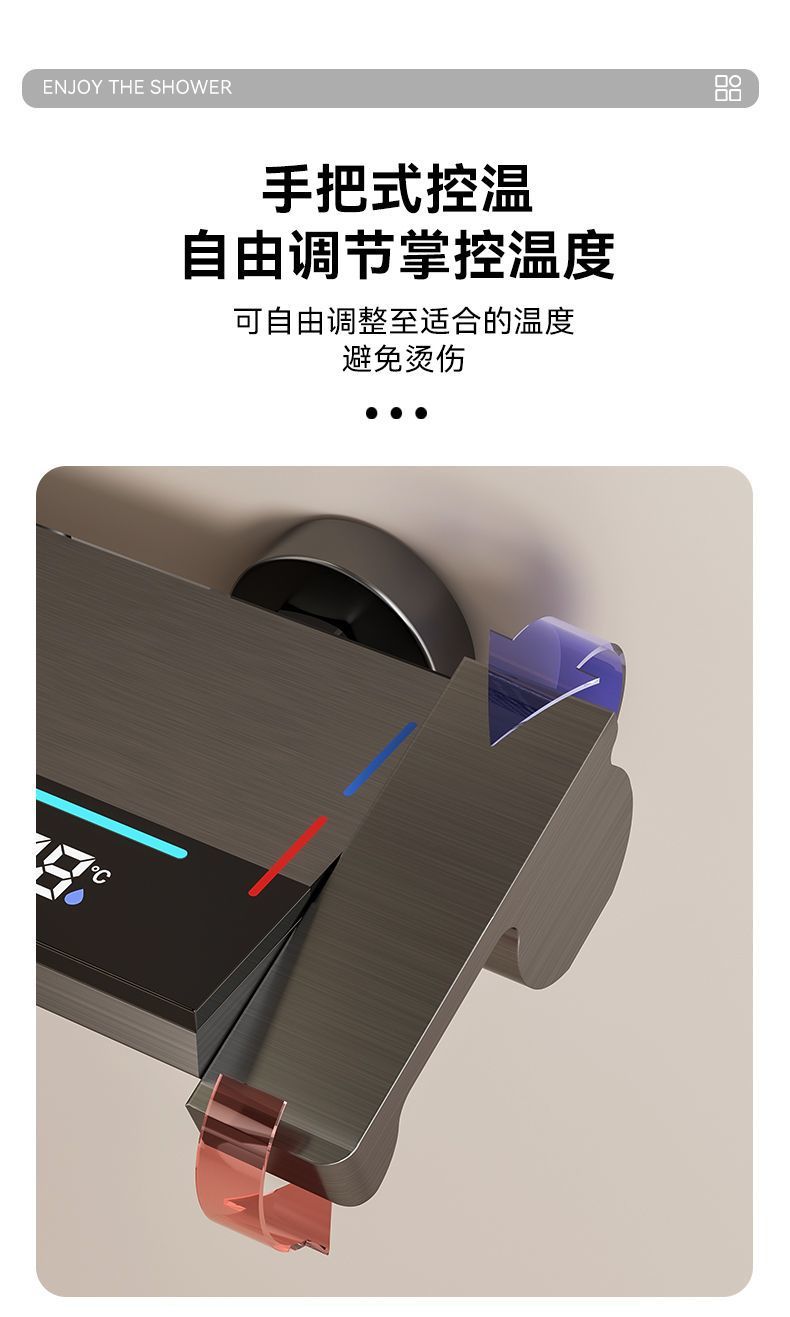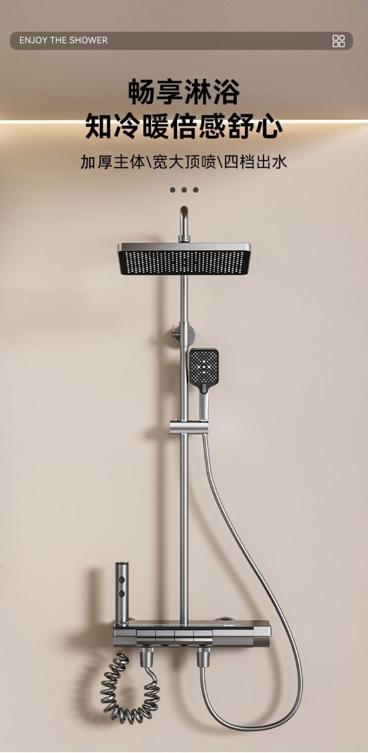 총 회색 샤워 세트 가정용 디지털 디스플레이 가압 목욕 욕실 4 기어 샤워 분위기 빛 피아노 프레스