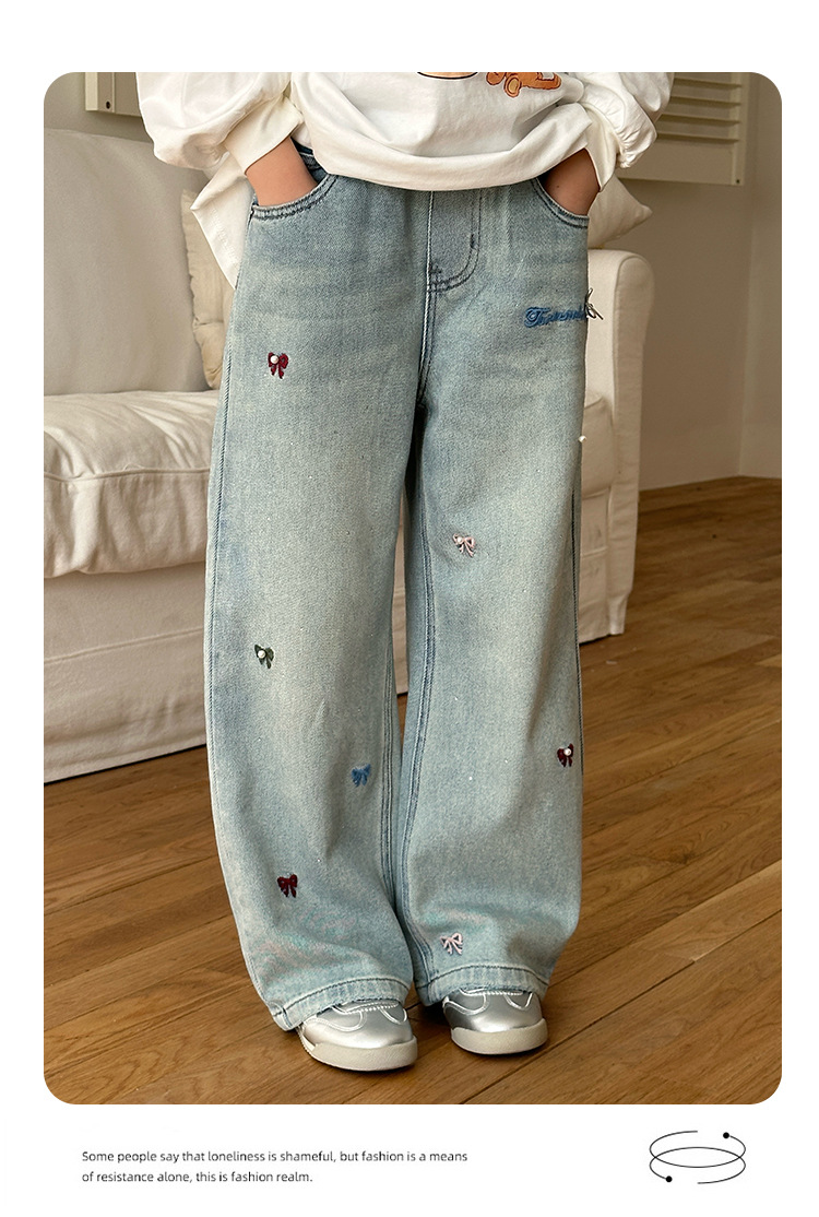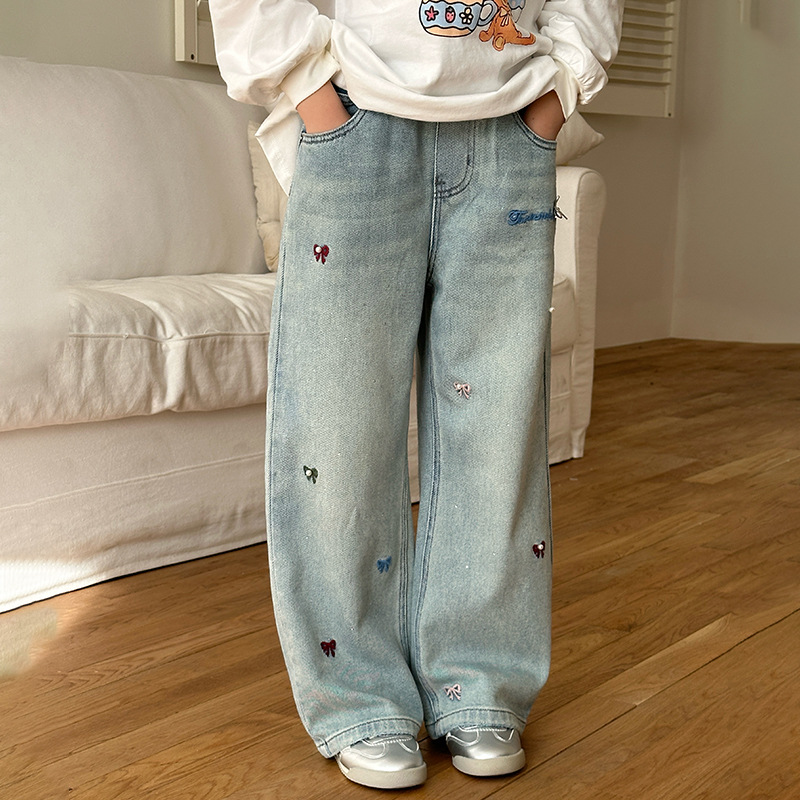 소녀 봄과 가을 2025 새로운 스타일 유행 세트 큰 소년 한국 만화 인쇄 티셔츠 청바지 세트