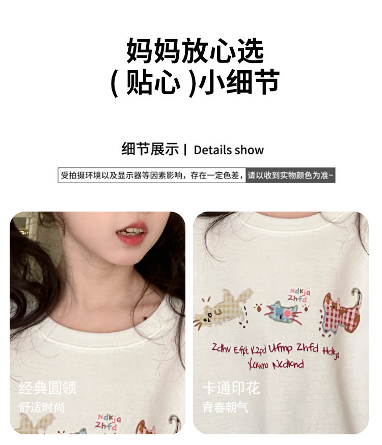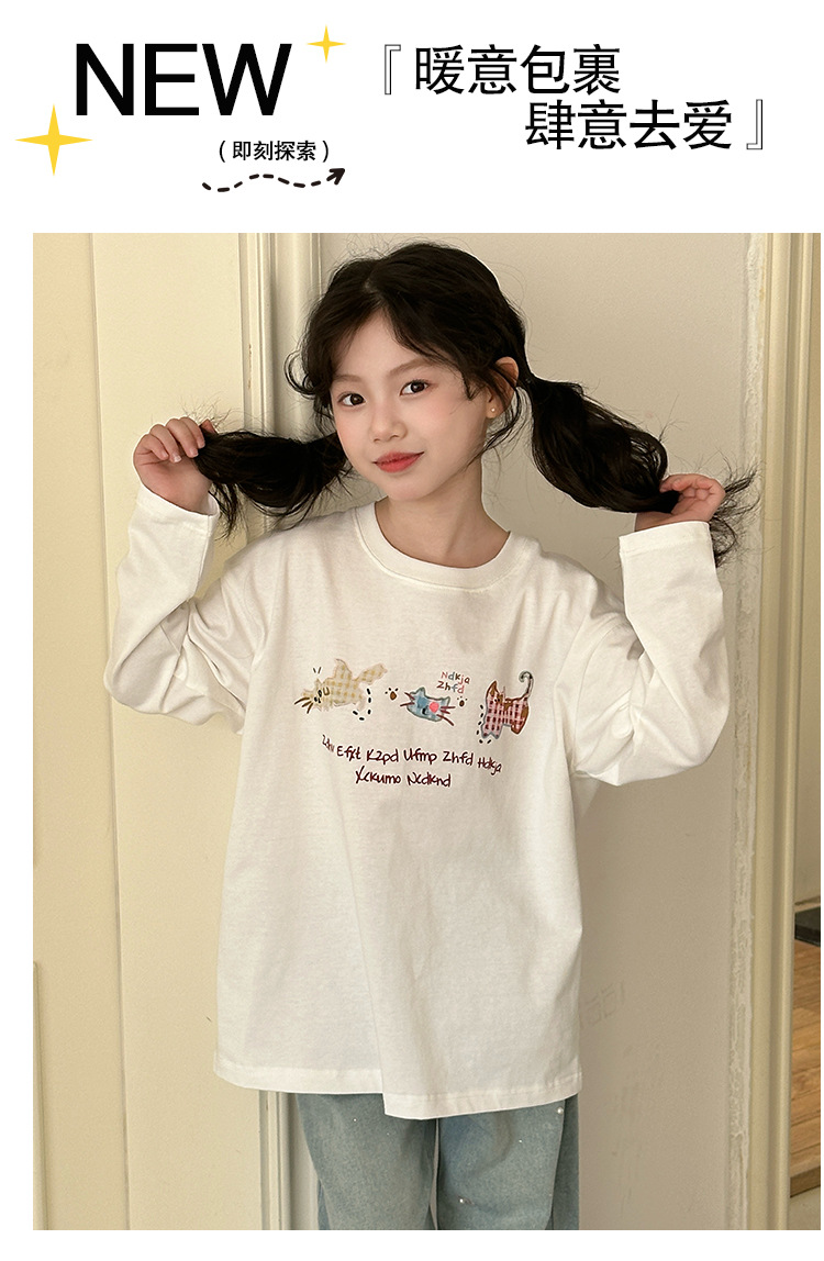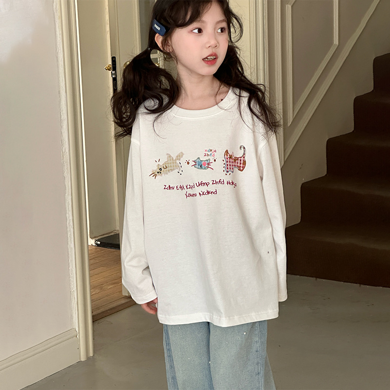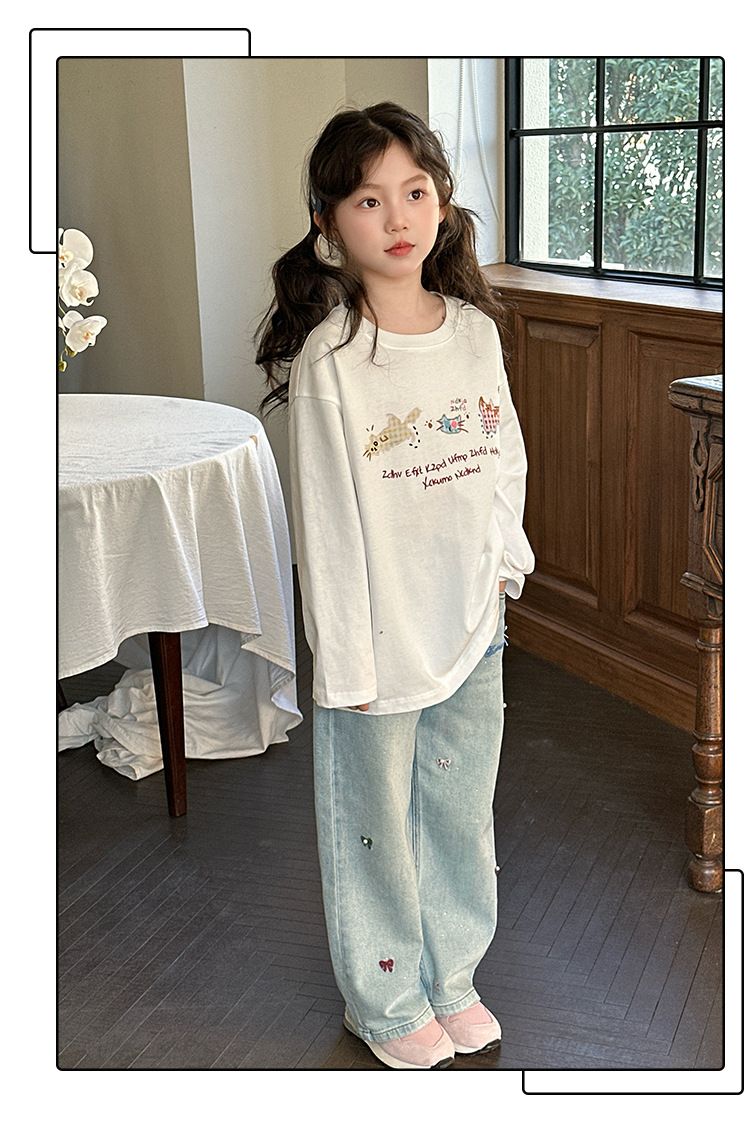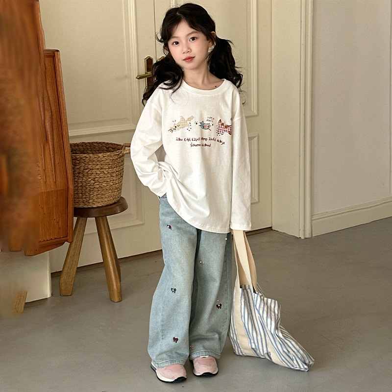 소녀 봄과 가을 2025 새로운 스타일 유행 세트 큰 소년 한국 만화 인쇄 티셔츠 청바지 세트스토어 가기