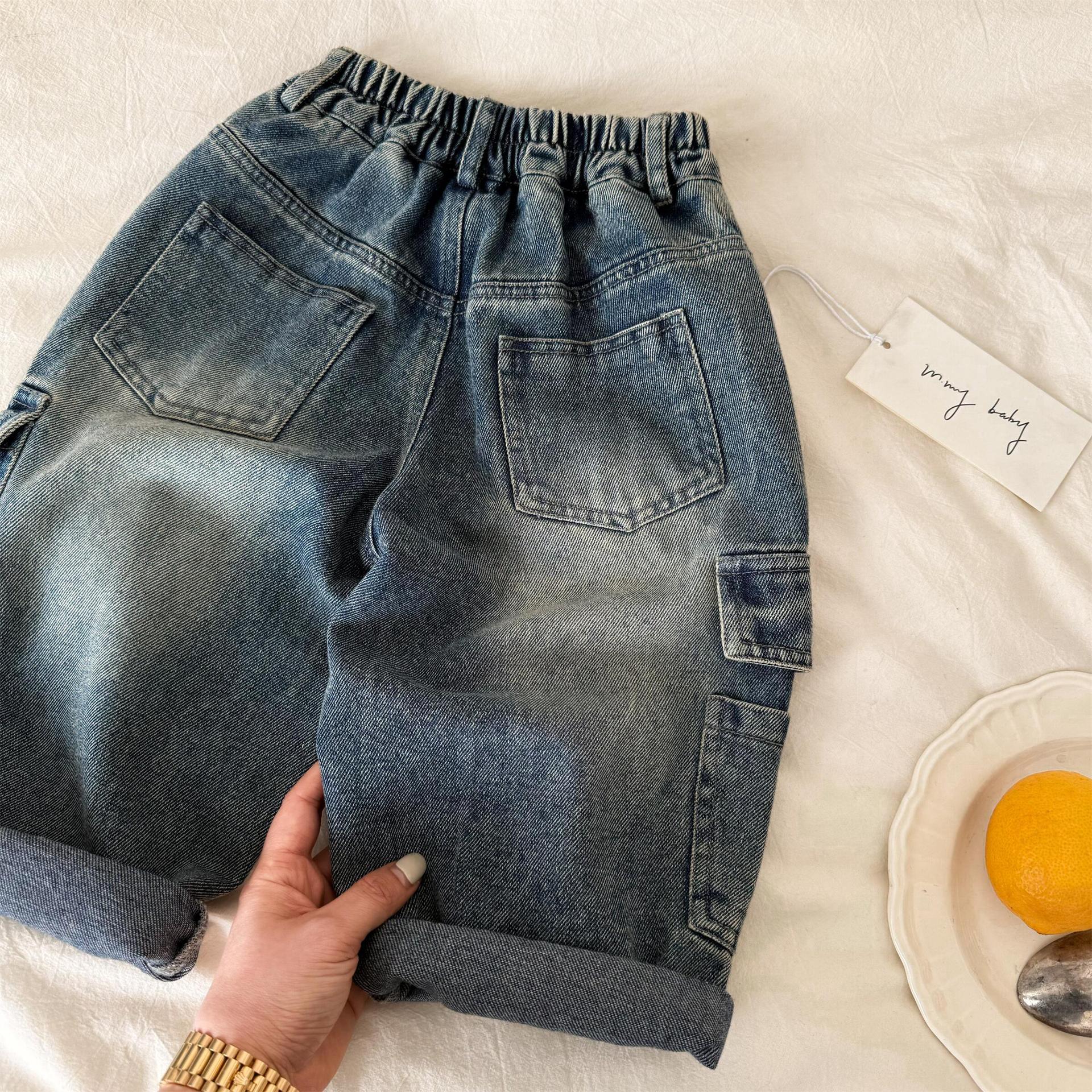 2025년 봄 가을 아동용 무지 포켓 데님 팬츠, 남아 여아용 베이비 워크웨어 데님 팬츠 도매스토어 가기
