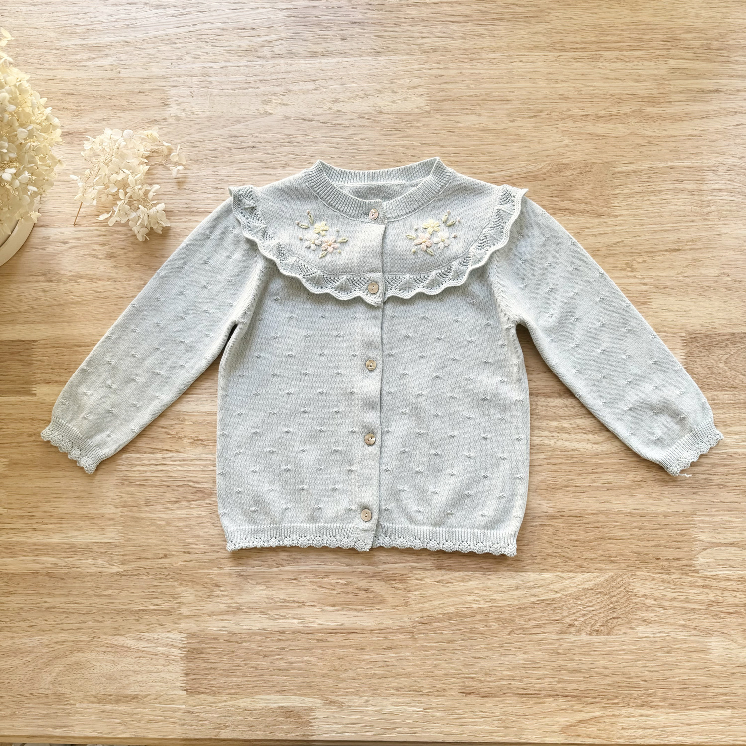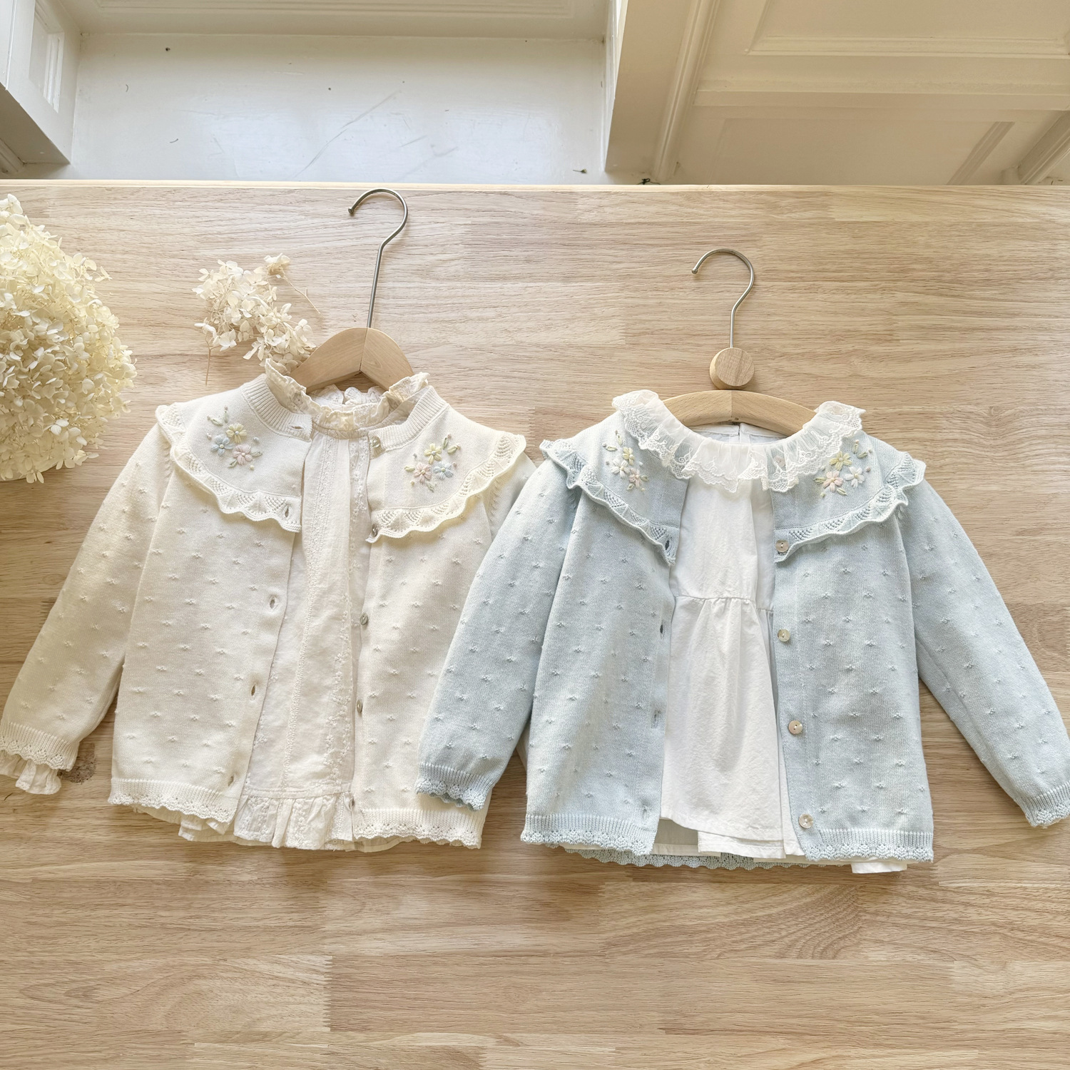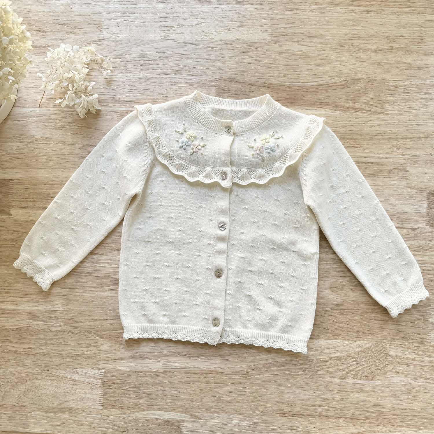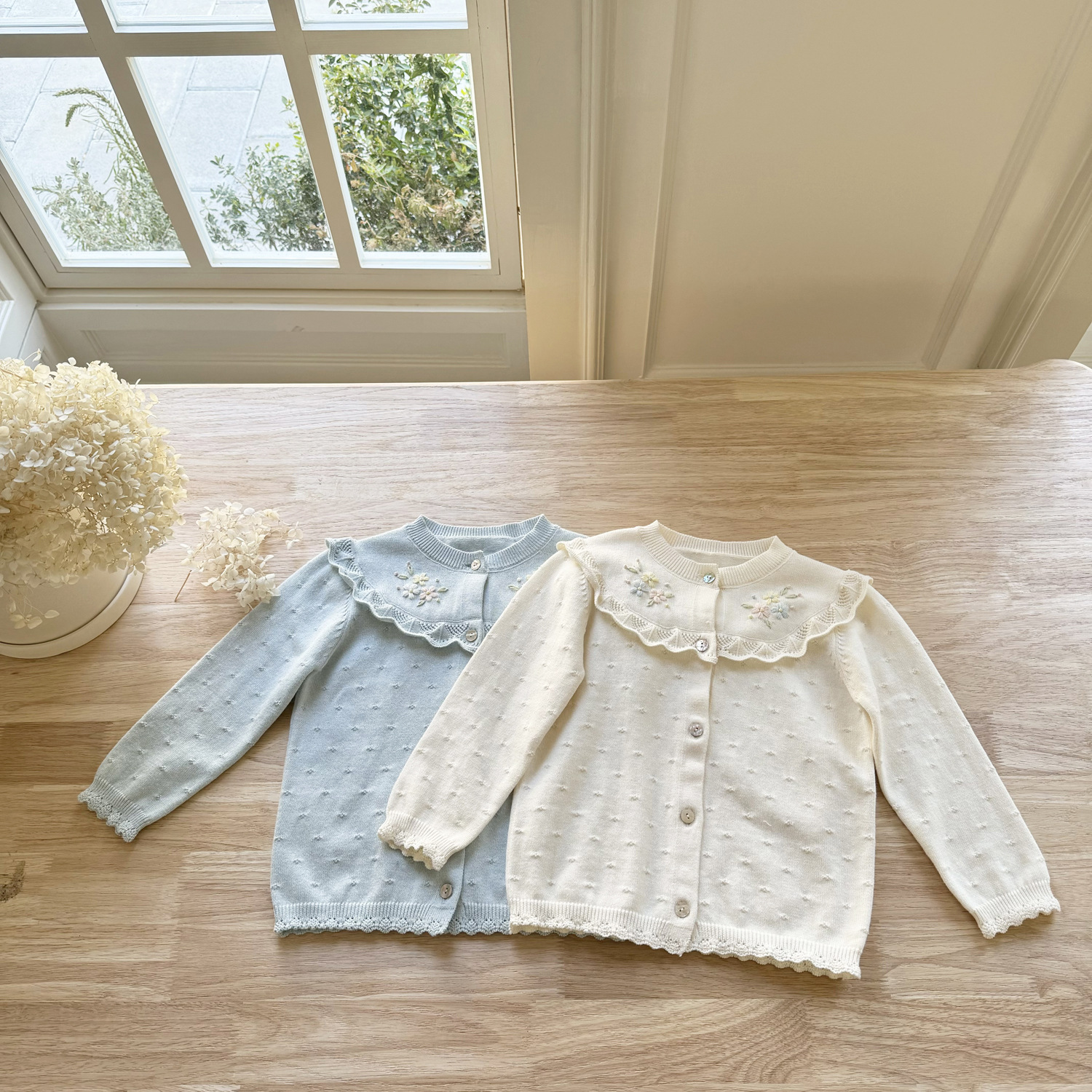 2026 봄 신상품 Ins 여아용 가디건 얇은 니트 가디건 프렌치 레트로 아동용 손자수 가디건