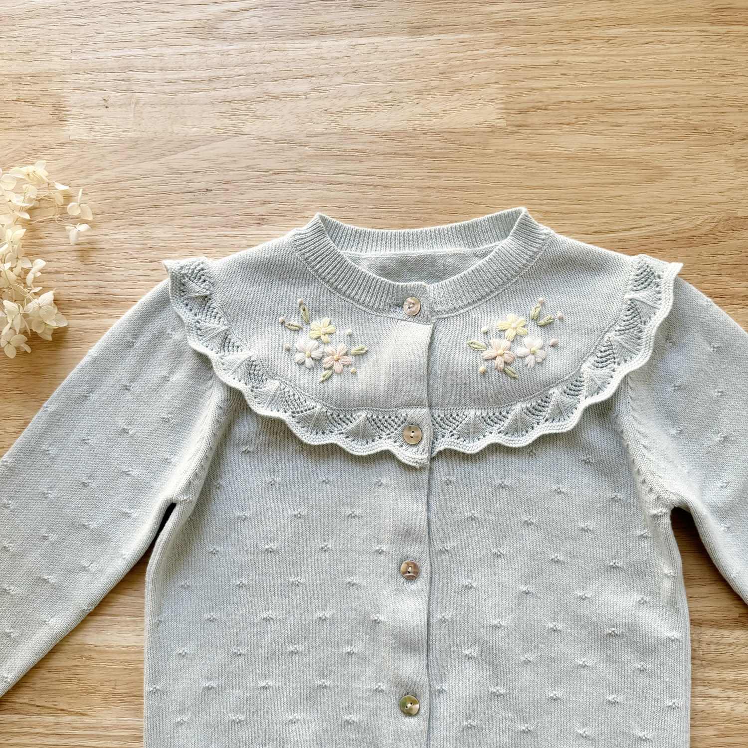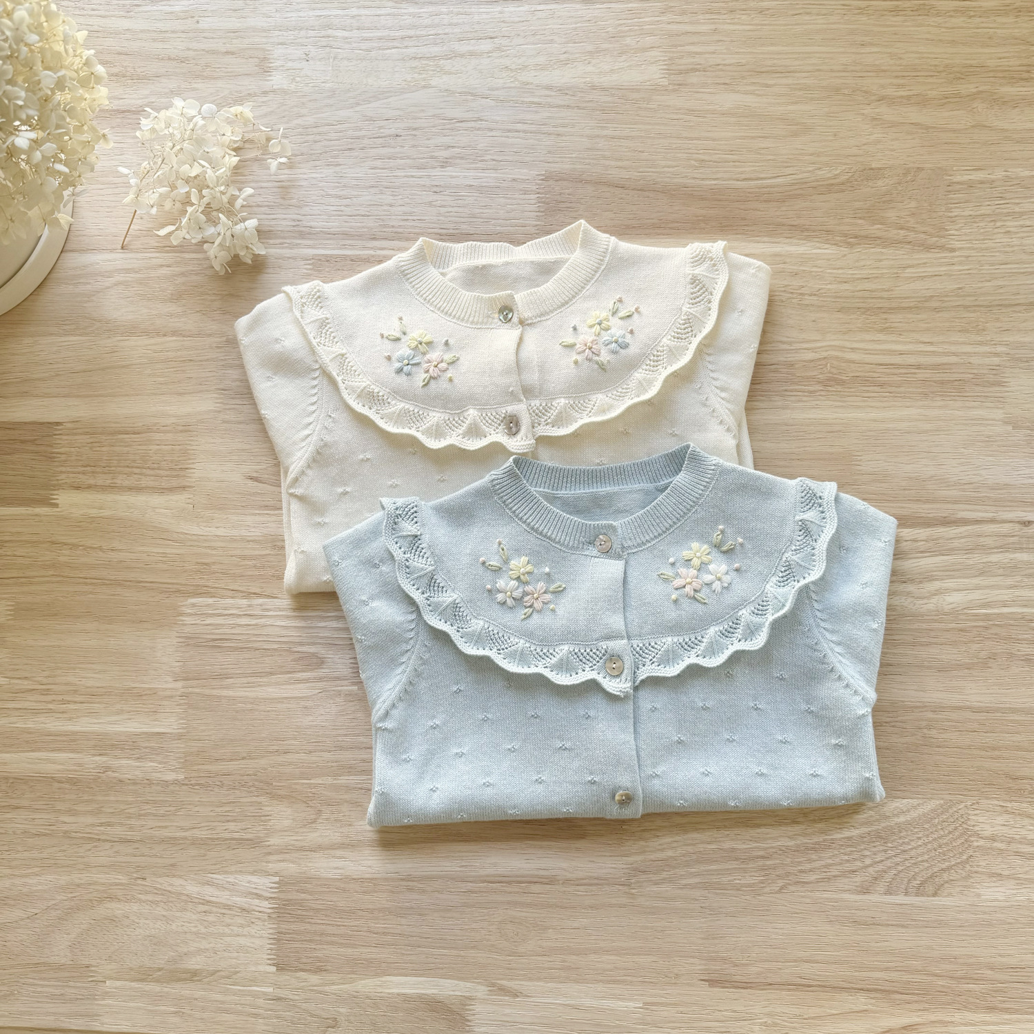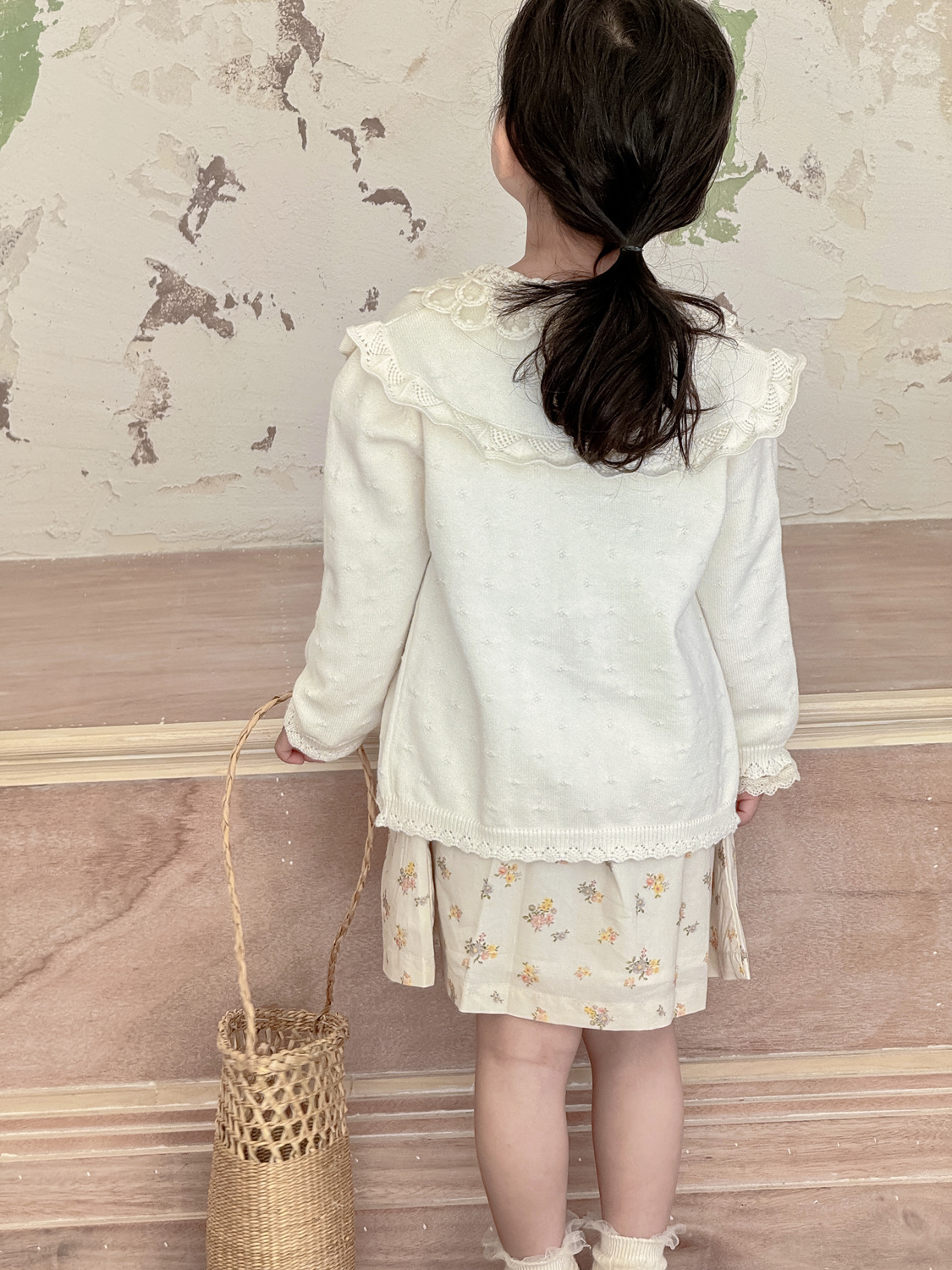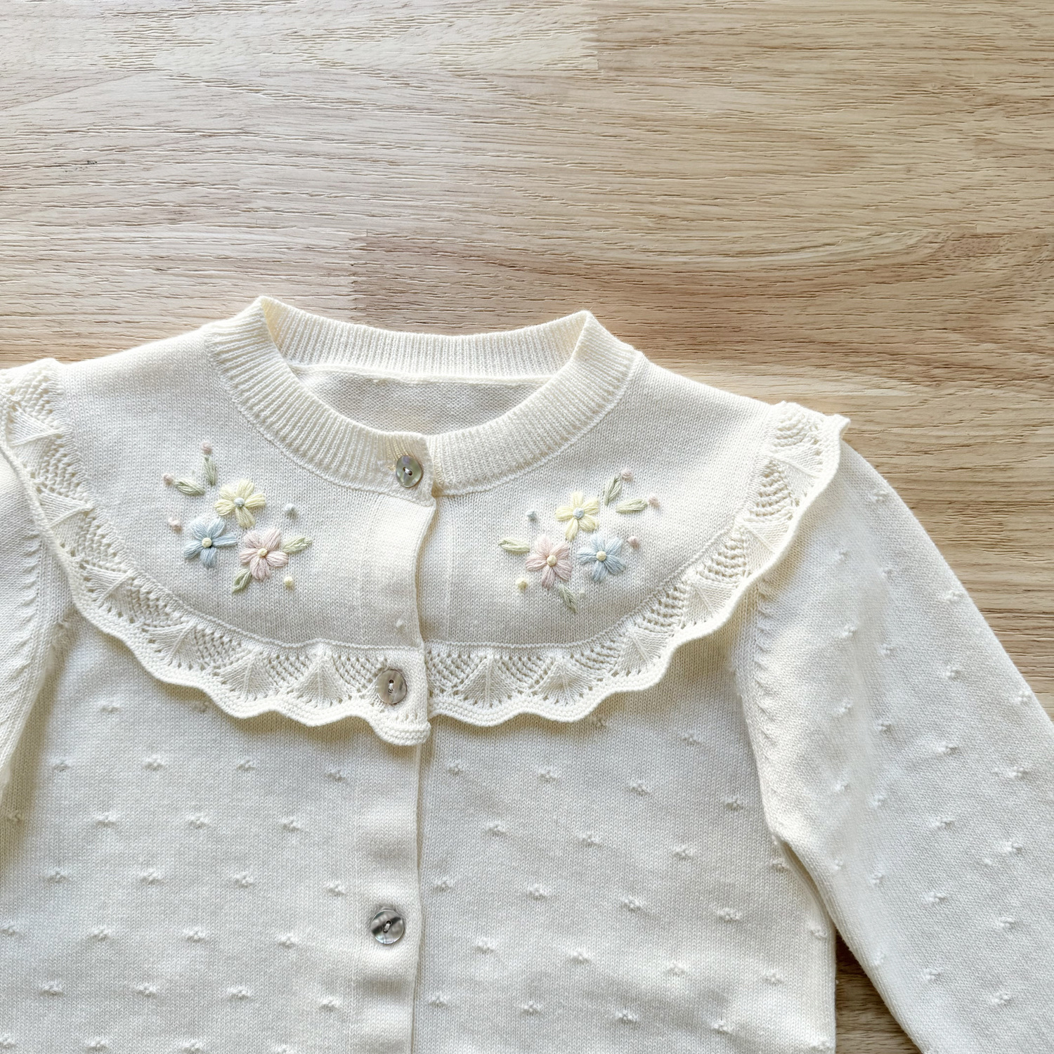 2026 봄 신상품 Ins 여아용 가디건 얇은 니트 가디건 프렌치 레트로 아동용 손자수 가디건