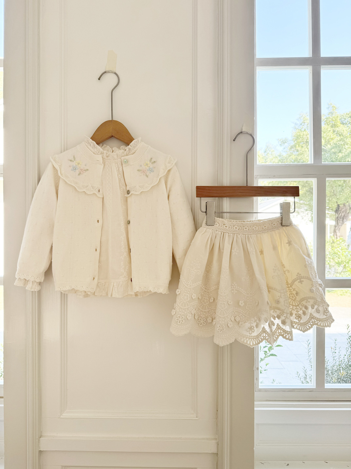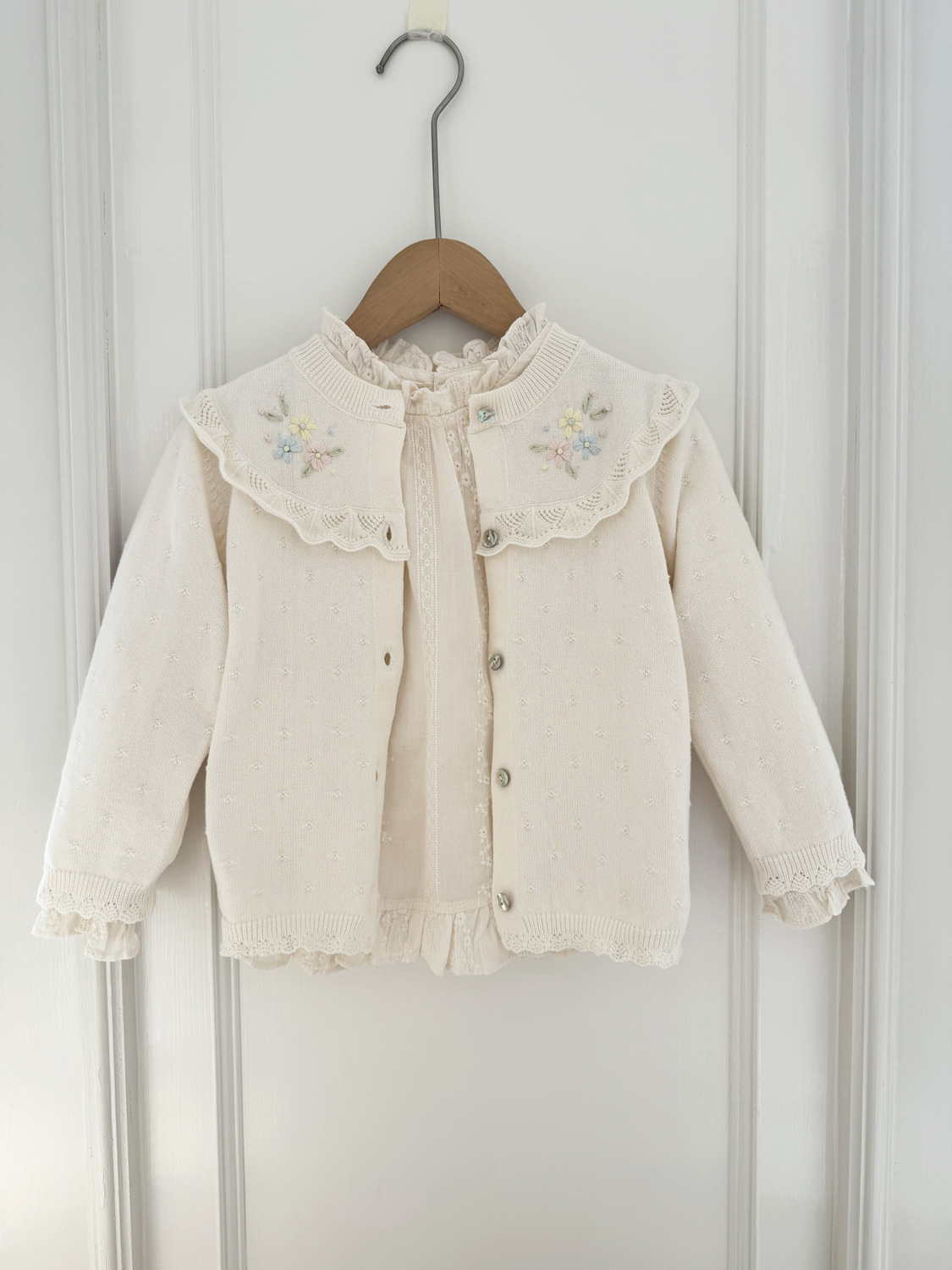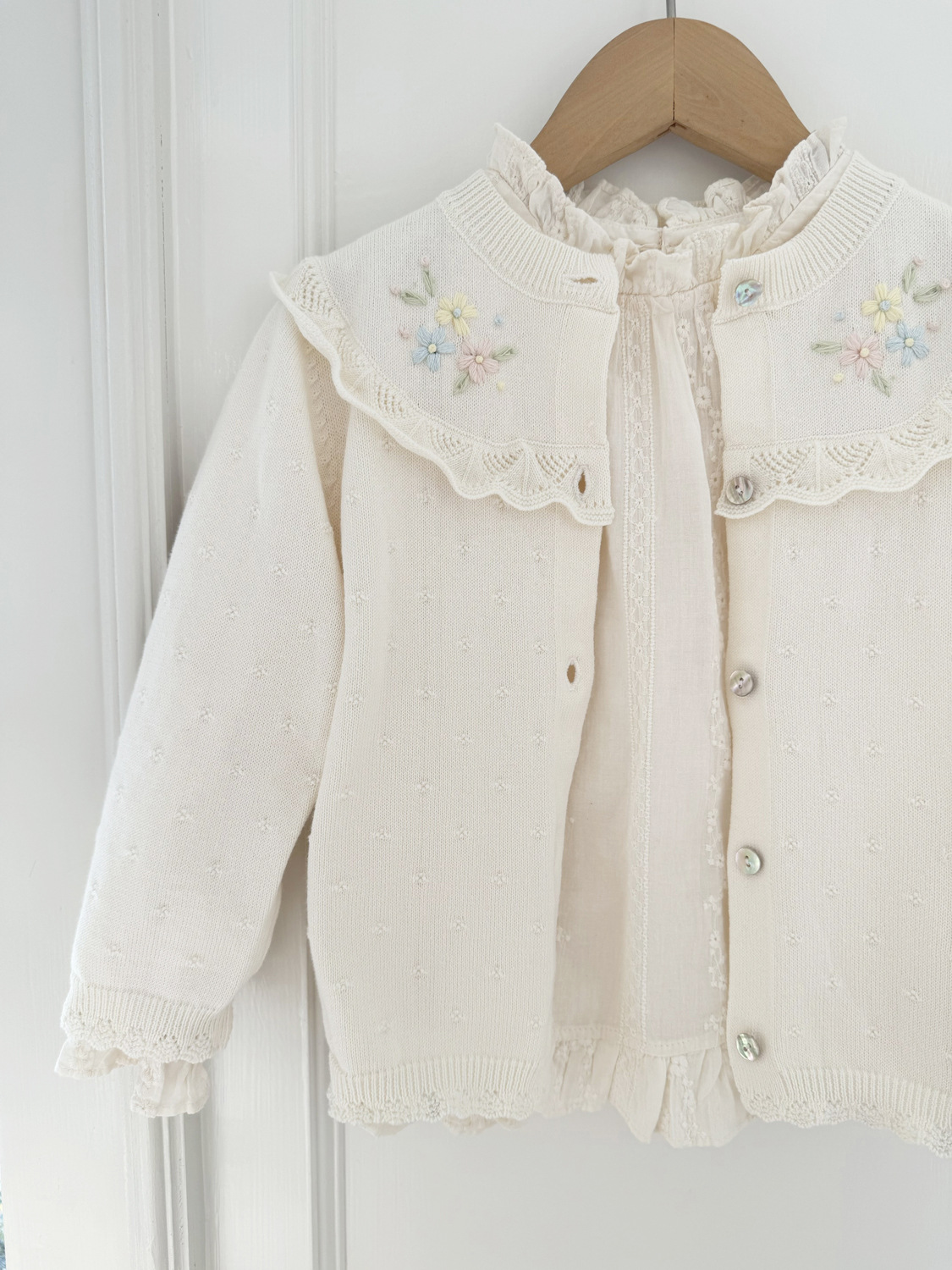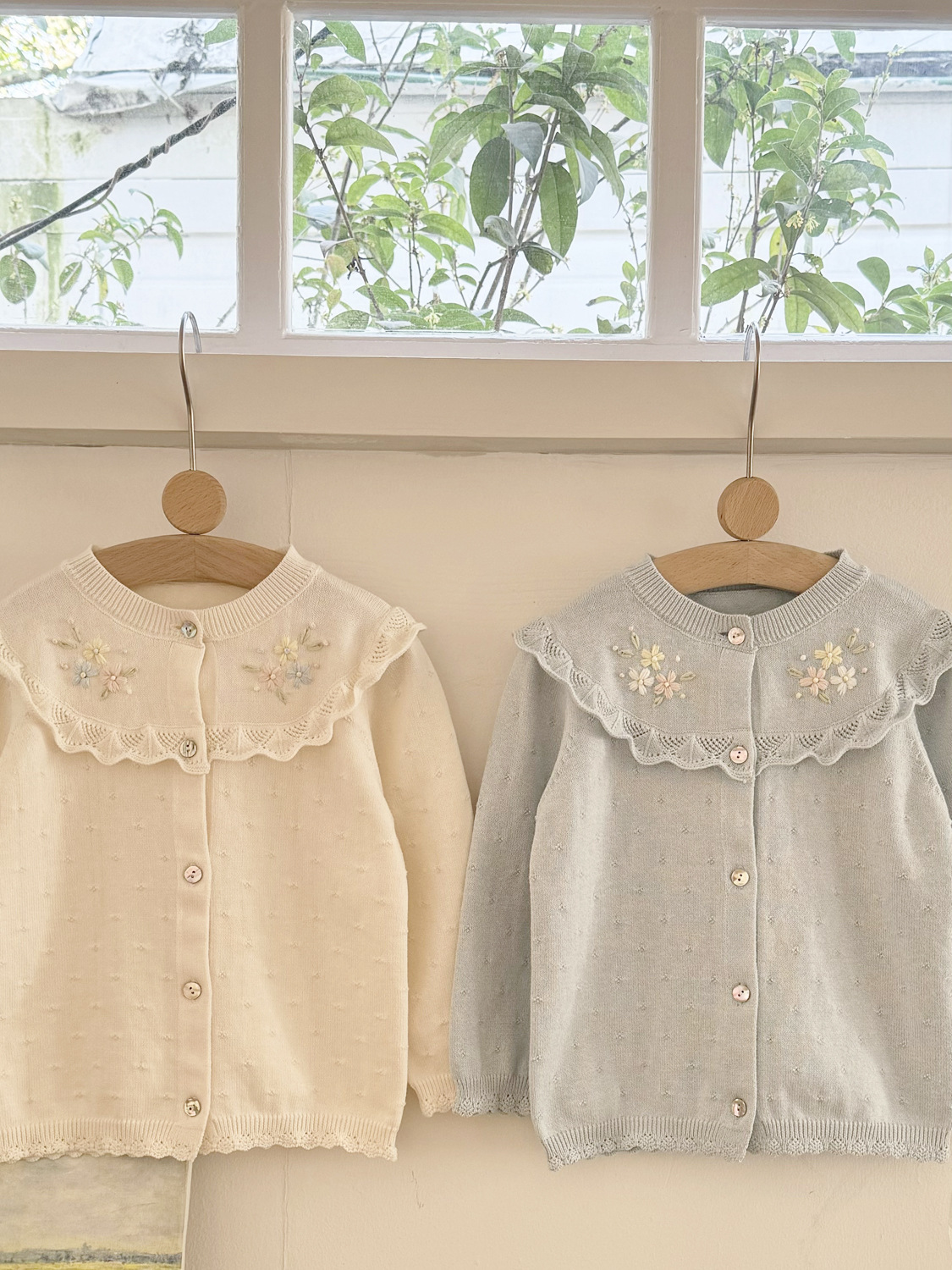 2026 봄 신상품 Ins 여아용 가디건 얇은 니트 가디건 프렌치 레트로 아동용 손자수 가디건