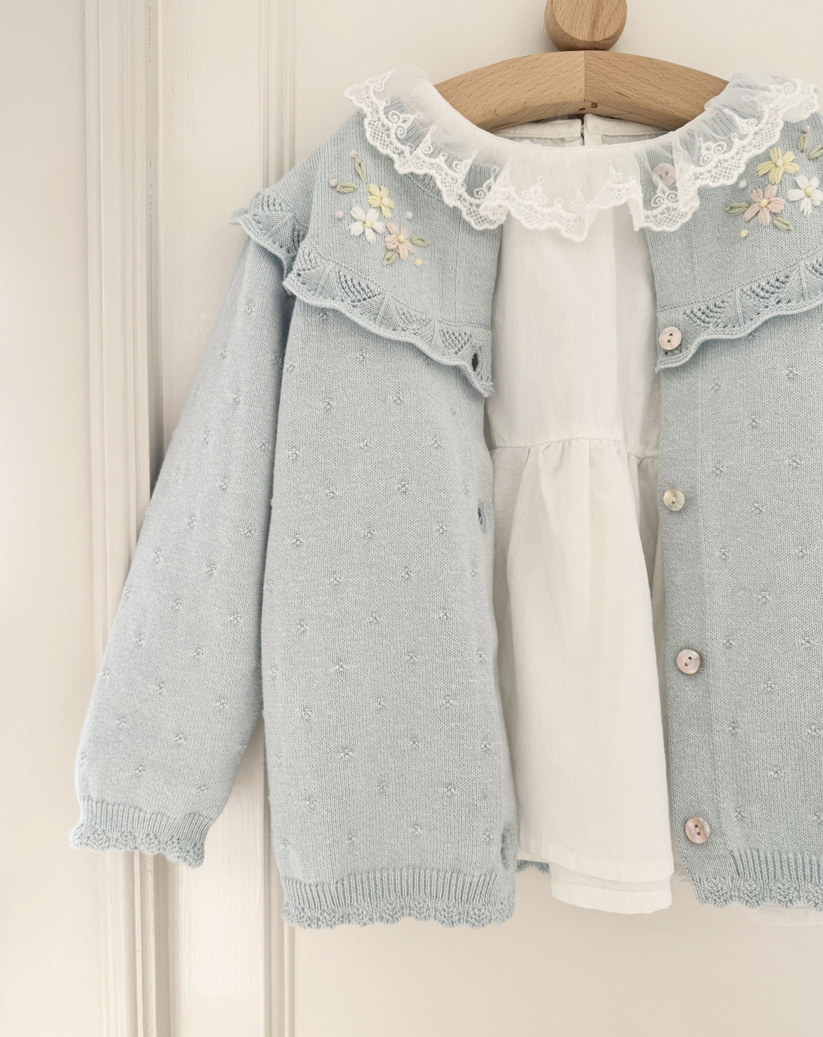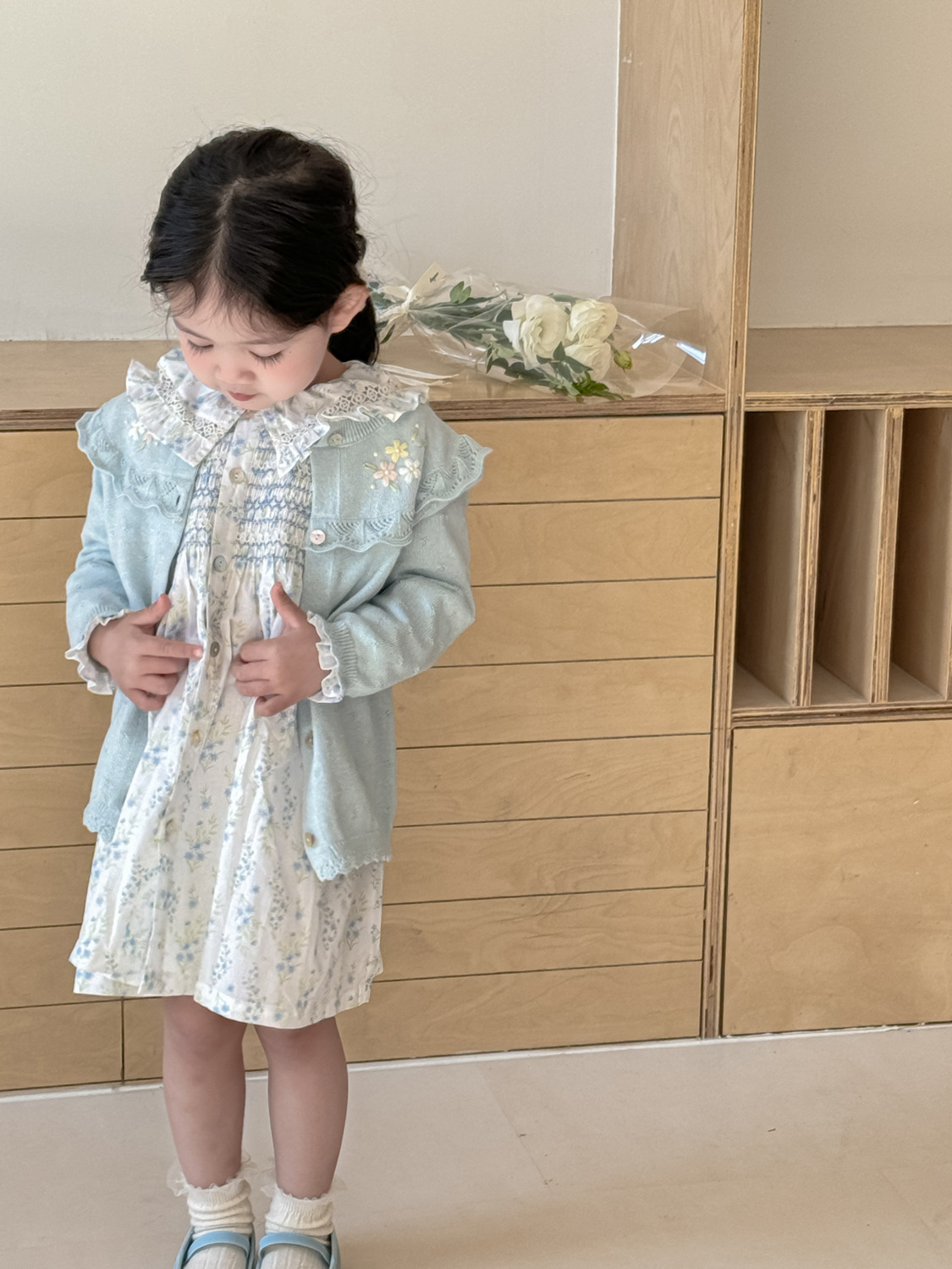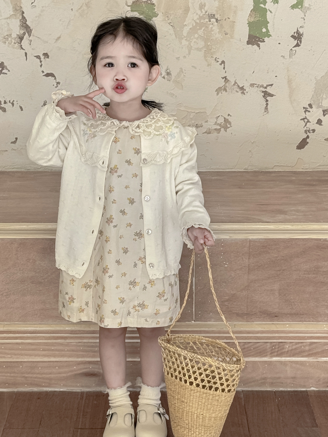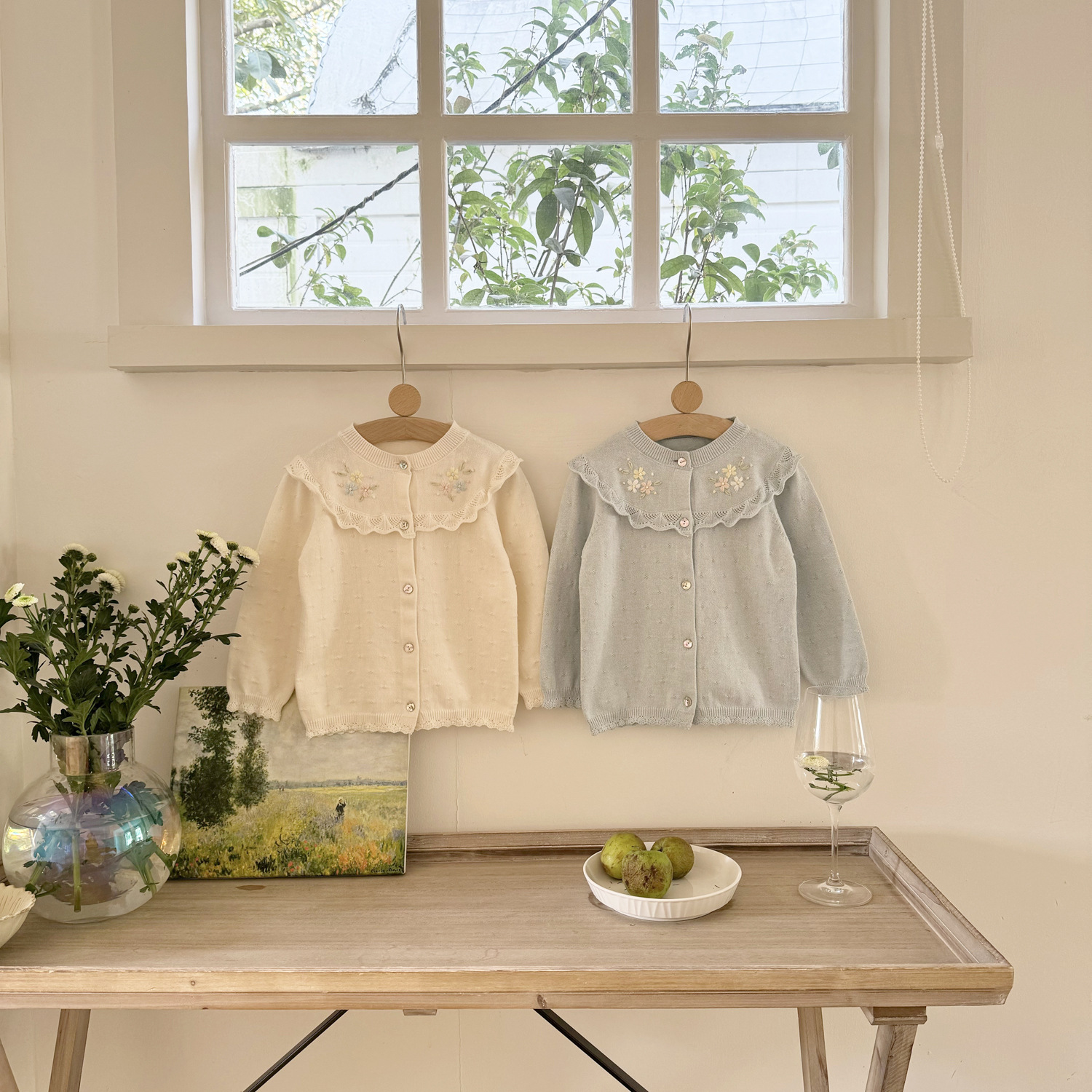 2026 봄 신상품 Ins 여아용 가디건 얇은 니트 가디건 프렌치 레트로 아동용 손자수 가디건스토어 가기