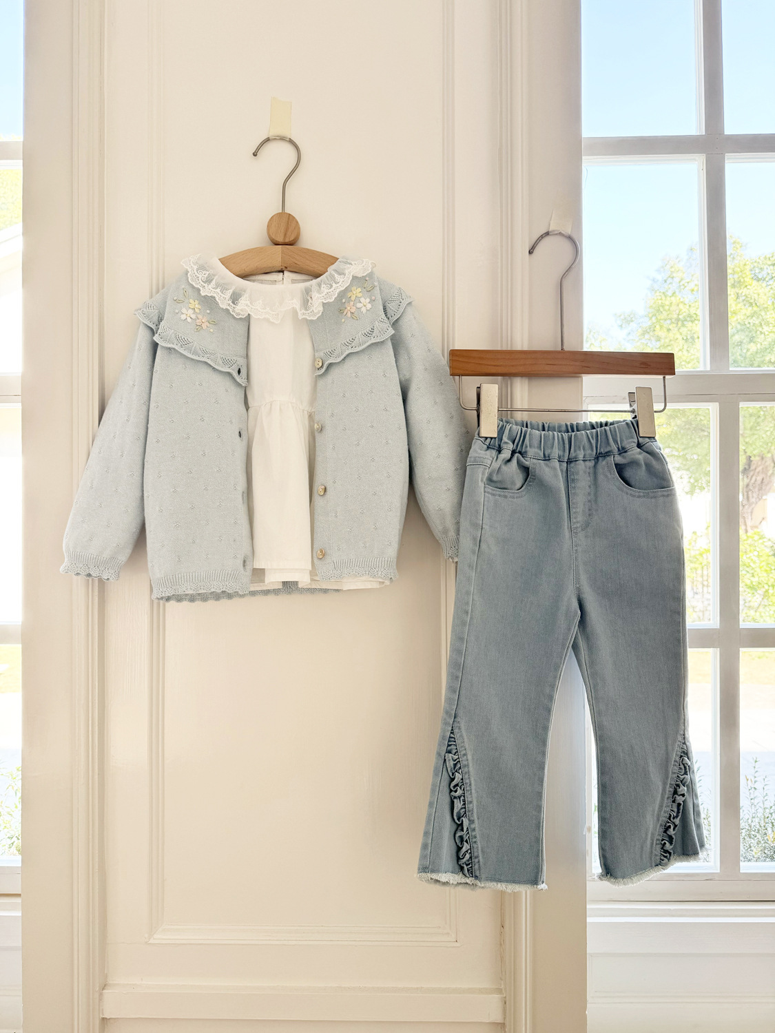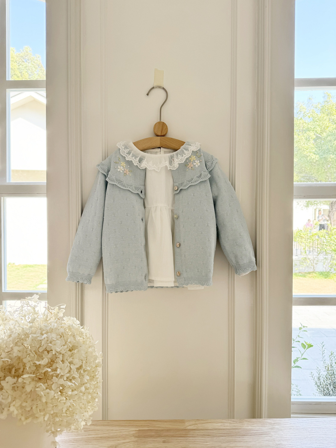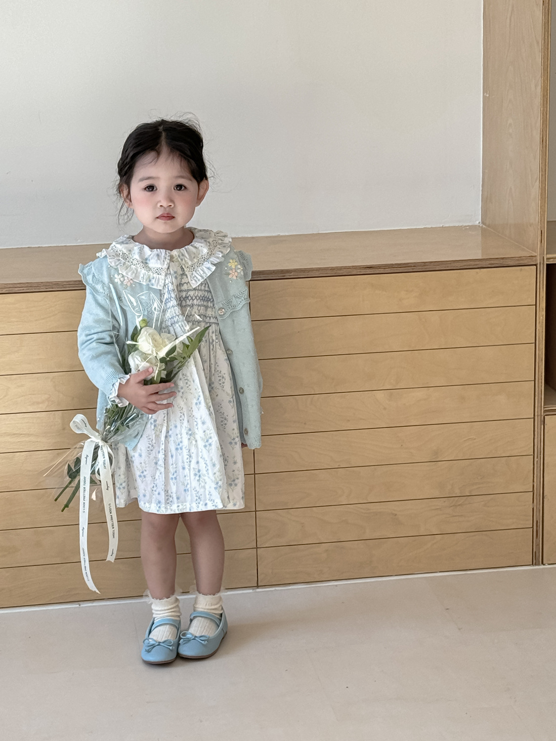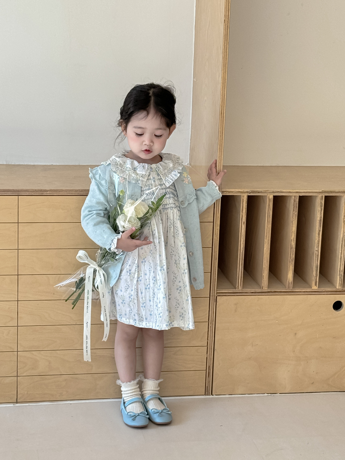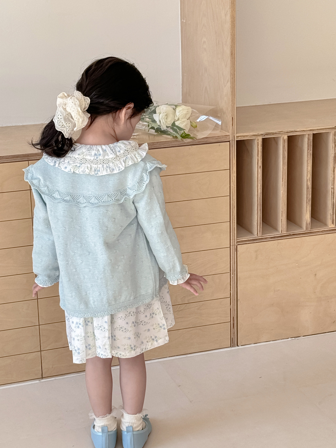 2026 봄 신상품 Ins 여아용 가디건 얇은 니트 가디건 프렌치 레트로 아동용 손자수 가디건스토어 가기