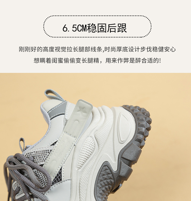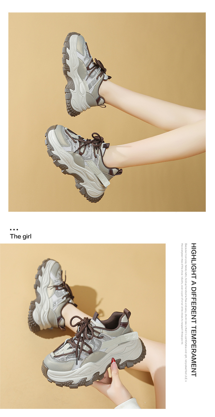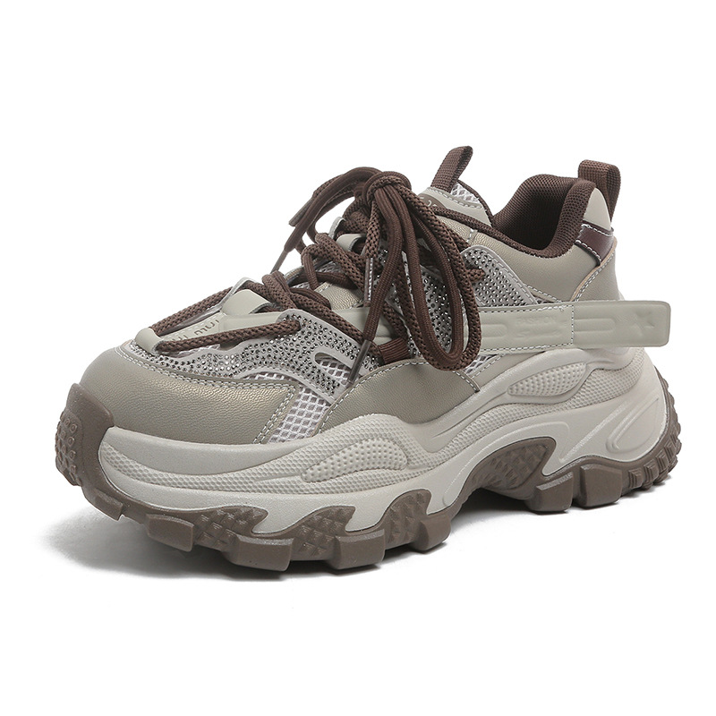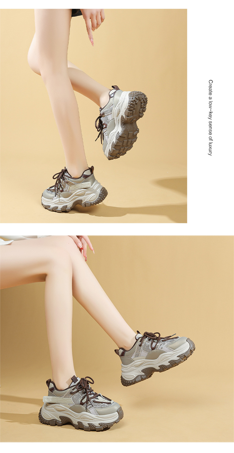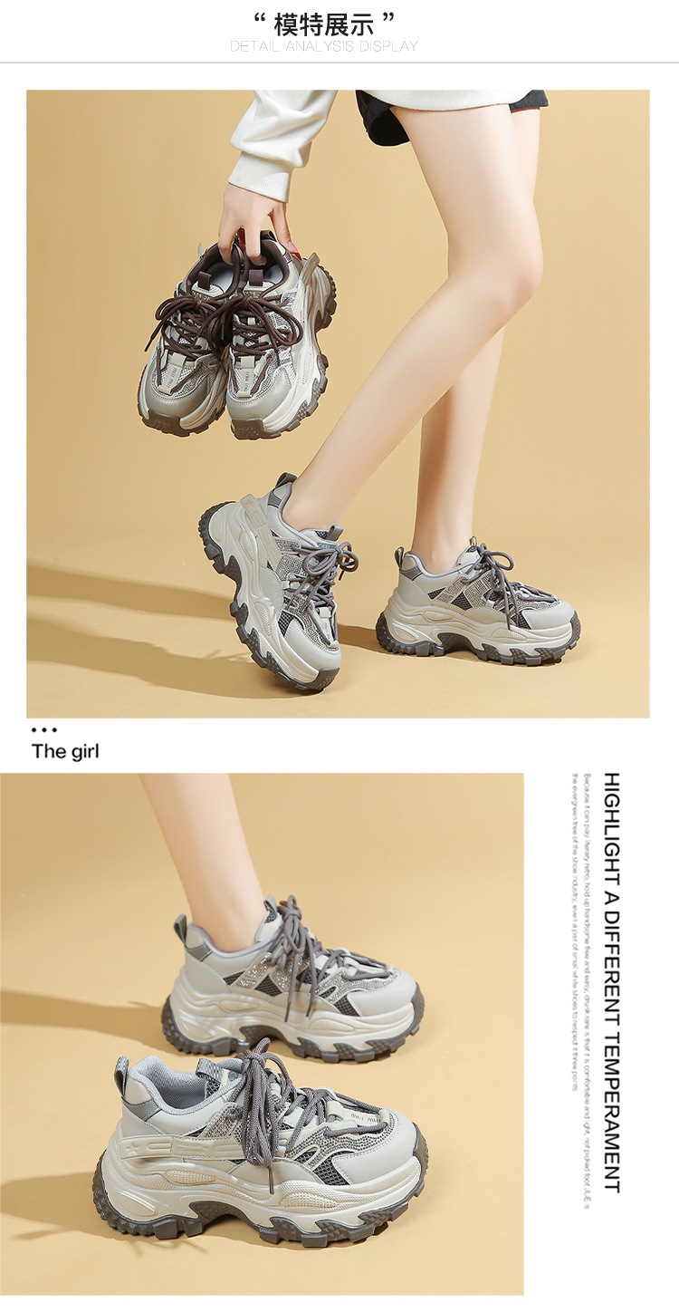 토레 신발 여성 2025 봄 새로운 라인스톤 두꺼운 단독 하이힐 신발 올매치 캐주얼 스포츠 메쉬 패션 런닝 슈즈